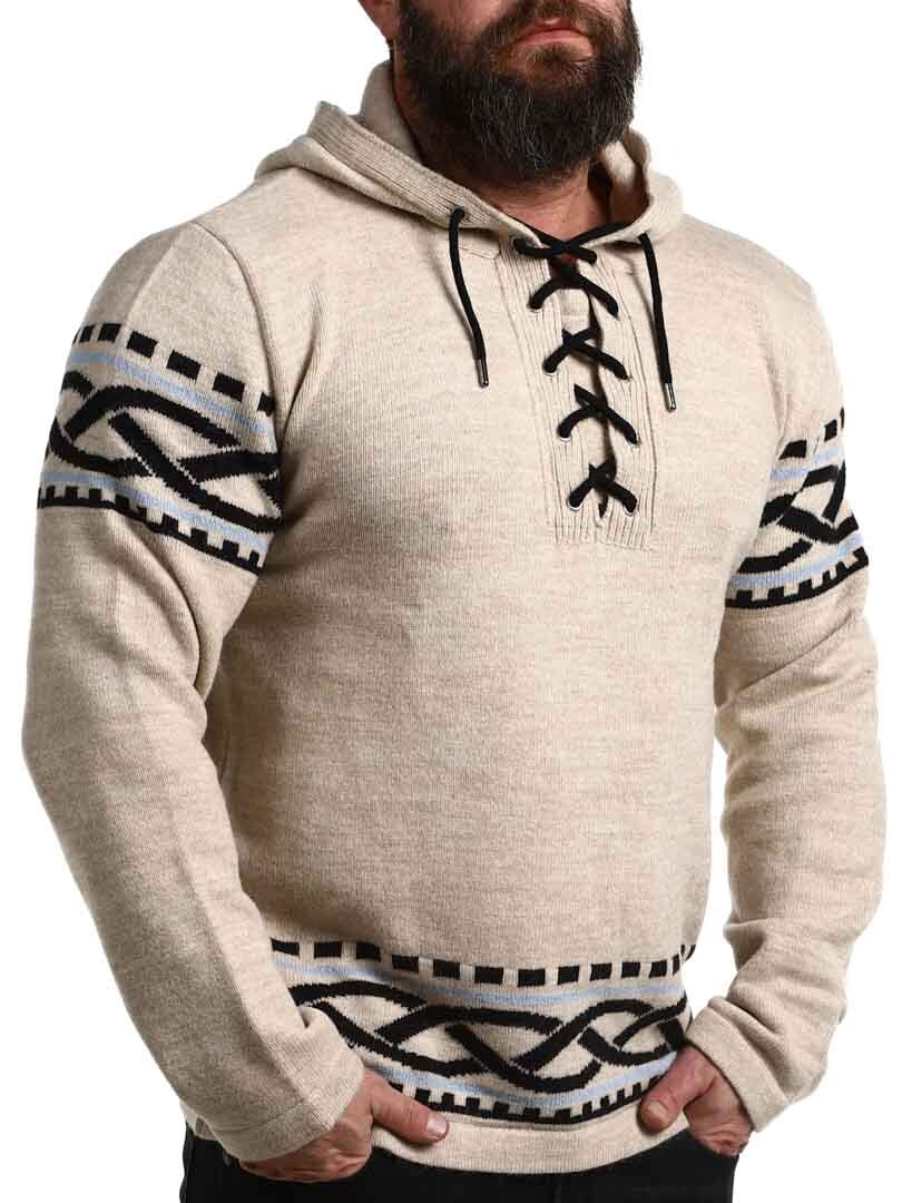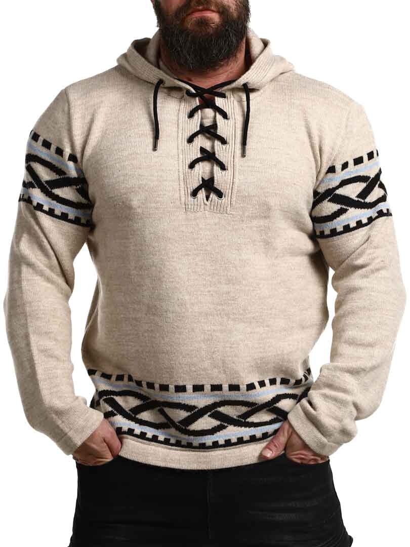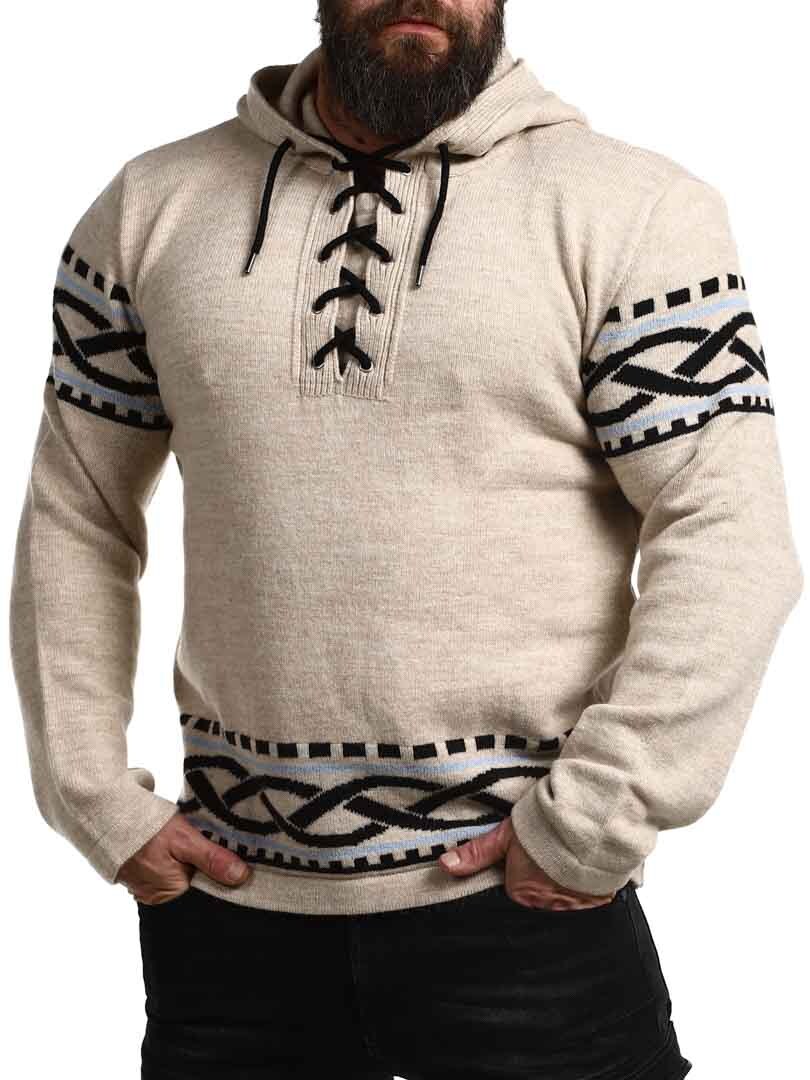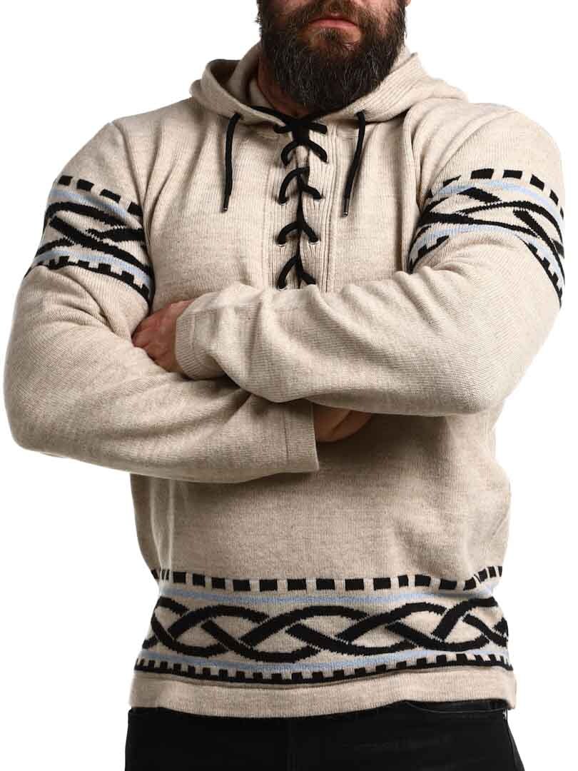 Kjenn kraften fra nord med vår vikinginspirerte hettegenser – en perfekt kombinasjon av røff stil og moderne komfort. Denne genseren har et autentisk nordisk mønster med tydelige vikingdetaljer på ermer og midje, og snøring i halsen som gir et rått og tradisjonelt preg. Den er laget i en myk og varm stoffblanding som holder deg komfortabel gjennom hele dagen – enten du er ute i naturen eller bare vil skille deg ut i hverdagen.