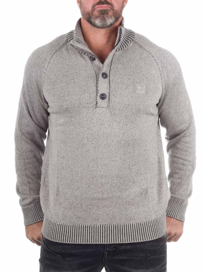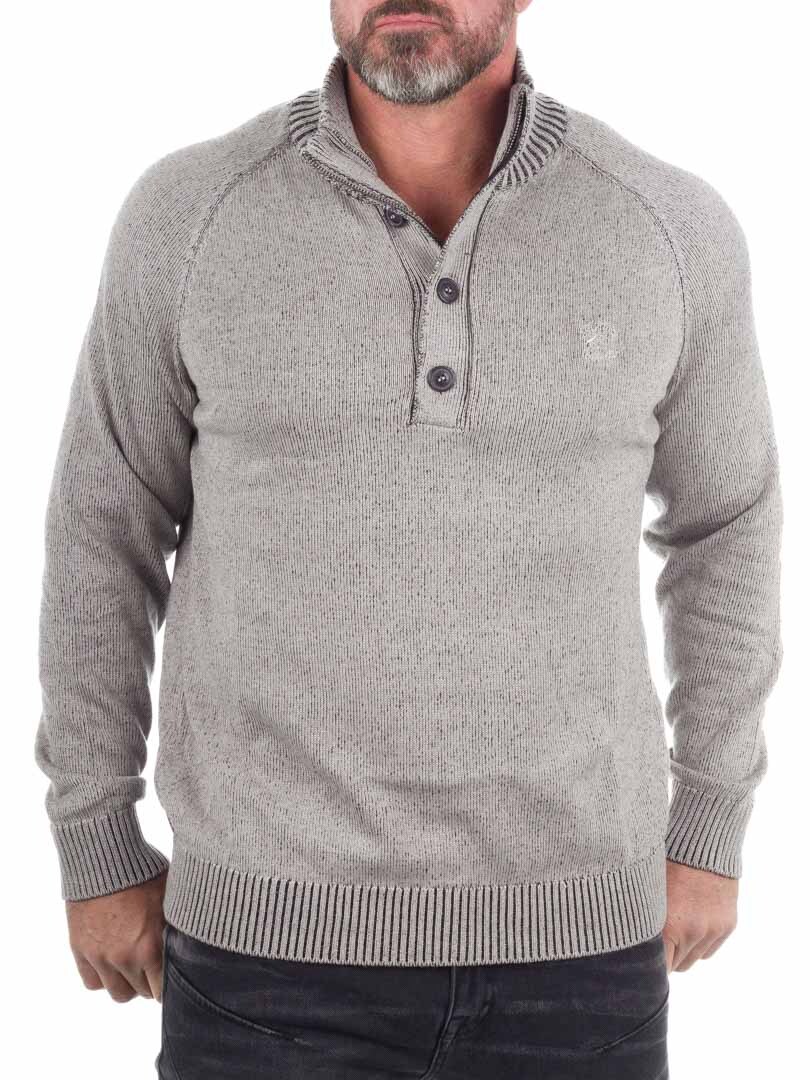 Denne herregenseren fra Indicode utstråler tidløs stil med sin høye ribbestrikkede krage og knappestolpe med tre knapper. Den er laget av en myk bomulls- og polyakrylblanding som tilbyr både varme og en behagelig følelse mot huden. Et allsidig plagg som enkelt løfter din hverdagsstil.