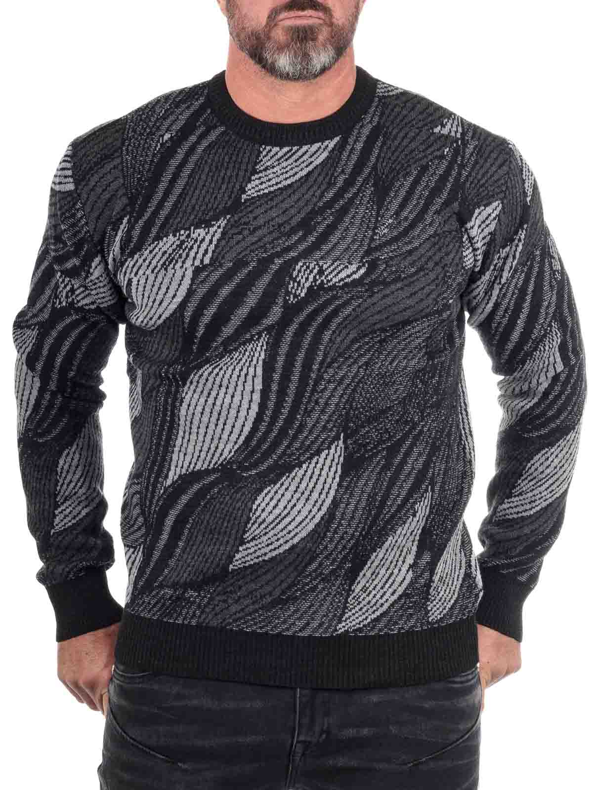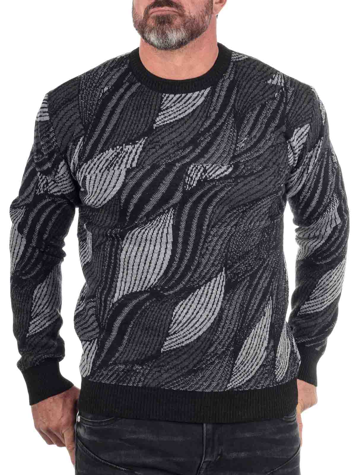 Flerfarget genser i strikket materiale. Den unike fargekombinasjonen og strukturen i strikken gir et livlig og særegent uttrykk. Genseren har rund hals og ribbestrikkede kanter som gir en komfortabel og fleksibel passform.