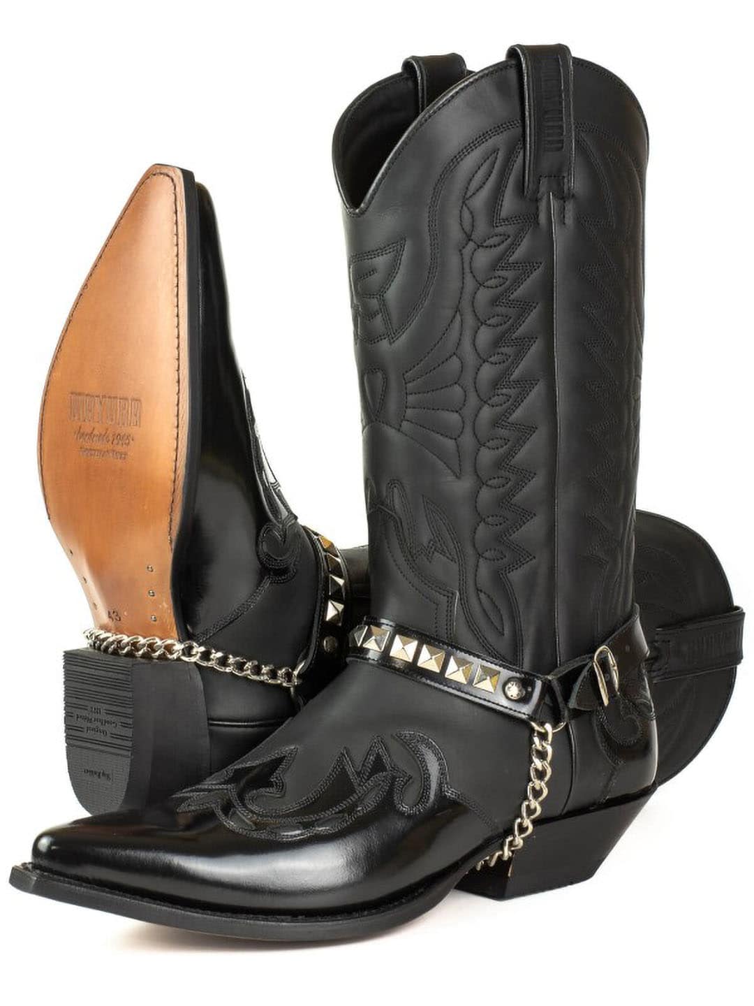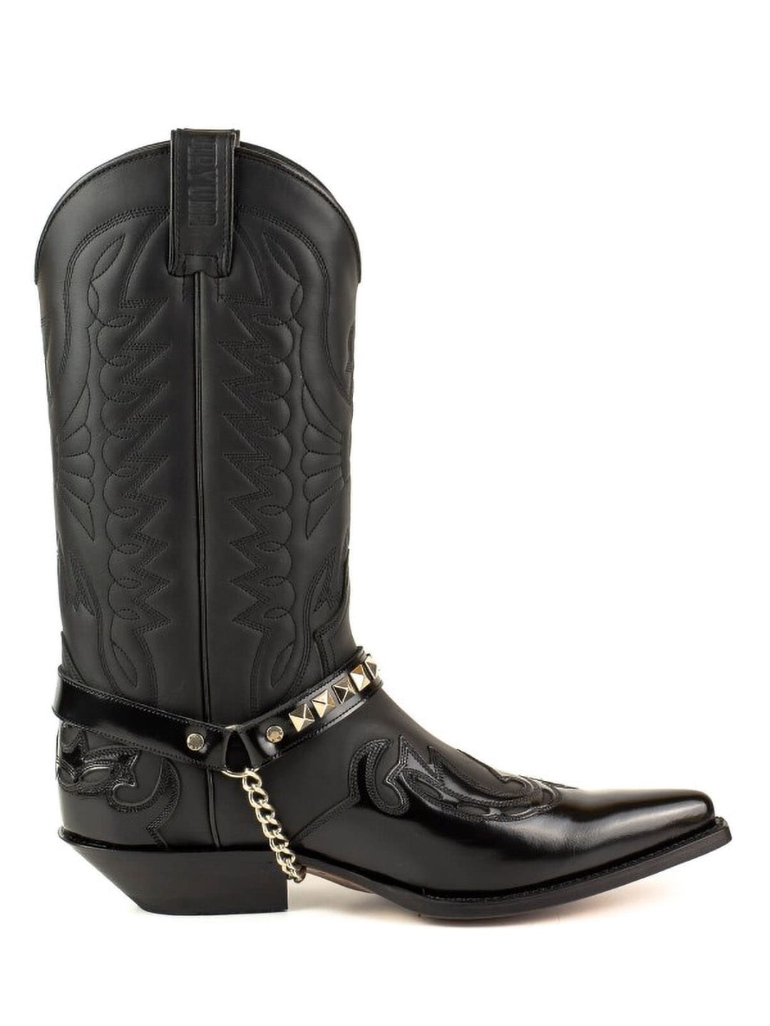 Boots med rund tå og dekorativ rem med kjede og nagler som gir modellen et tøft og karakterfullt uttrykk. Håndlaget av dyktige skomakere og produsert med det velkjente Goodyear Welt-systemet, noe som gir høy holdbarhet, stabilitet og langvarig komfort. Et opplagt valg for deg som vil ha boots med tydelig attitude og ekte håndverk!