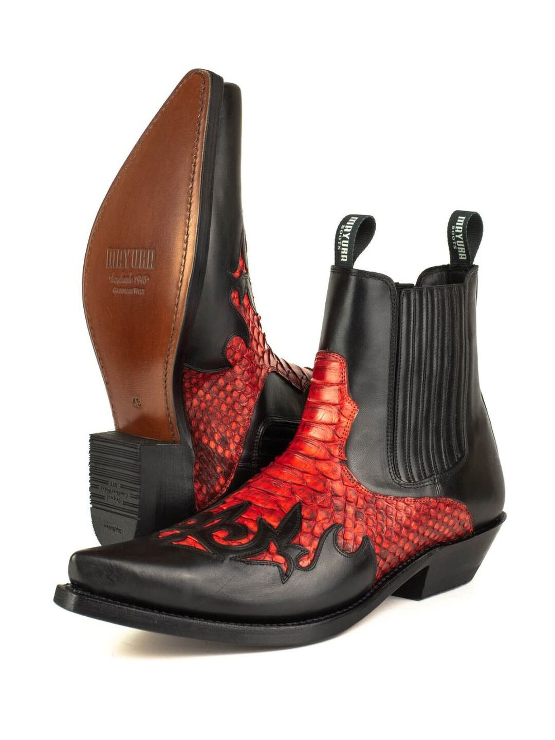 Karakterfulle boots i kuskinn og pyton med vintagefølelse og håndlaget finish som gir hvert par et unikt uttrykk. Modellen har doble lærsåler og er håndlaget etter Goodyear Welt-systemet, noe som gir høy slitestyrke, lang holdbarhet og svært god komfort. Et eksklusivt par boots for deg som ønsker en modell som virkelig skiller seg ut.
