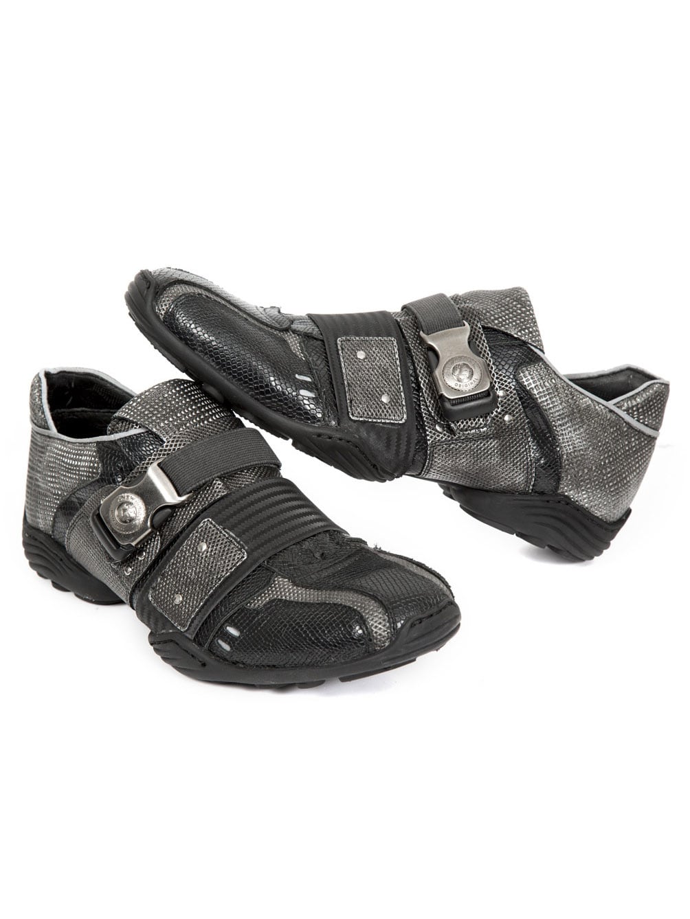 Lave sko i skinn med gummisåle og stropper. De er mønstret med grå detaljer og lukkes med en klikkspenne. Tilgjengelig i begrenset opplag, så benytt anledningen til å skaffe deg et par!
