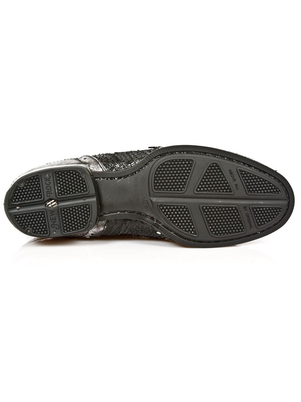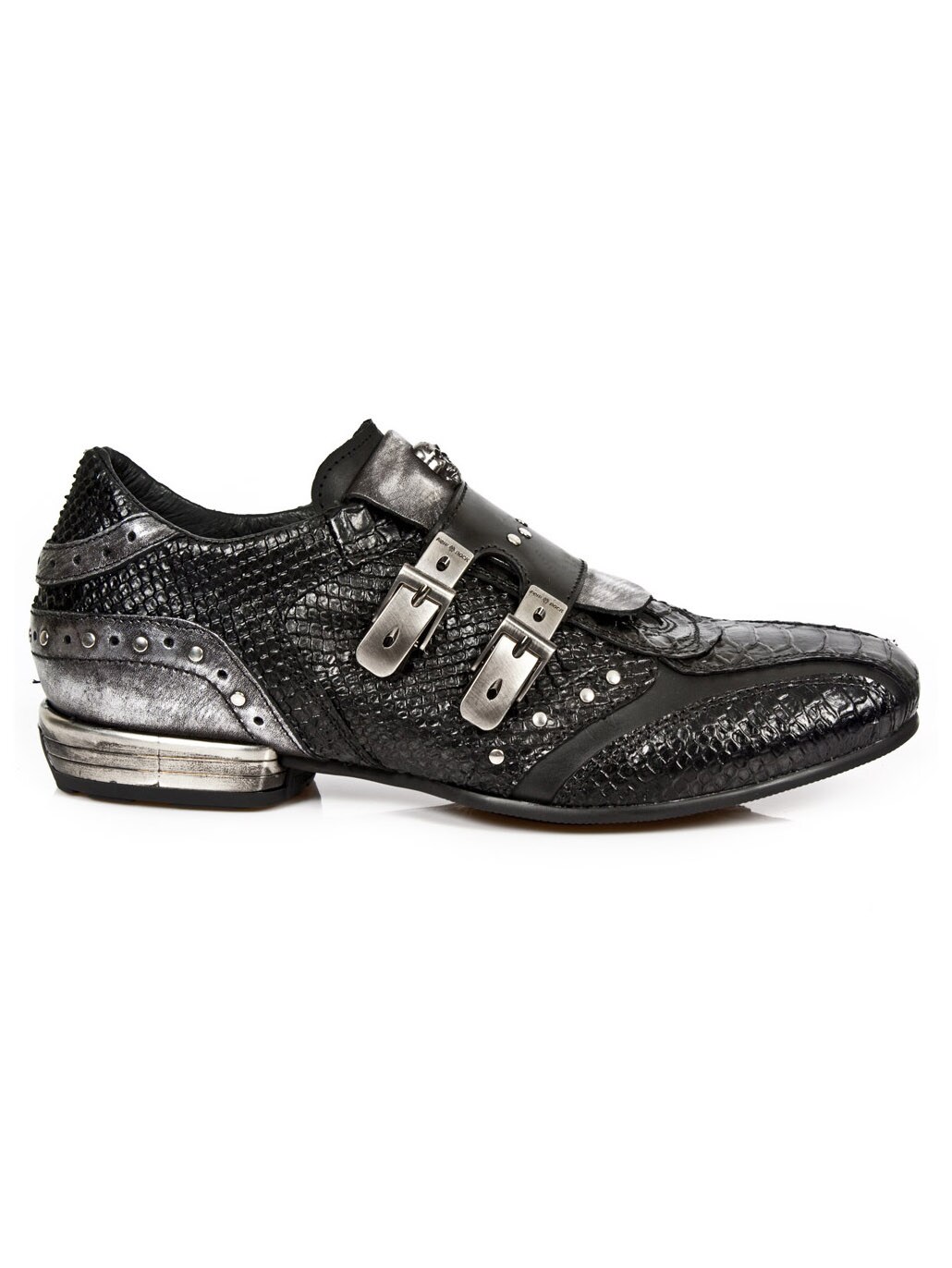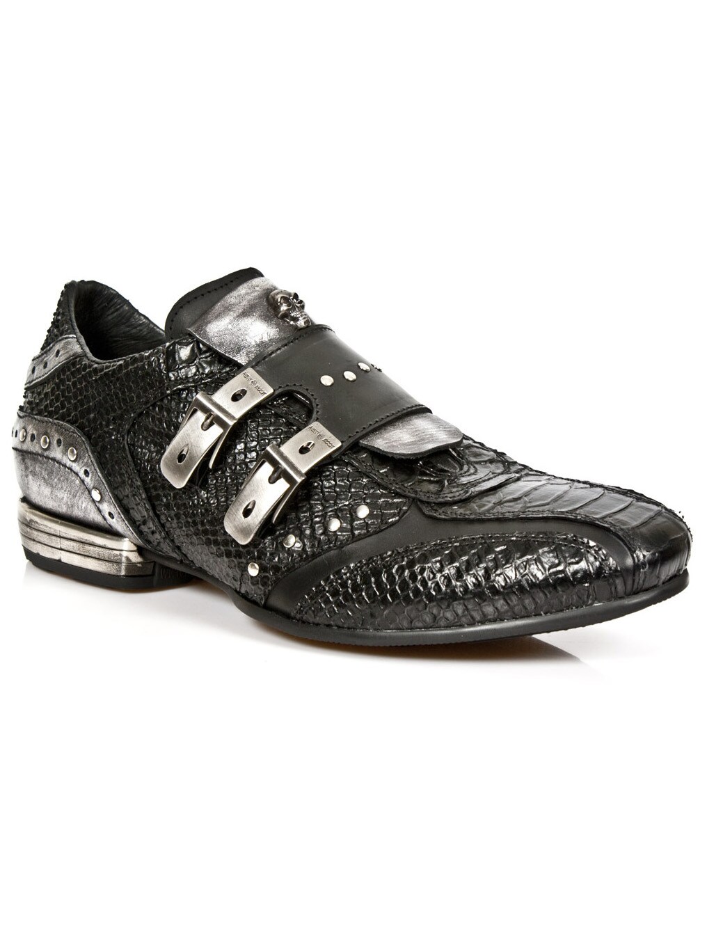 Unike sko i ekte skinn med mønster og lavt skaft. Designet med grå detaljer, nagler og en lærreim med to metallspenner. Hodeskallemotiv i metall foran på skoen. Denne unike skoen er tilgjengelig i begrenset opplag!