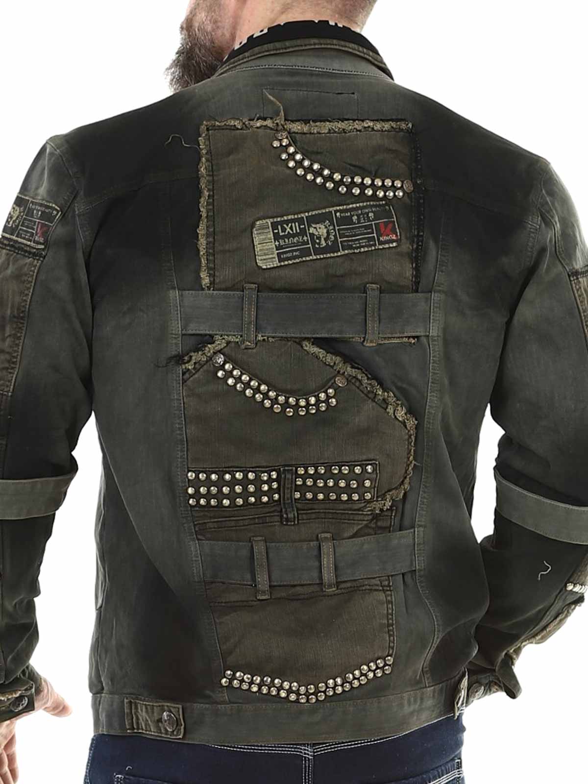 En jeansjakke med attitude, laget for å skille seg ut. Den blågrønne nyansen gir et unikt uttrykk, mens rå detaljer som nagler, remmer og glidelåser forsterker den rebelske følelsen. Designet med knappelukking, krage og justerbare ermer med knapp.