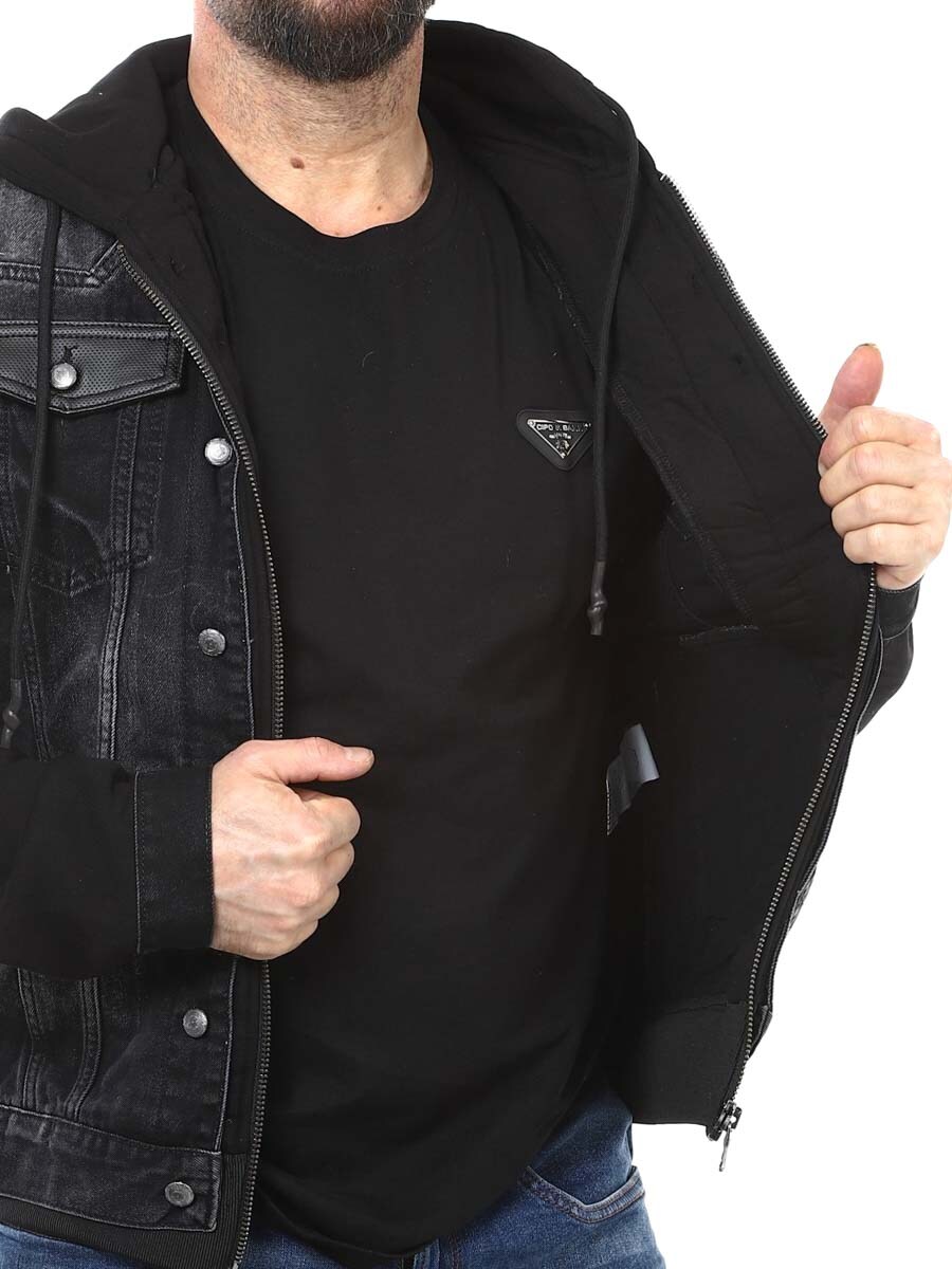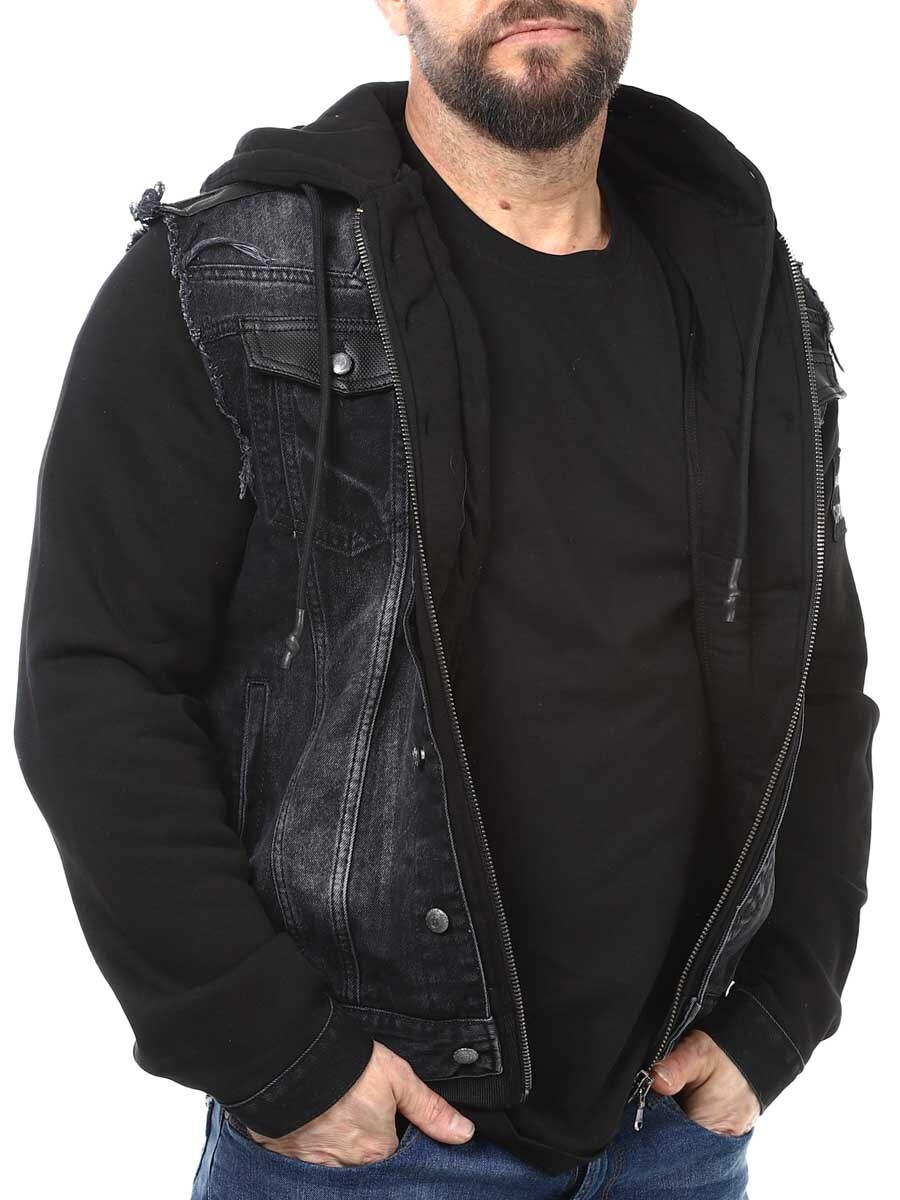Denne denimjakken med hette i sweatshirtmateriale kombinerer en kul og moderne stil med god komfort. Den har en vasket denimlook med et skreddersydd trykk og slitne detaljer, noe som gir den en stilig vintagefølelse. Perfekt for en avslappet, men edgy hverdagslook!
