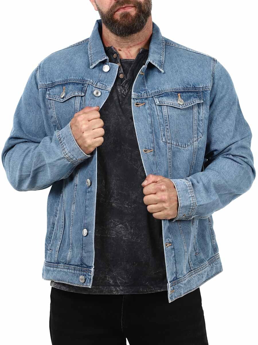 Tidløs denimjakke som er et must i garderoben. Den har krage, to brystlommer som kan lukkes, og to åpne lommer foran. Jakken lukkes med knapper.