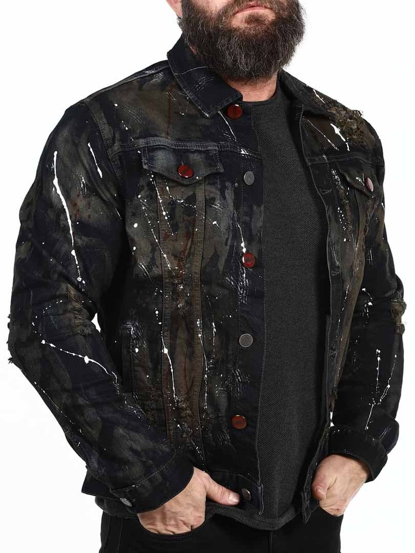 Denne denimjakken er et ekte stilikon med en unik og rå finish. De karakteristiske fargeklattene og det slitte designet gir jakken et kunstnerisk og rebelsk uttrykk, samtidig som de klassiske knappene og lommene bevarer karakteren til den tidløse denimjakken. Perfekt for deg som vil skille deg ut og tilføre antrekket ditt et edgy preg!