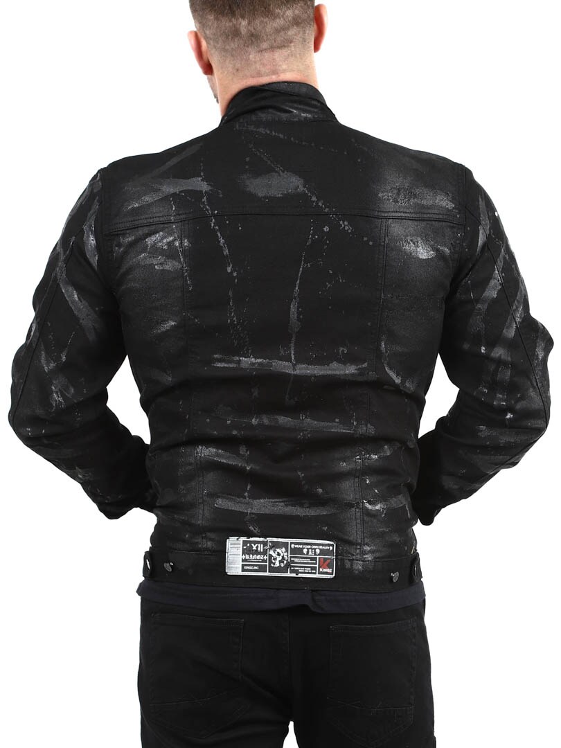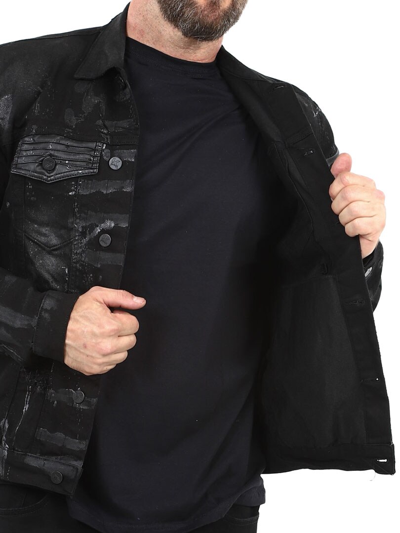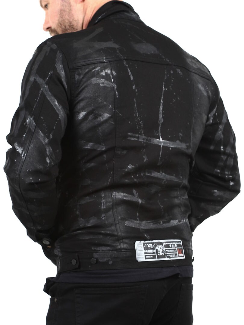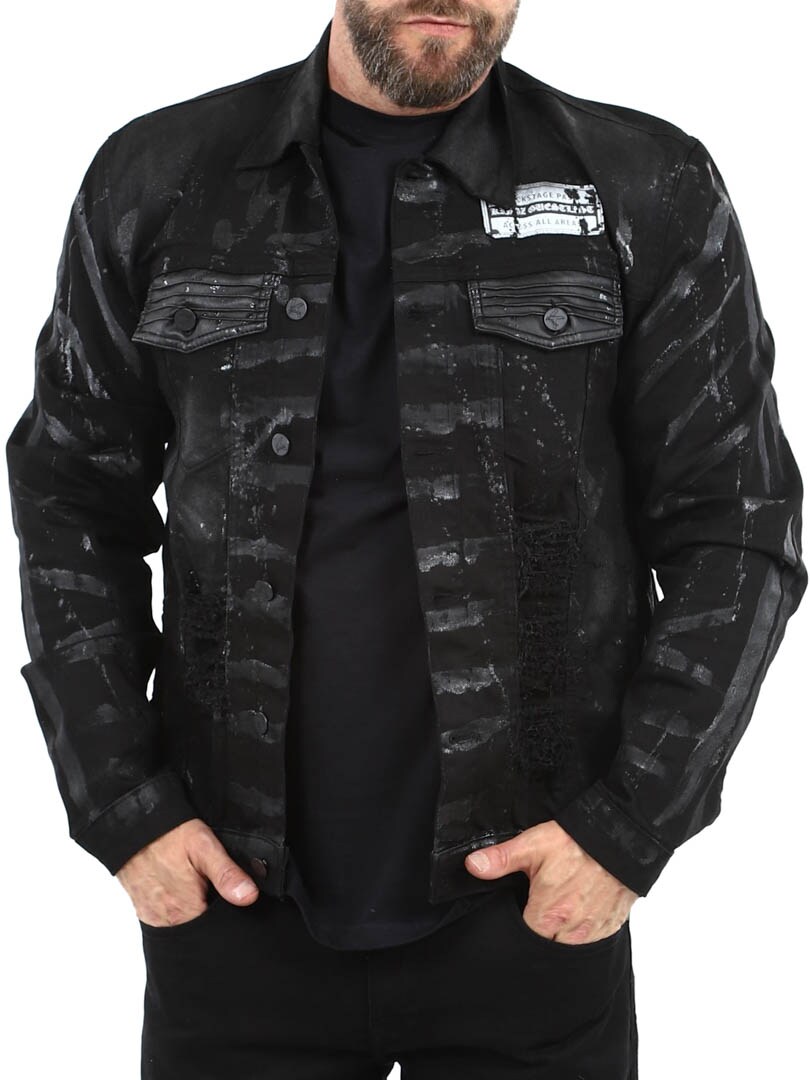 Fang oppmerksomheten med denne dristige denimjakken der den unike spraymalingseffekten skaper en rebelsk look med en tydelig holdning. Designet med slitne detaljer, fire lommer foran og knappelukking.