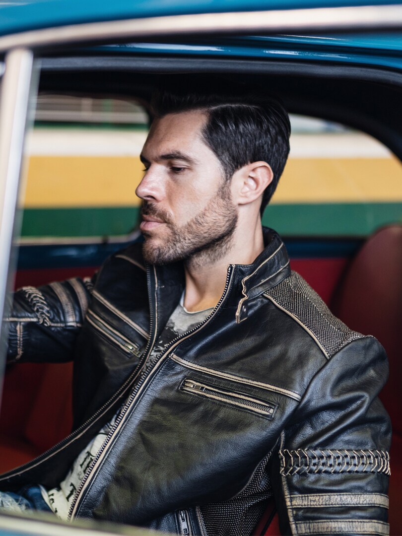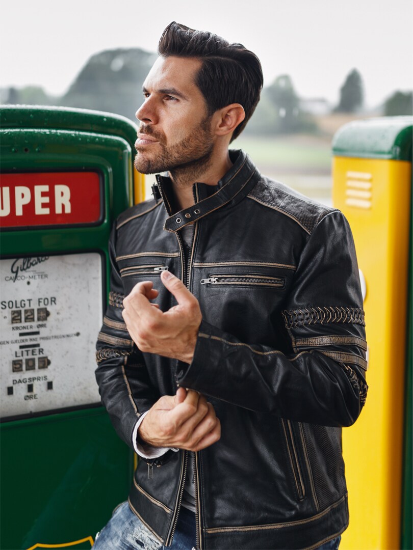 Vintage inspirert skinnjakke laget av ekte bøffelskinn - designet og produsert av RockDenim!