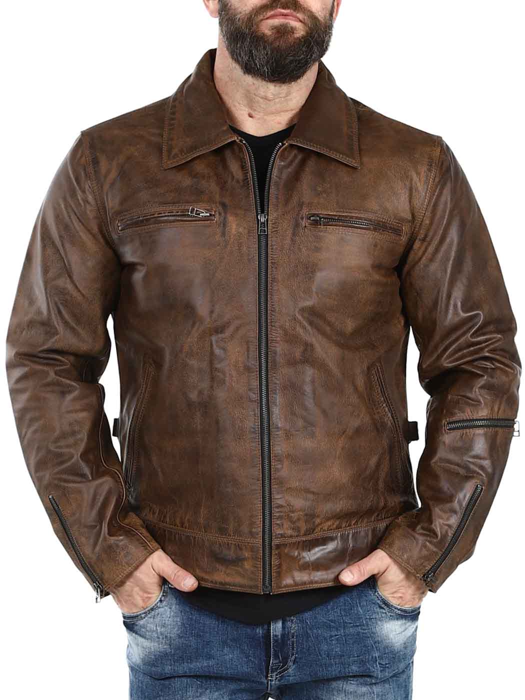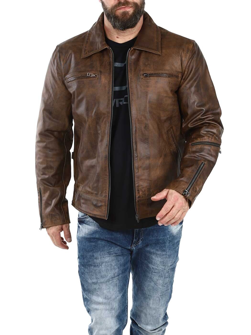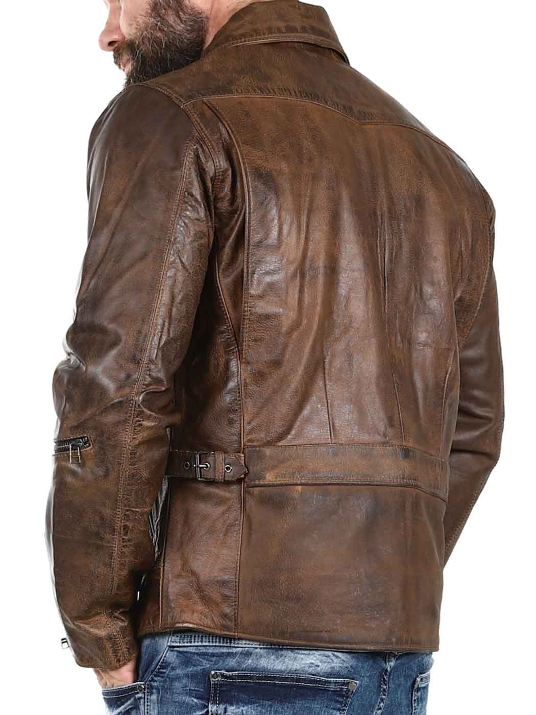 Sterk og tung jakke i ekte skinn. Designet med krage og justerbar midje og mansjetter. Fire frontlommer, en armlomme og to innerlommer. Perfekt for deg som ønsker en tidløs jakke i god kvalitet!