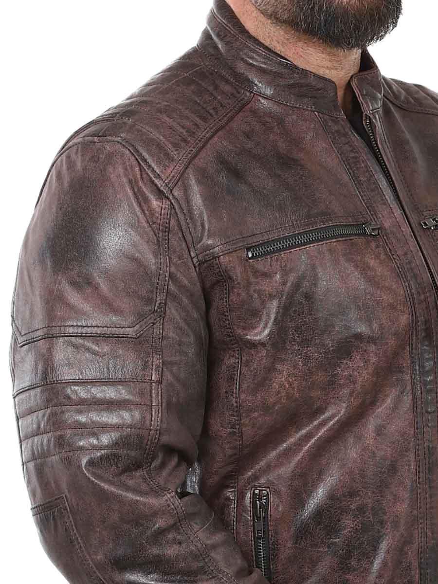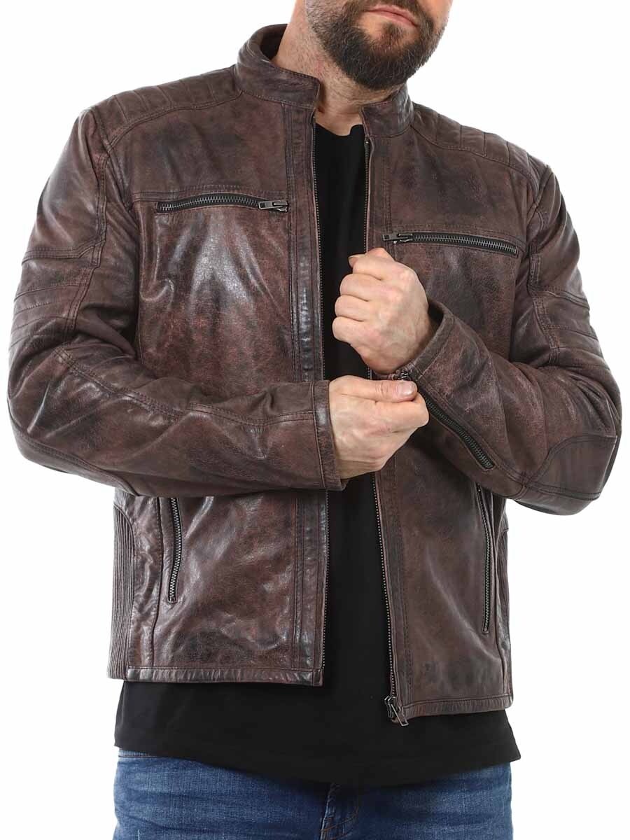 Tøff skinnjakke med stilige detaljer. Den har justerbare mansjetter, fire lommer foran som kan lukkes, og to innerlommer. Jakken er laget av lær av høy kvalitet og kombinerer den rustikke sjarmen til naturskinn med et klassisk og sofistikert utseende. Kun tilgjengelig hos Rockdenim!