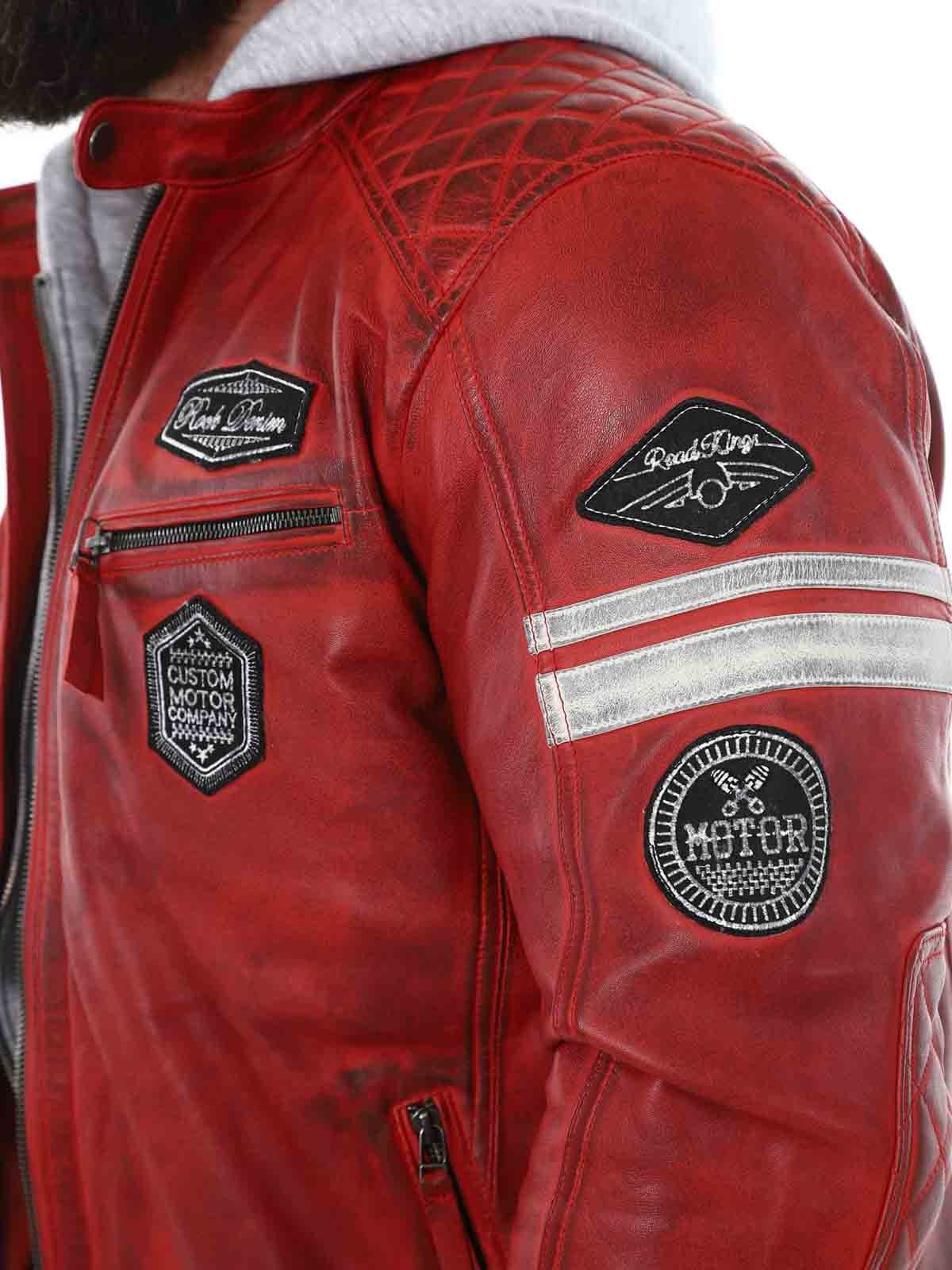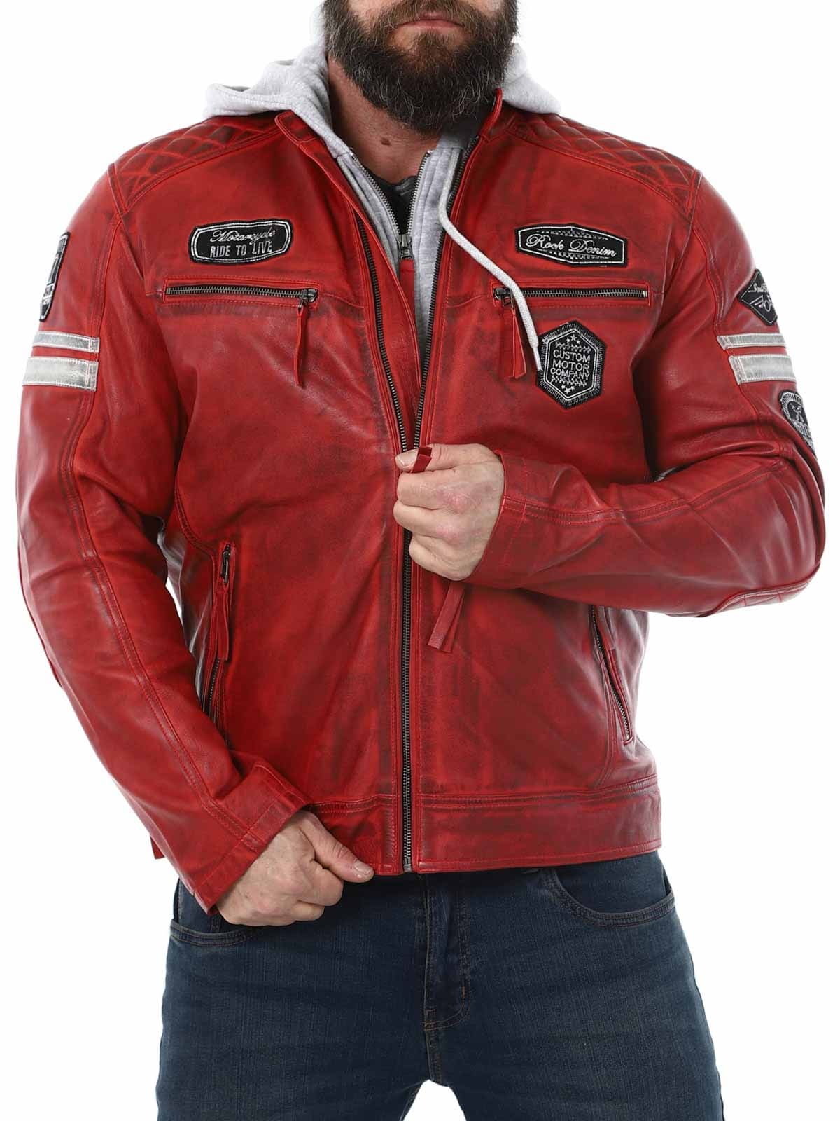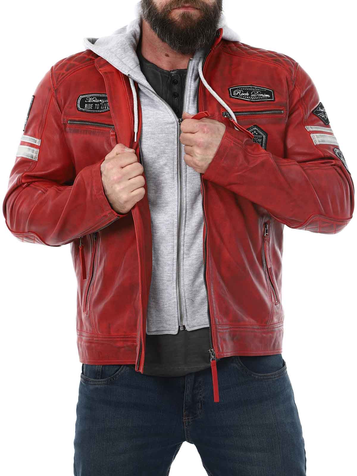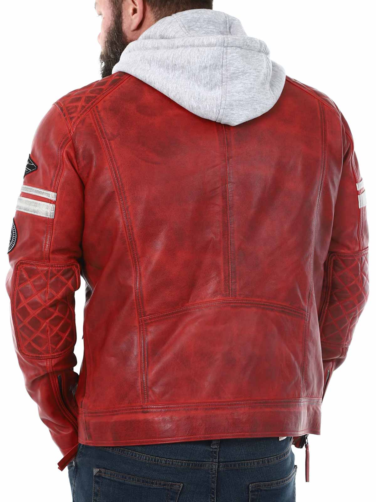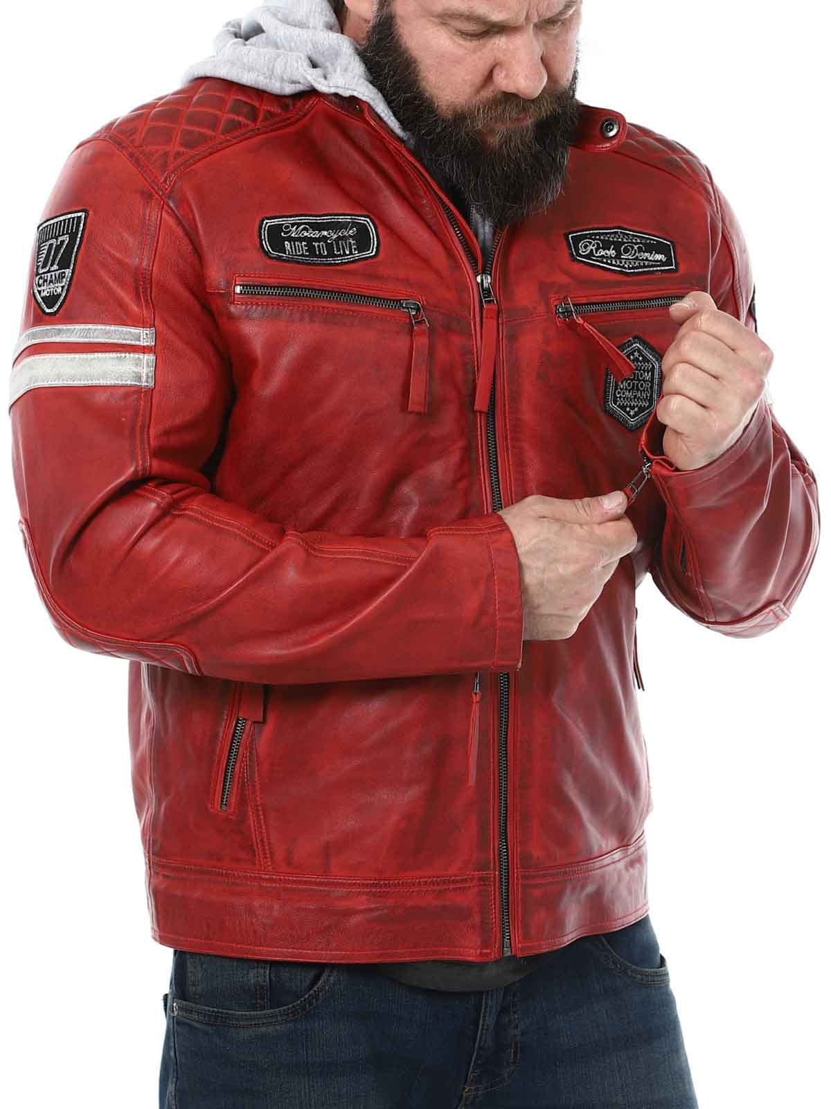 Racing-inspirert jakke i mykt og smidig skinn. Designet med stofflapper og avtakbar hette i sweatshirtmateriale. Fire frontlommer med glidelås, to innerlommer og justerbare mansjetter. Stilig jakke kun tilgjengelig hos RockDenim!
