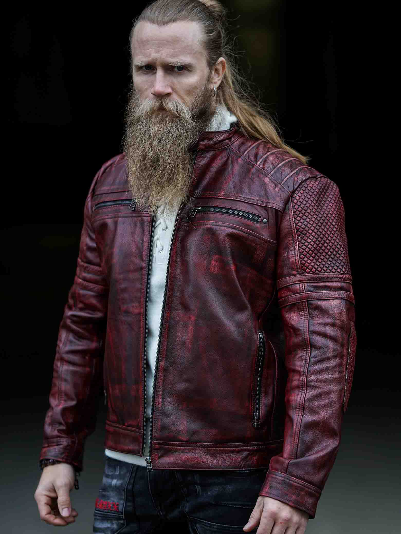 Tung jakke i bøffelskinn. Den har stilige detaljer og fire frontlommer med glidelås, samt to innerlommer. Denne unike skinnjakken er laget av kvalitetsskinn og er kun tilgjengelig hos Rockdenim!