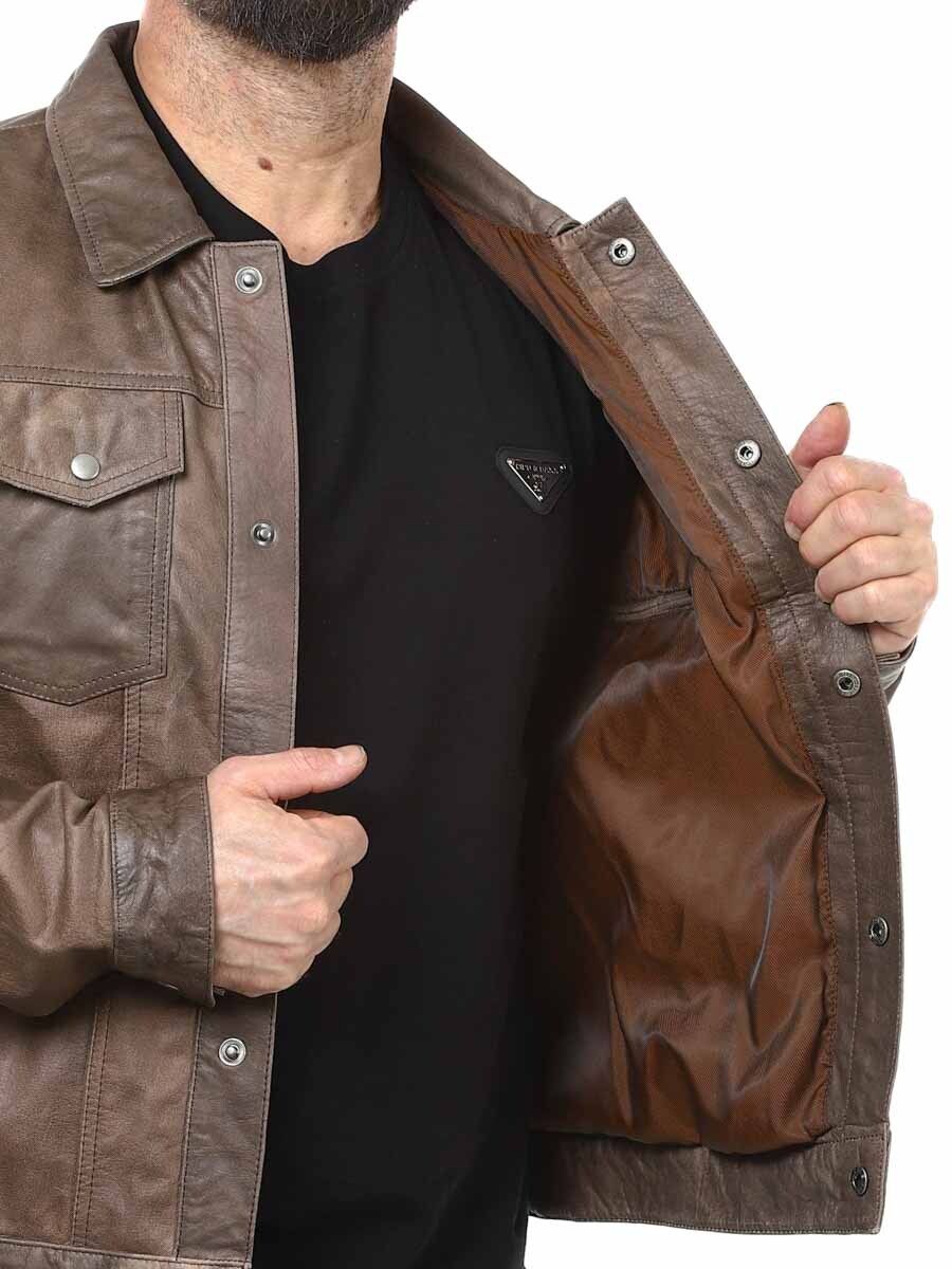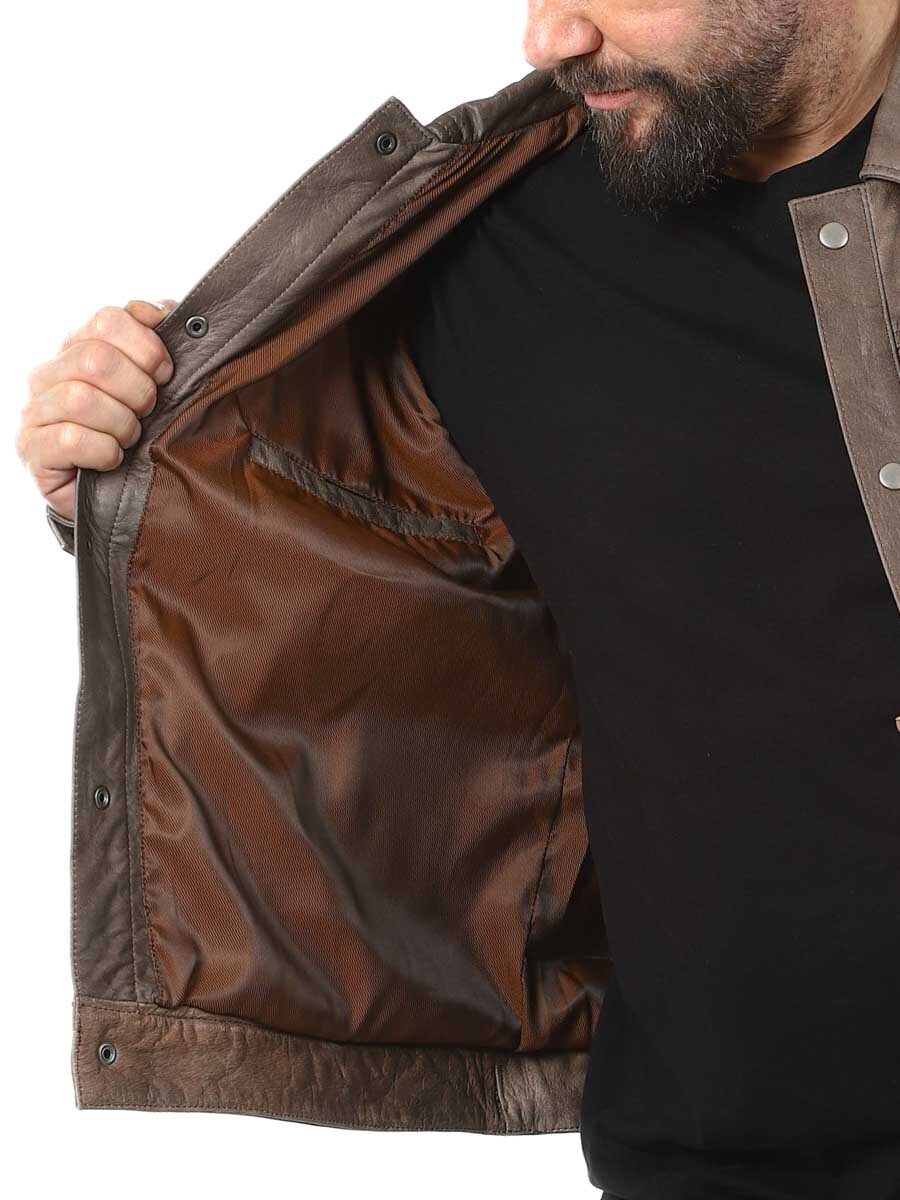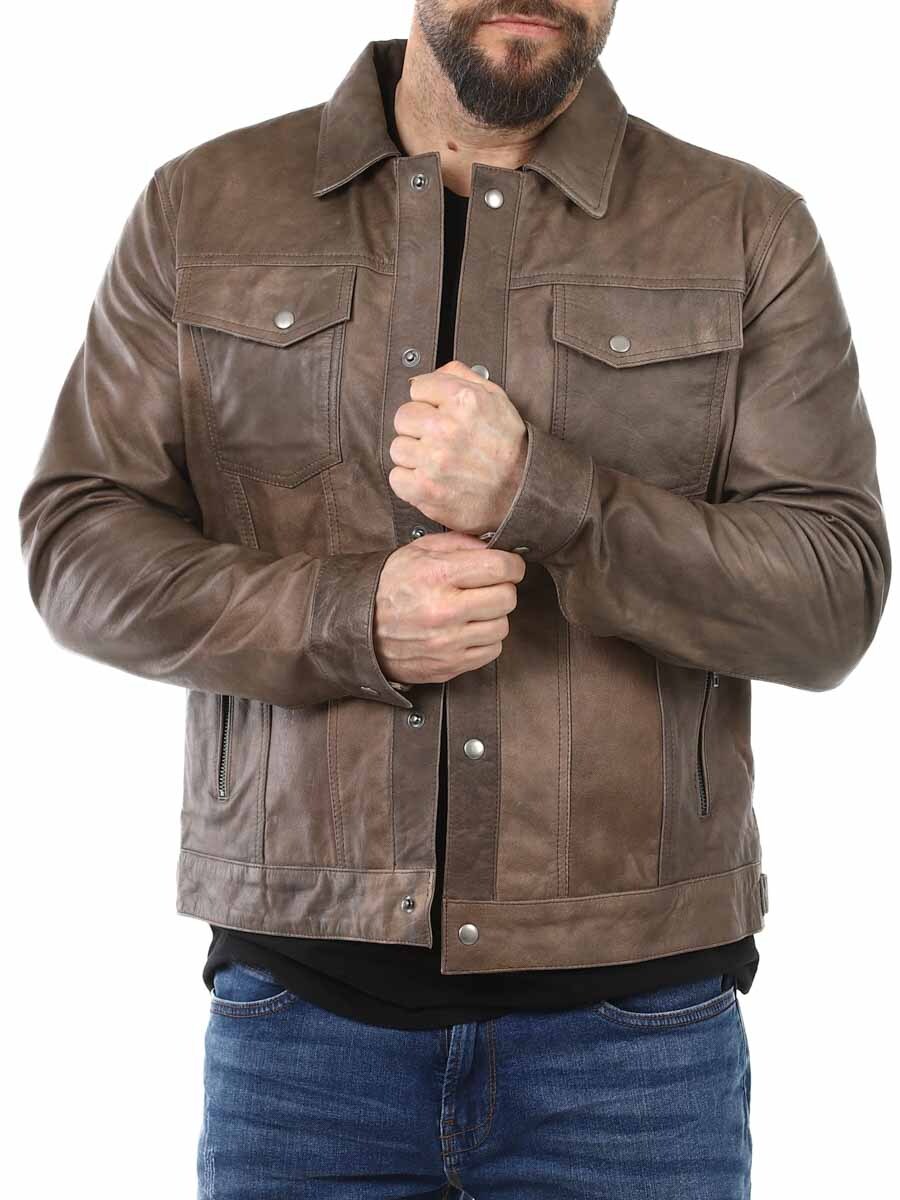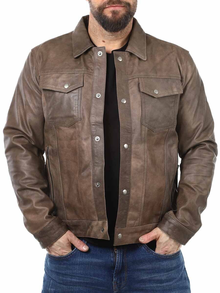 Gi garderoben din en oppgradering med denne brune skinnjakken. En komfortabel jakke i ekte skinn som kan justeres i midjen og mansjettene. Jakken har fire lommer foran som kan lukkes, og to innerlommer. Jakken har krage og lukkes med knapper. Denne jakken finner du bare hos Rockdenim!