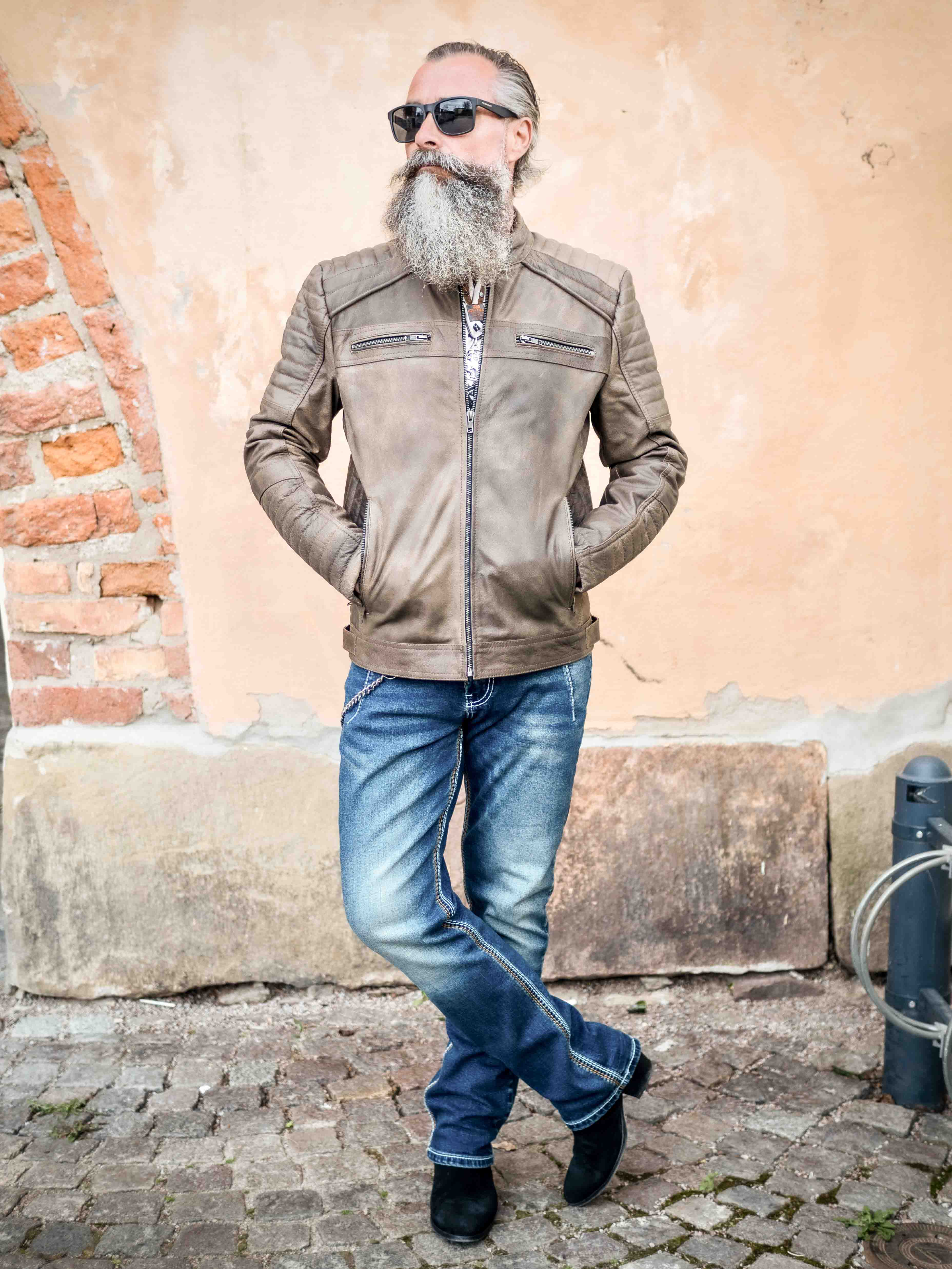 Behagelig jakke i ekte skinn som er justerbar i midjen og ved mansjettene. Det er fire lukkbare frontlommer og to innerlommer. Jakken lukkes med glidelås og har polstrede deler. Denne jakken finner du kun hos Rockdenim!