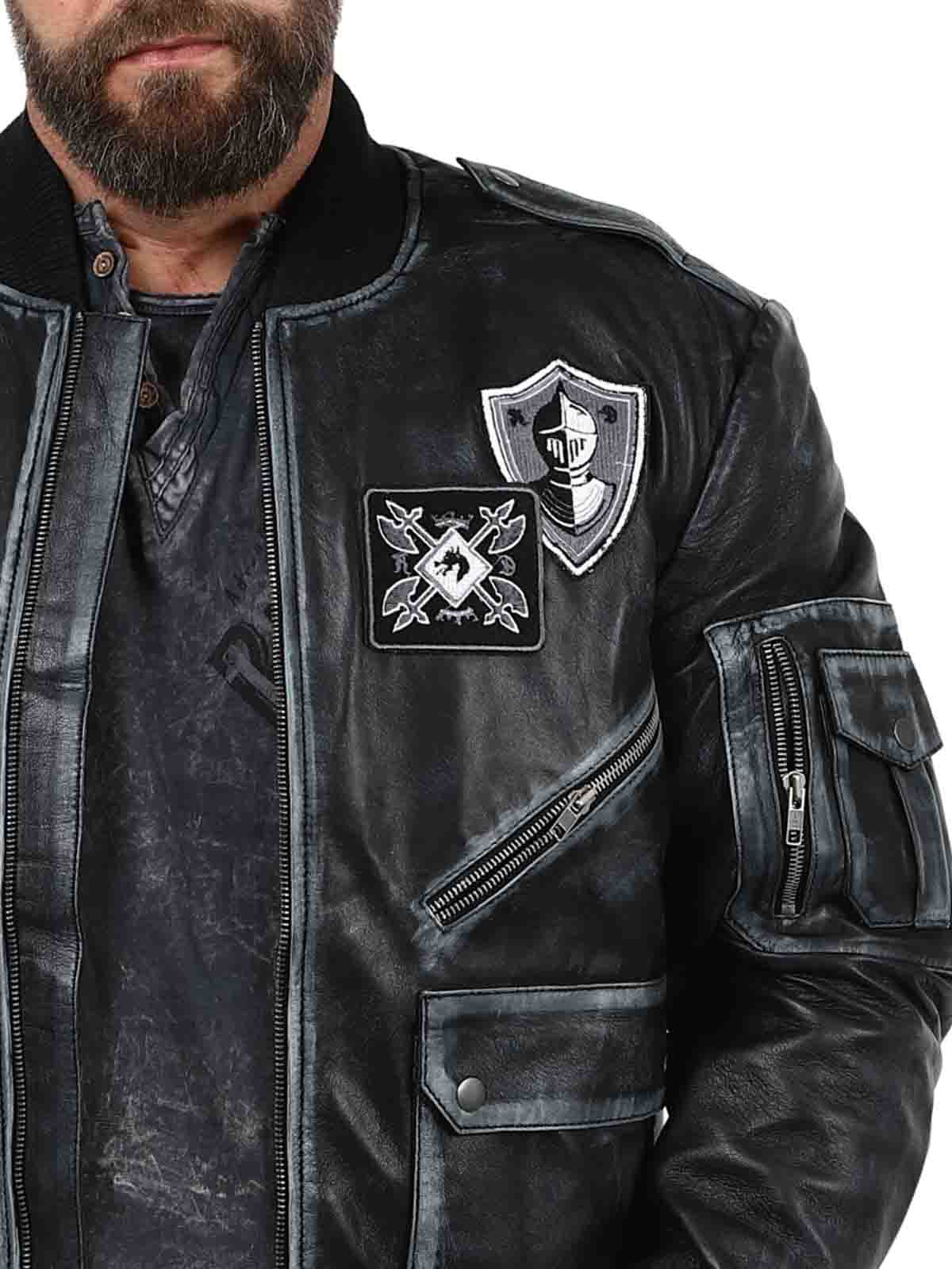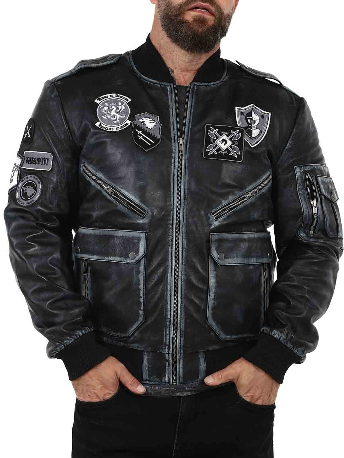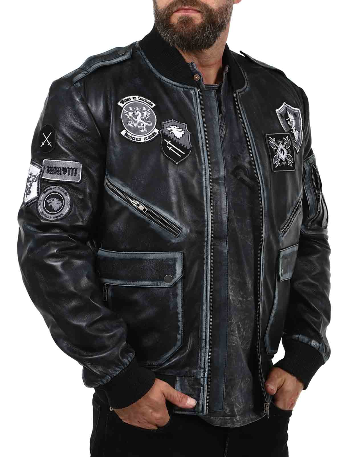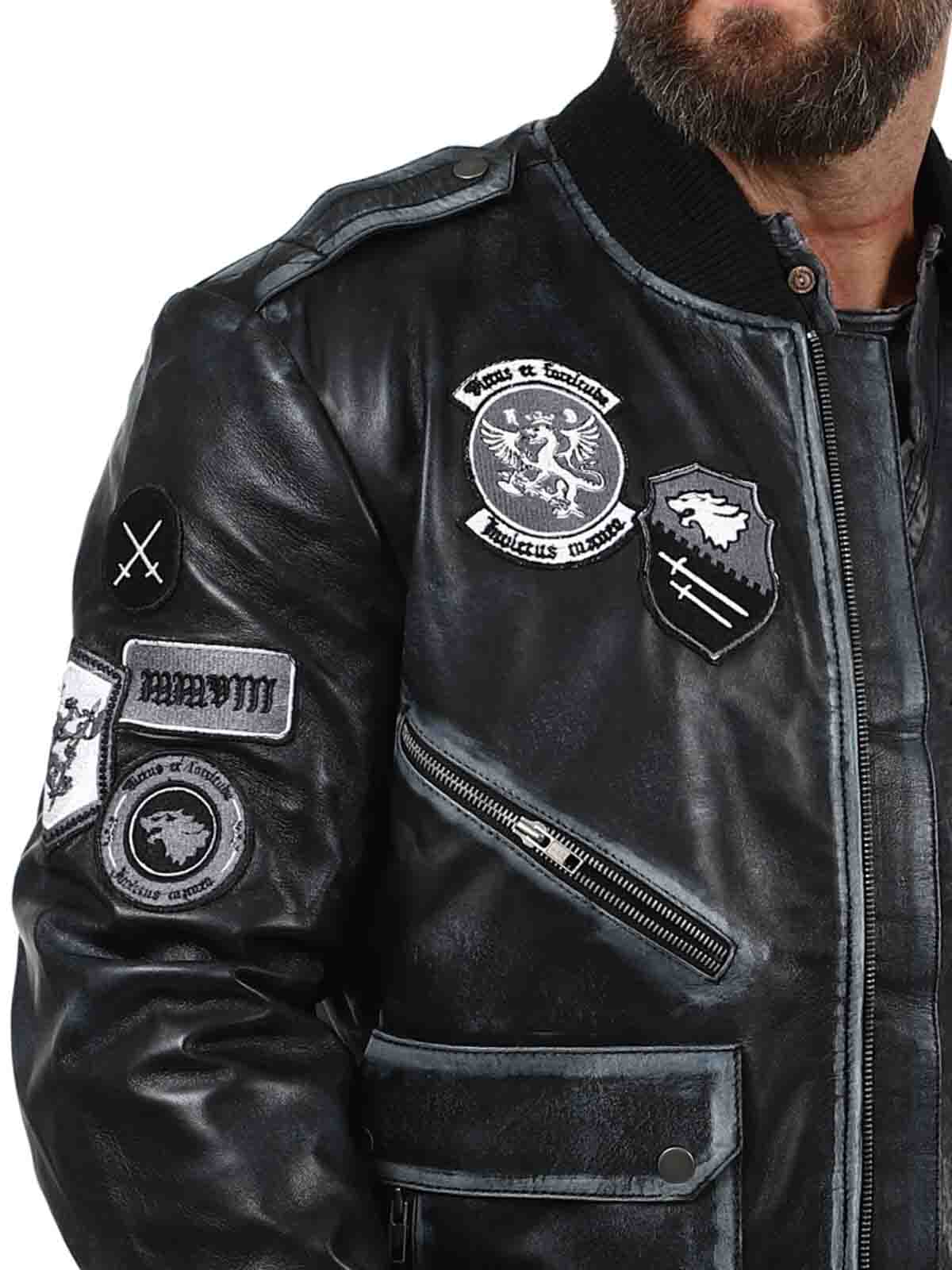Retroinspirert jakke i en stilig, vintage svart farge med dekorative lapper. Laget av mykt og smidig kvalitetsskinn med ribbestrikkede kanter for optimal passform. Den har flere lommer som kan lukkes, noe som gir både praktisk funksjon og stilig design. Dette er en jakke vi har utviklet selv, og den er en av våre tøffeste jakker!
