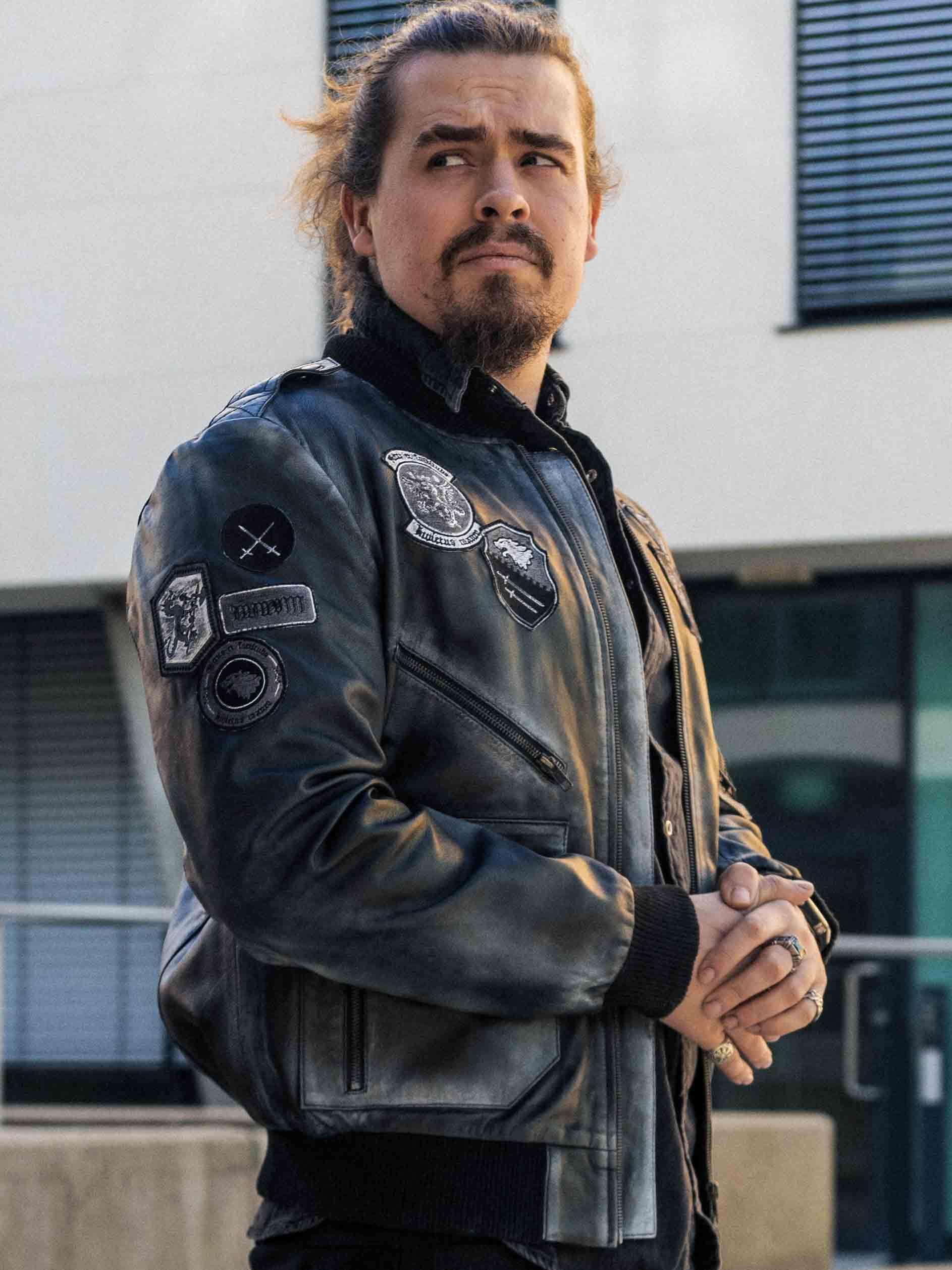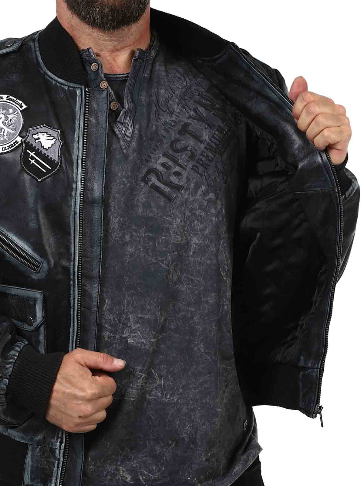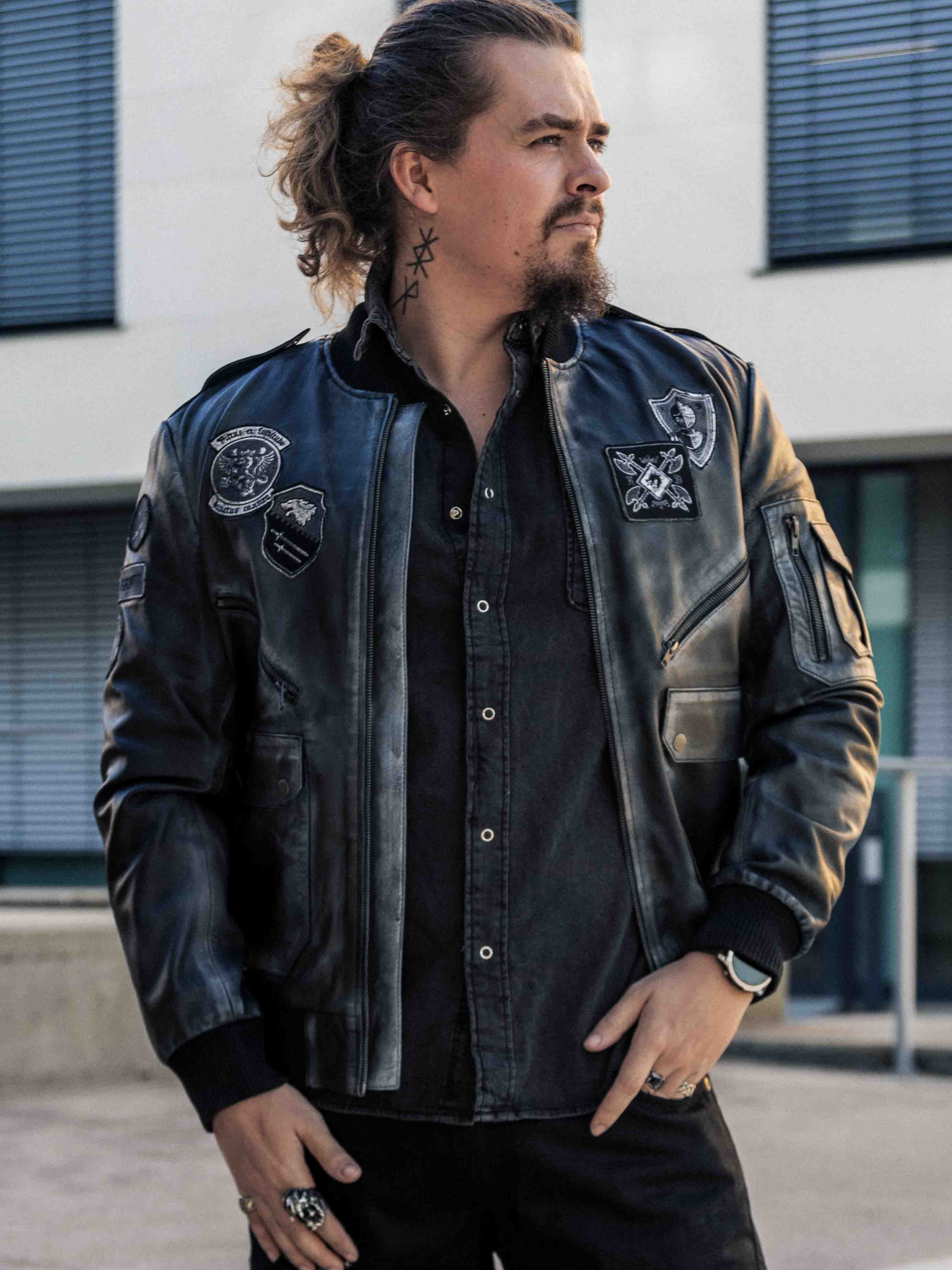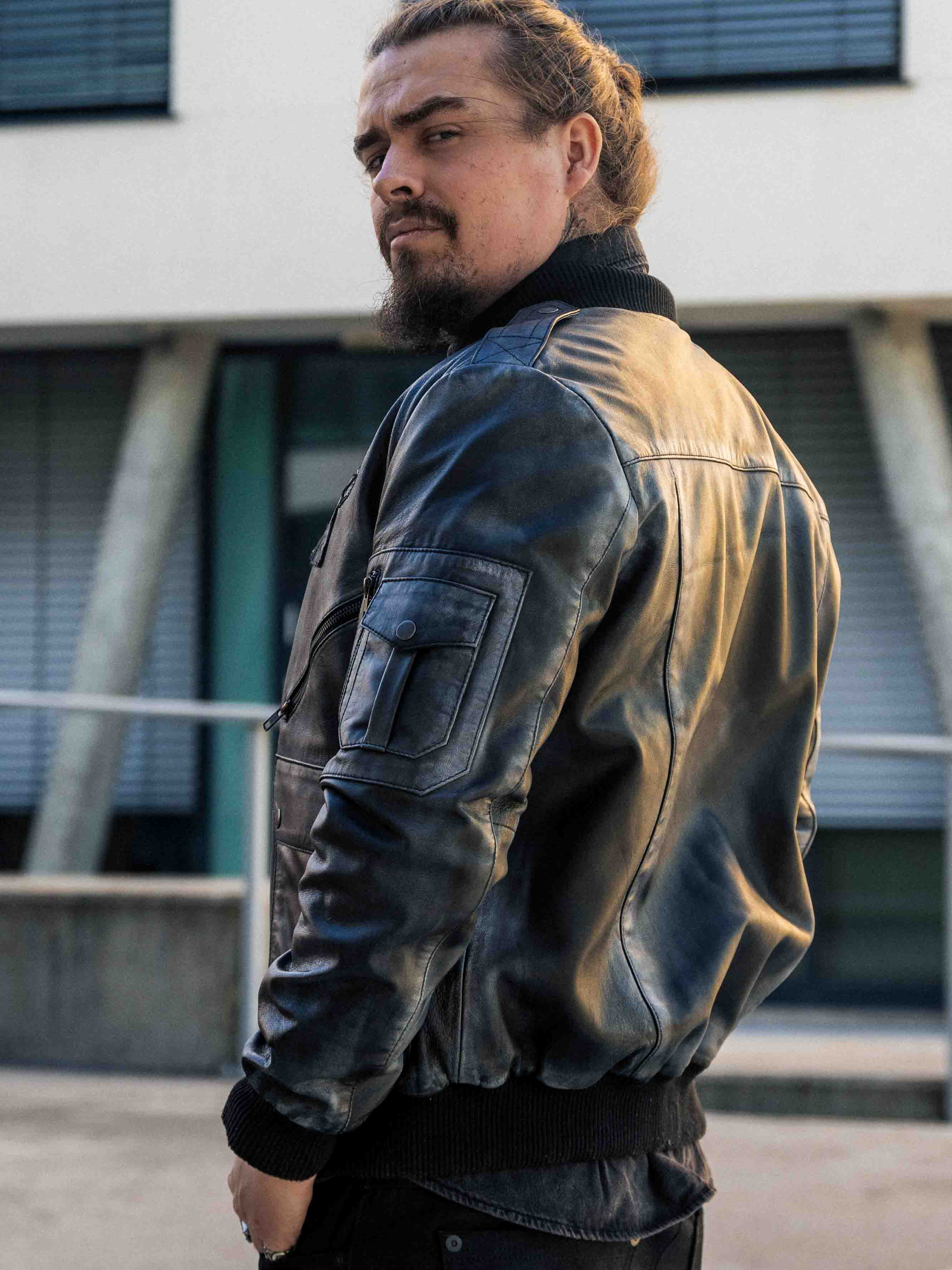 Retroinspirert jakke i en stilig, vintage svart farge med dekorative lapper. Laget av mykt og smidig kvalitetsskinn med ribbestrikkede kanter for optimal passform. Den har flere lommer som kan lukkes, noe som gir både praktisk funksjon og stilig design. Dette er en jakke vi har utviklet selv, og den er en av våre tøffeste jakker!