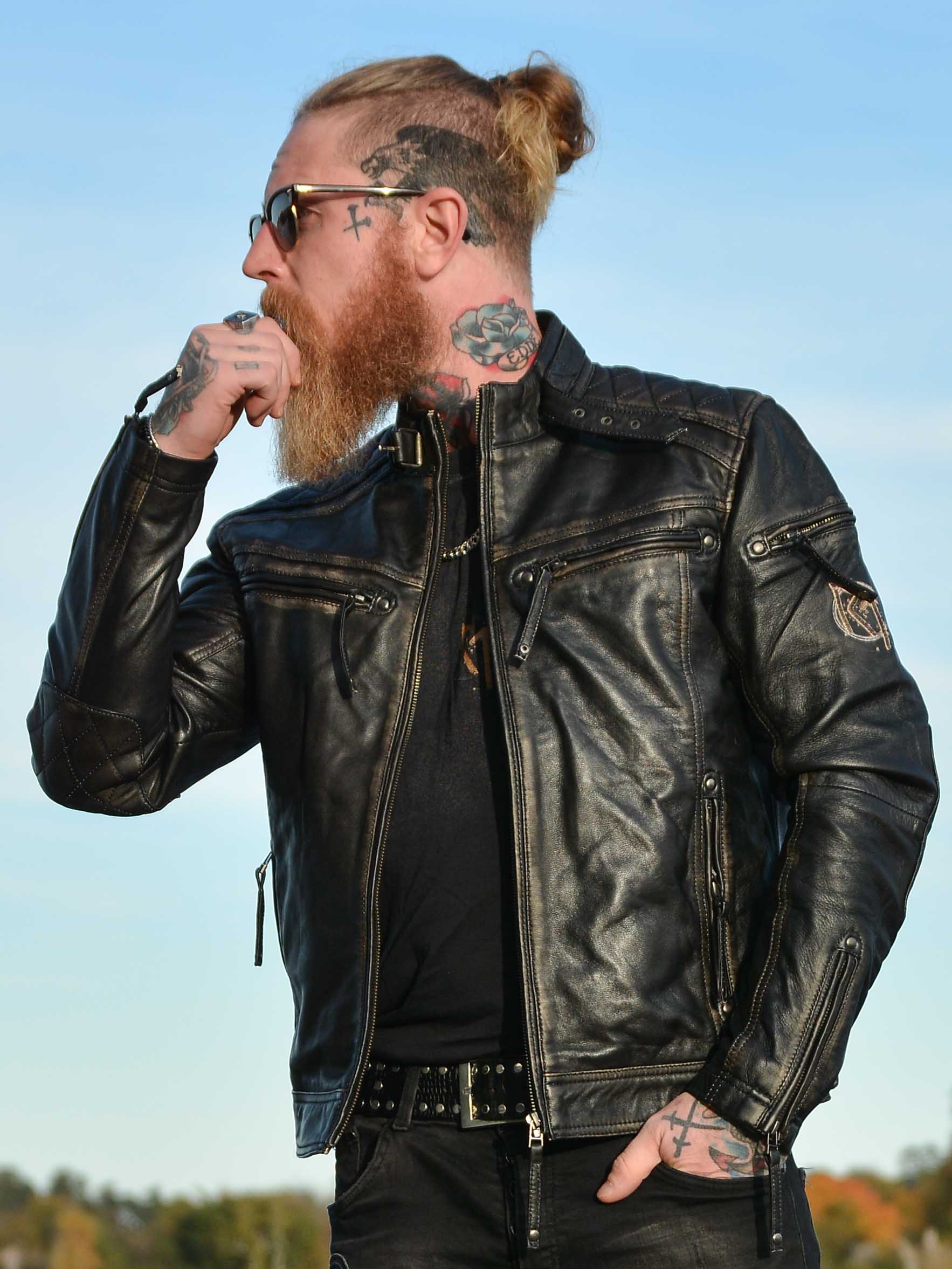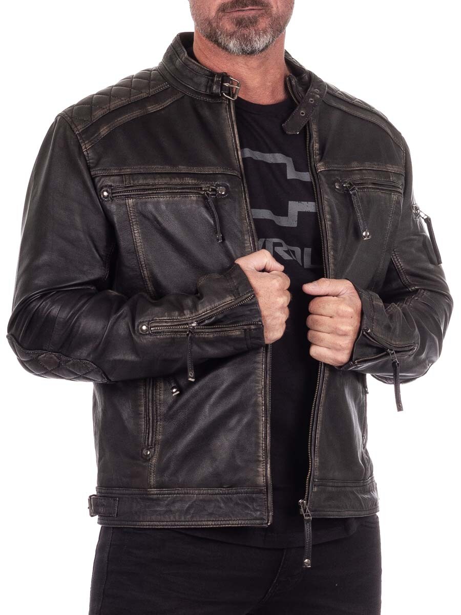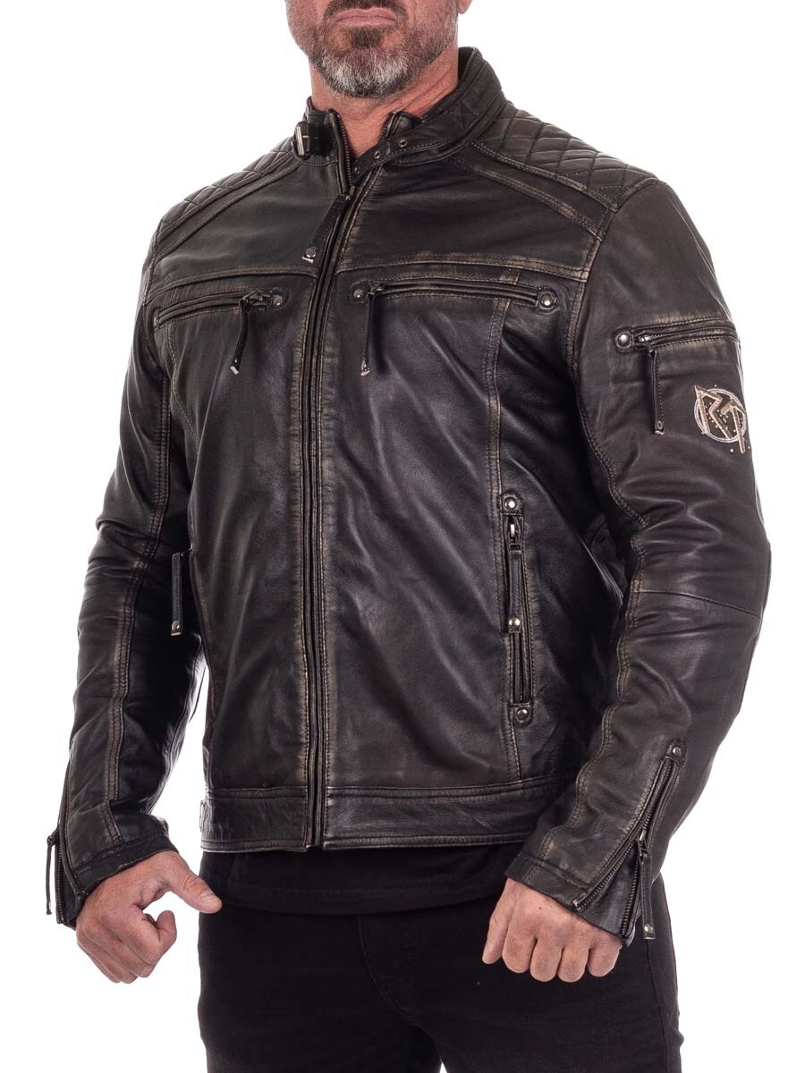 Røff jakke i ekte skinn med slitt vintage-look og broderte vikingmotiver som gir en unik karakter. Designet med vatterte partier, justerbare mansjetter og linning for optimal passform. Fire lukkbare lommer foran og to praktiske innerlommer. Denne jakken er eksklusivt laget for våre kunder og du finner den kun hos RockDenim!