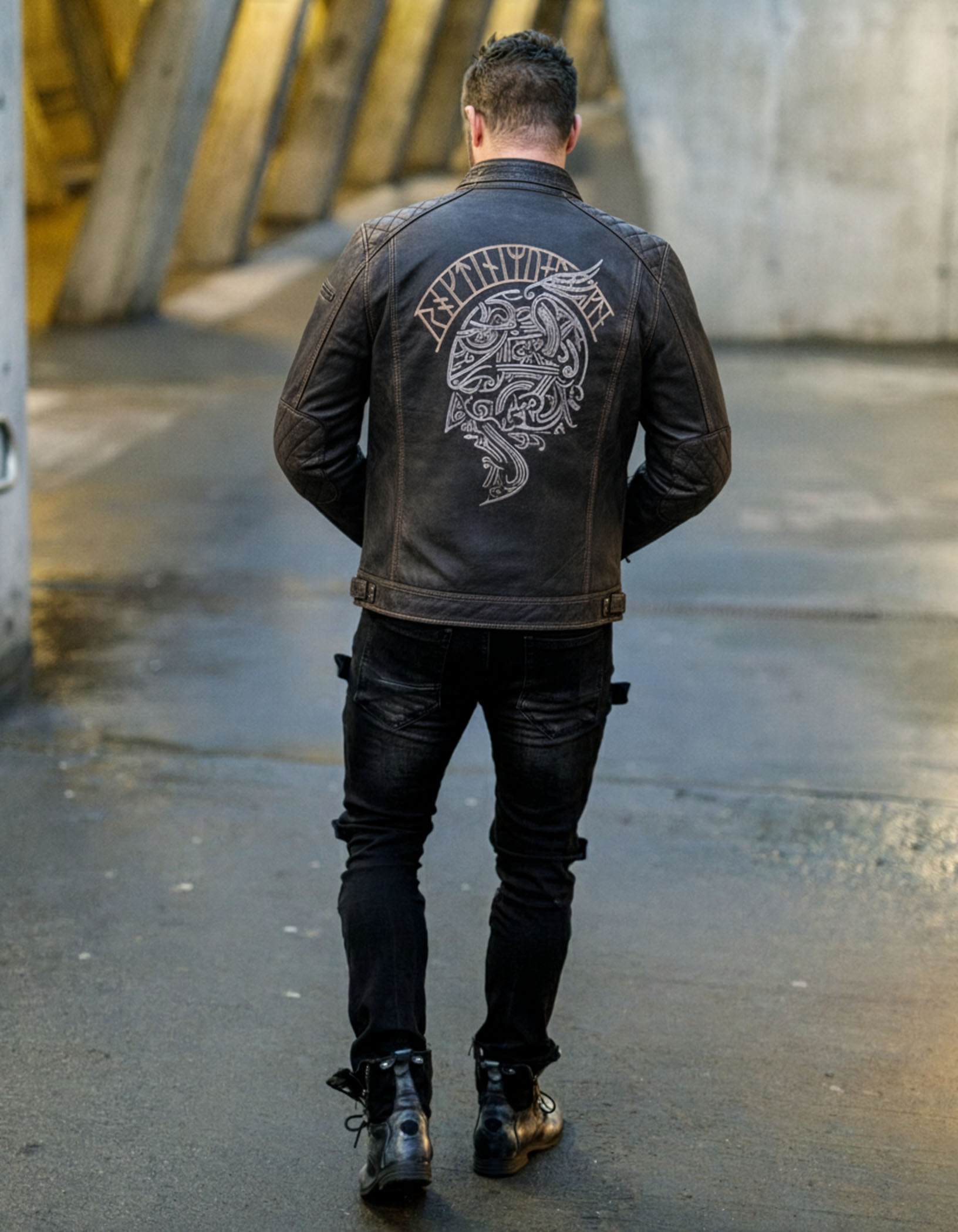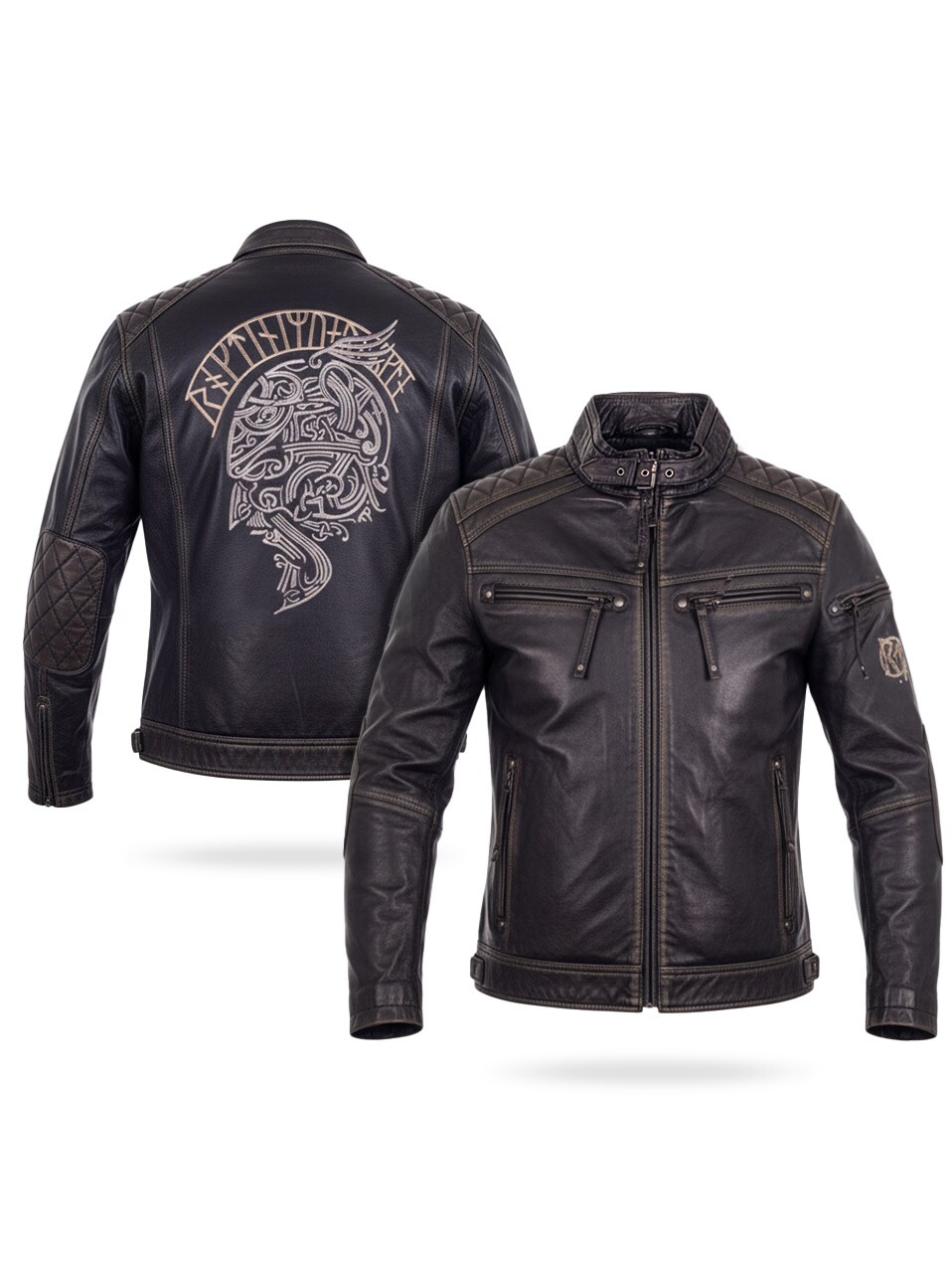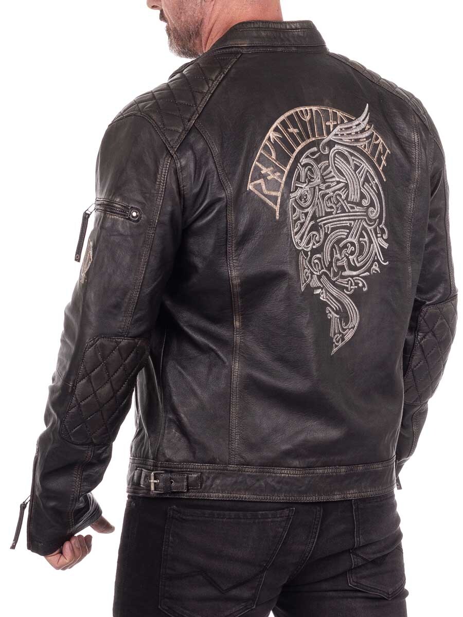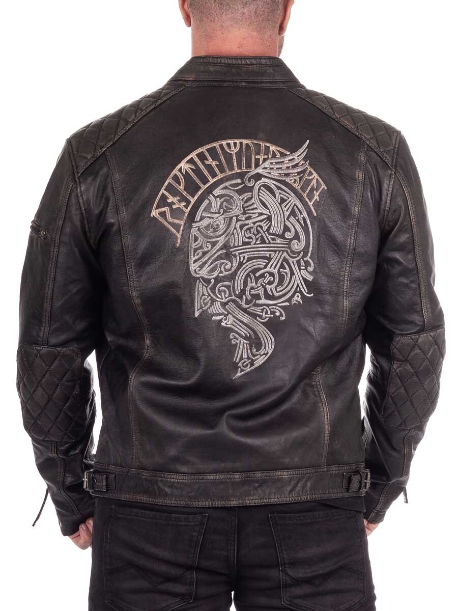 Skinnjakke med vikinginspirert broderi – RD Ancestors Viking Collection