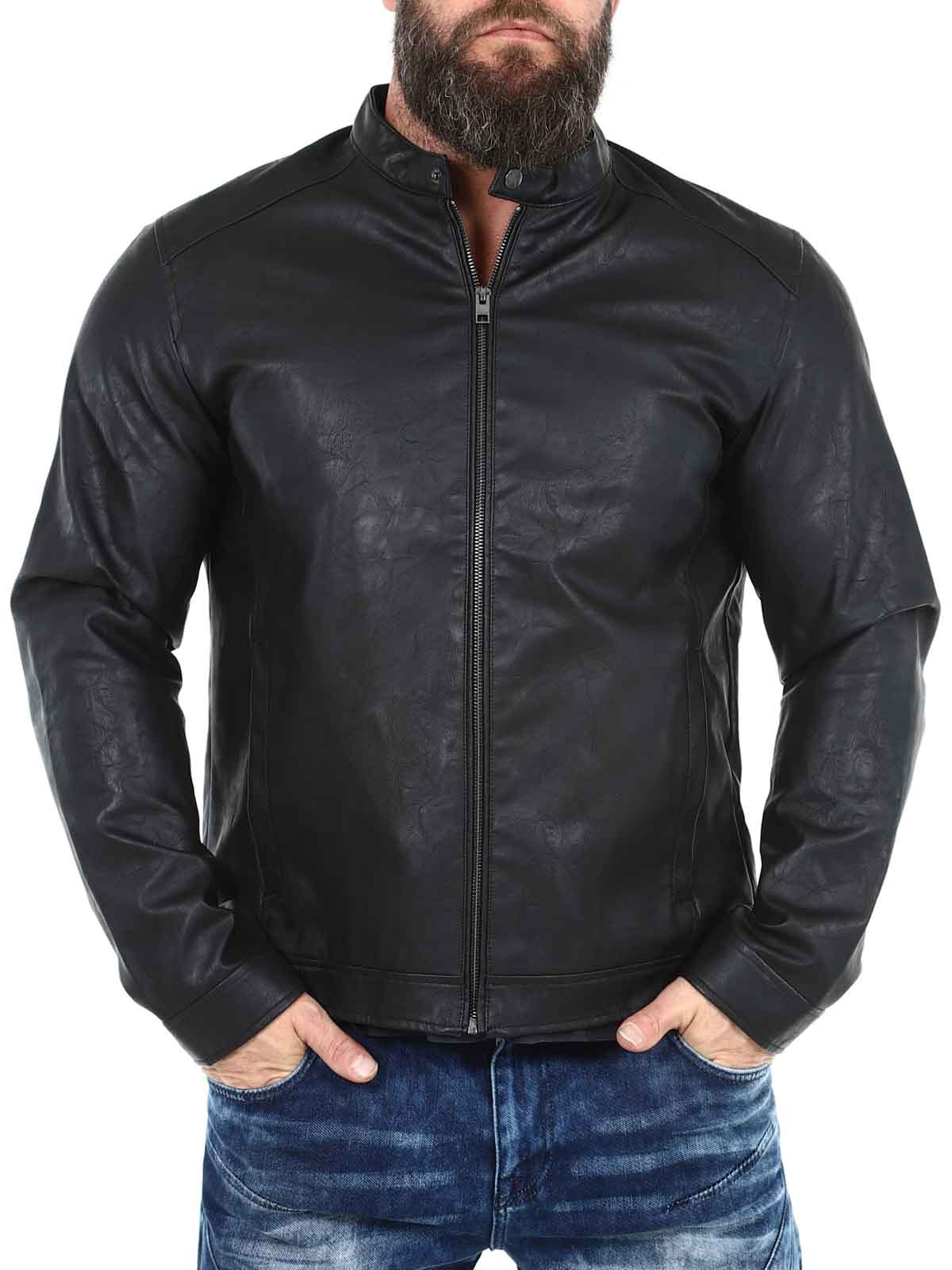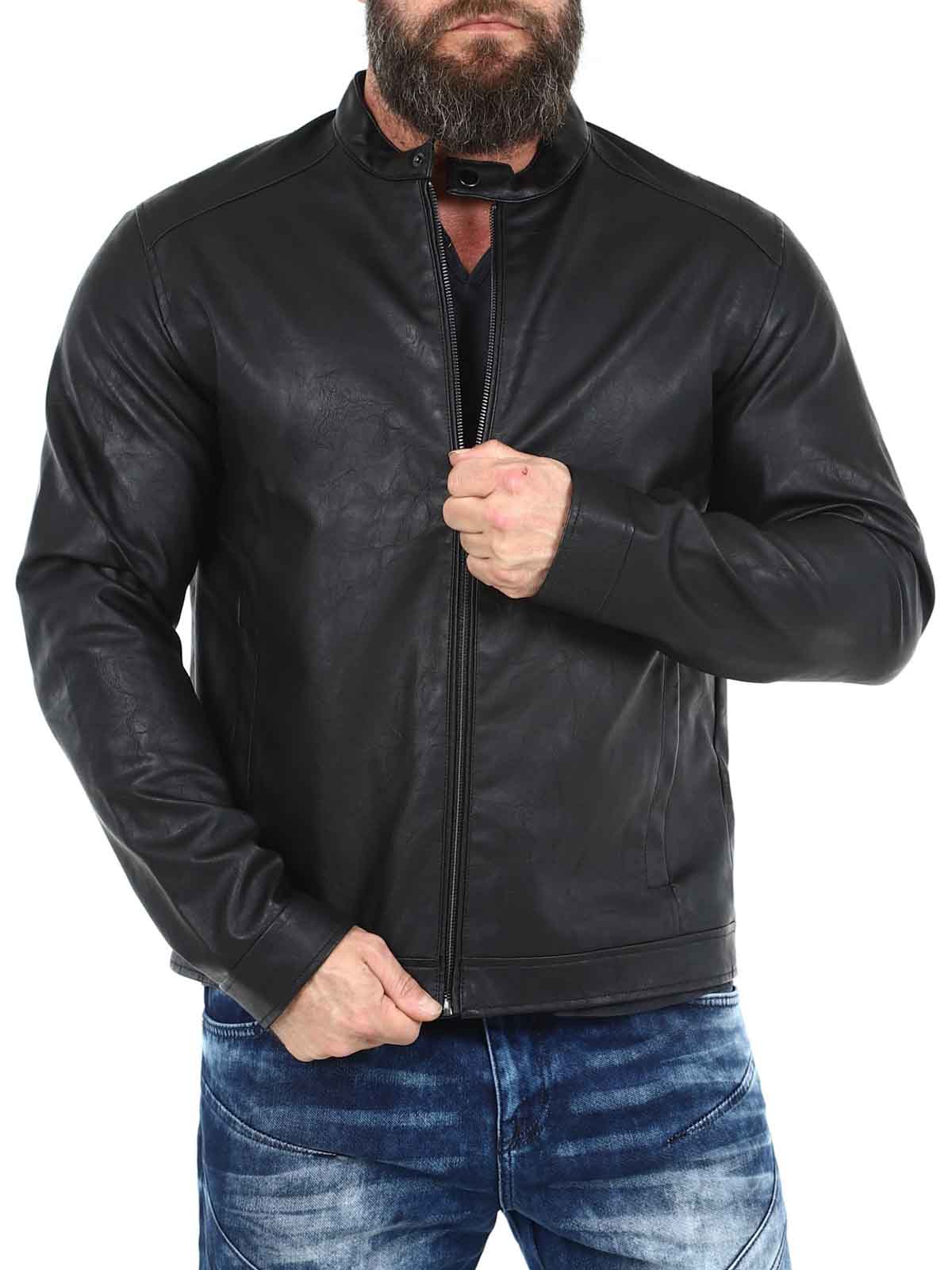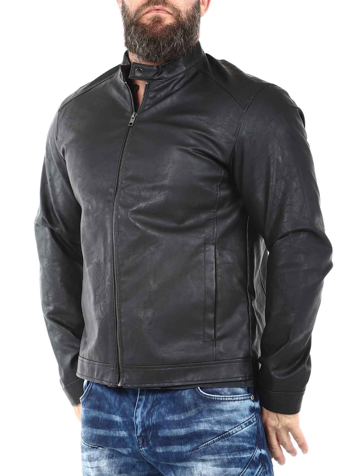 Stilig jakke i skinnimitasjon som er perfekt for en tidløs look. Den har et klassisk design med rette linjer, noe som gjør den enkel å matche med både hverdags- og festklær. Den har glidelås foran og to sidelommer for praktisk oppbevaring. Laget av polyuretan, som er et slitesterkt, syntetisk alternativ til skinn og lett å ta vare på.