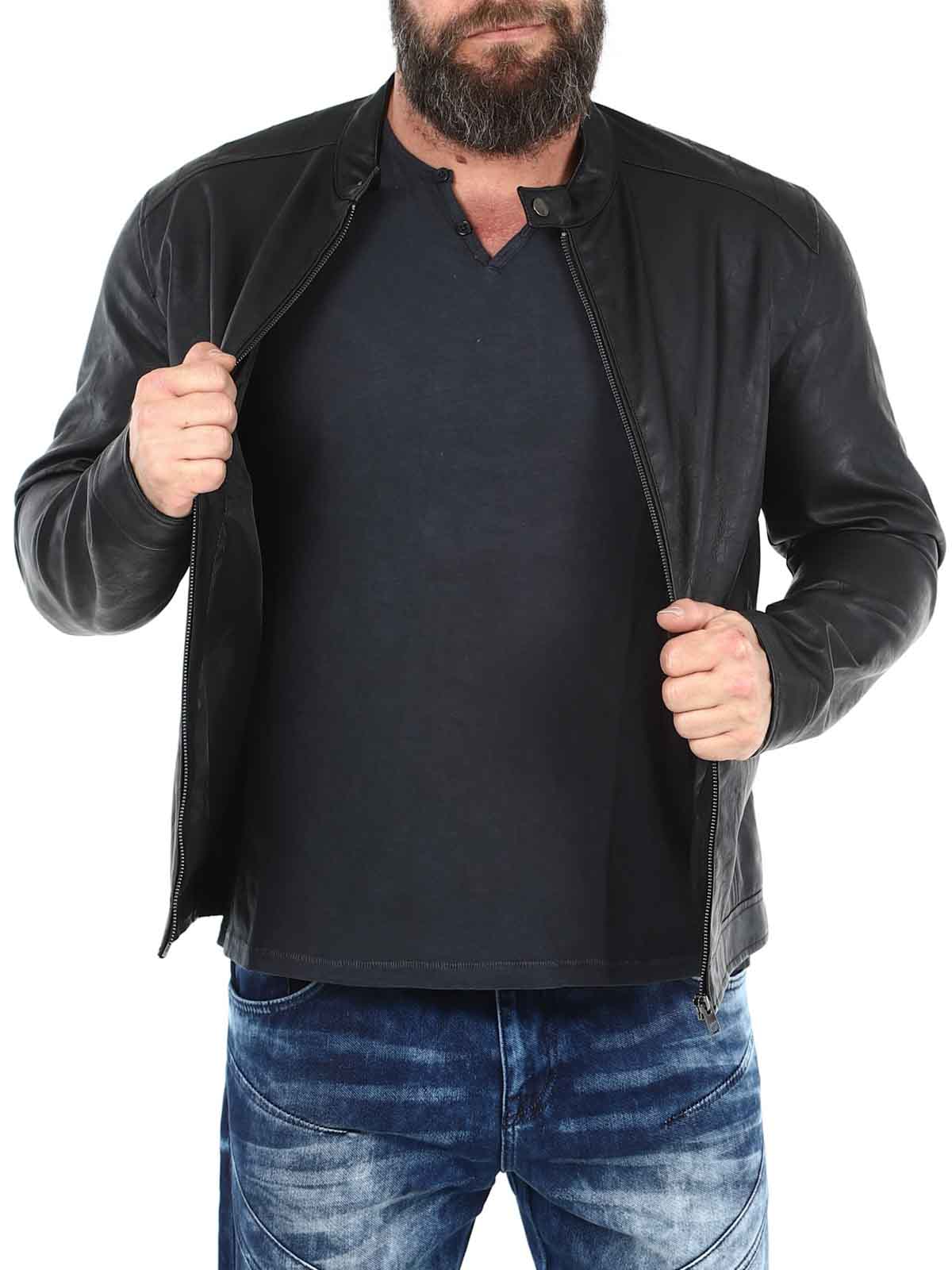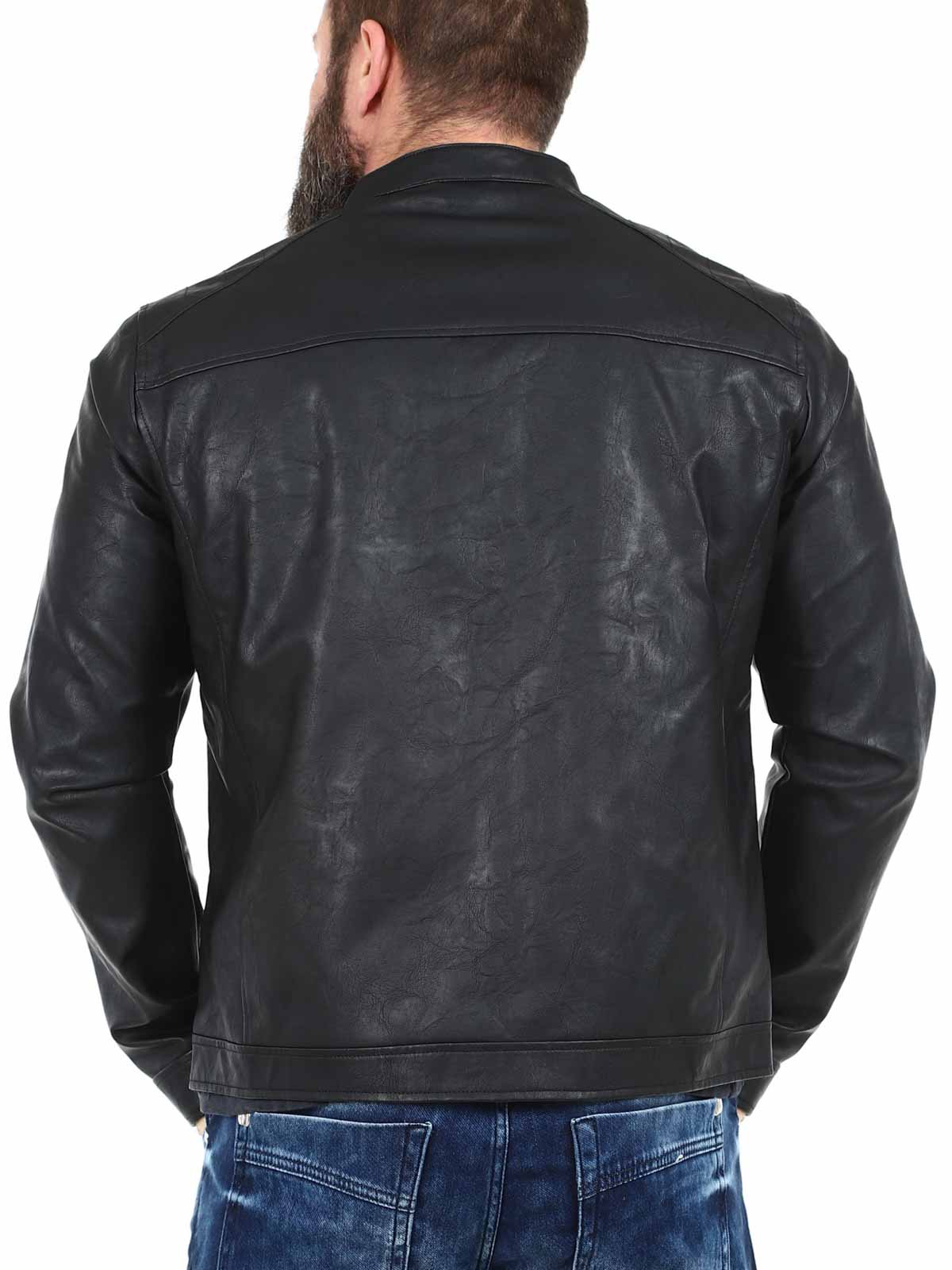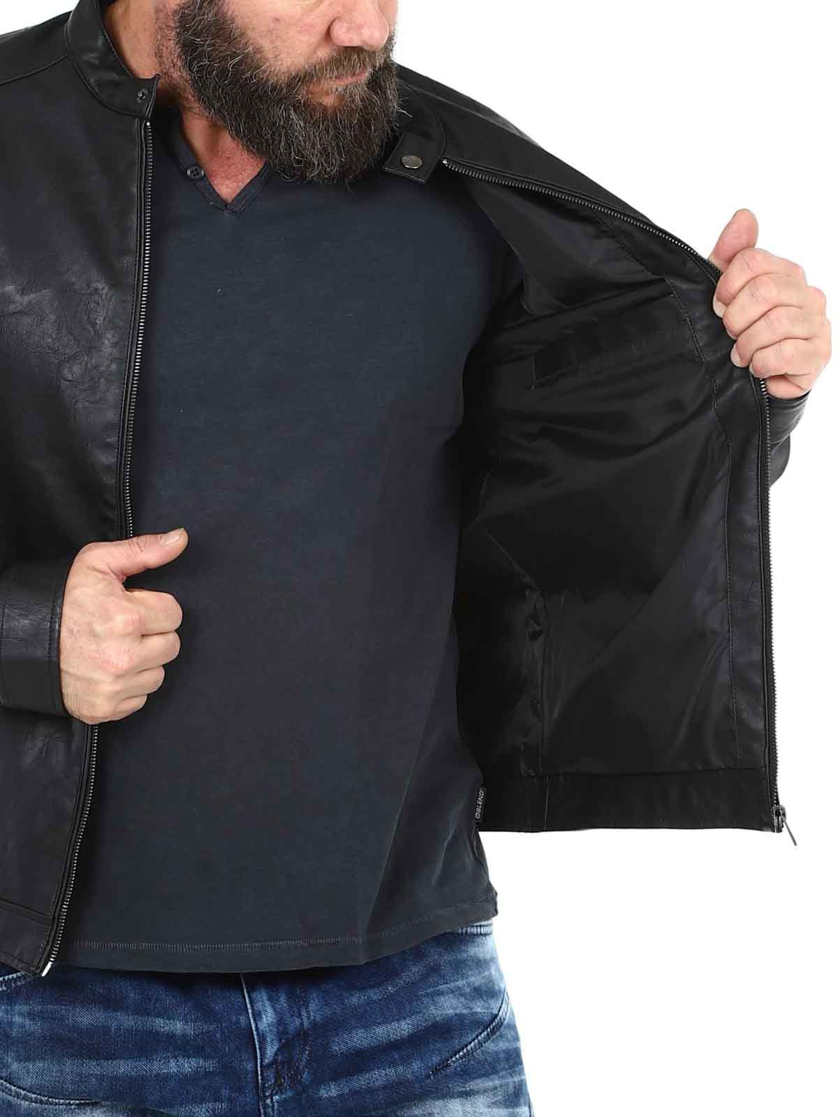Stilig jakke i skinnimitasjon som er perfekt for en tidløs look. Den har et klassisk design med rette linjer, noe som gjør den enkel å matche med både hverdags- og festklær. Den har glidelås foran og to sidelommer for praktisk oppbevaring. Laget av polyuretan, som er et slitesterkt, syntetisk alternativ til skinn og lett å ta vare på.