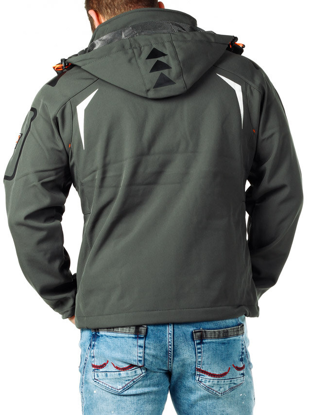 Grågrønn jakke med orange kontraster som passer til alle aktiviteter med vindtett og vannavvisende materiale. Tynt fleecefôr, tapede sømmer og mange lommer gjør jakken praktisk og perfekt å ha på vår/sommer/høst. Den har grønt design med lapper og teksttrykk i kontrastfarger, fire lukkbare frontlommer, to innerlommer med glidelås og avtagbar hette.