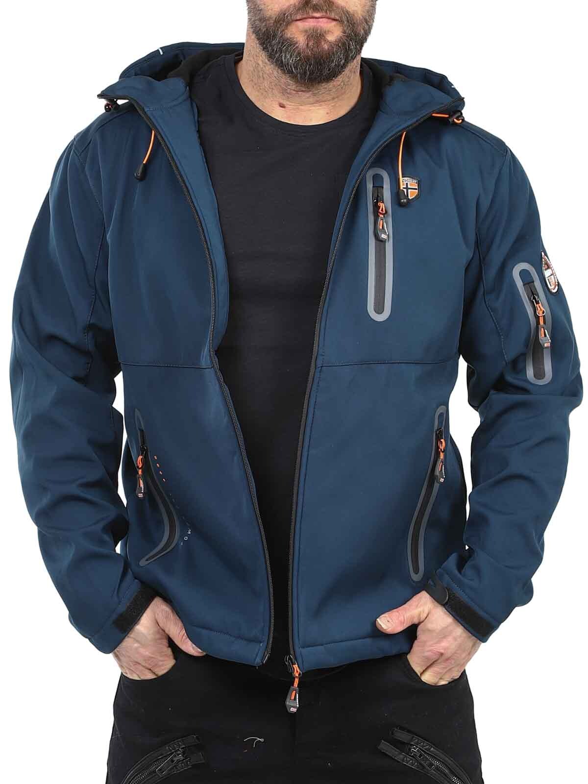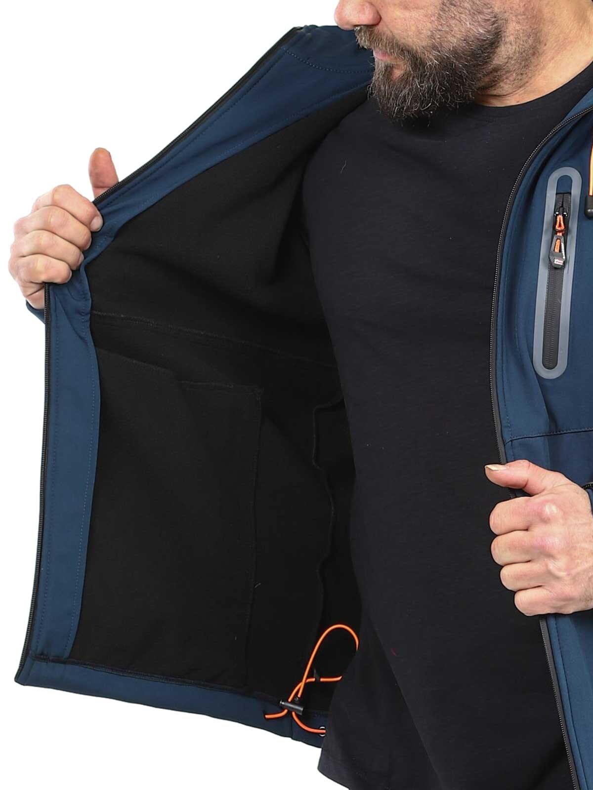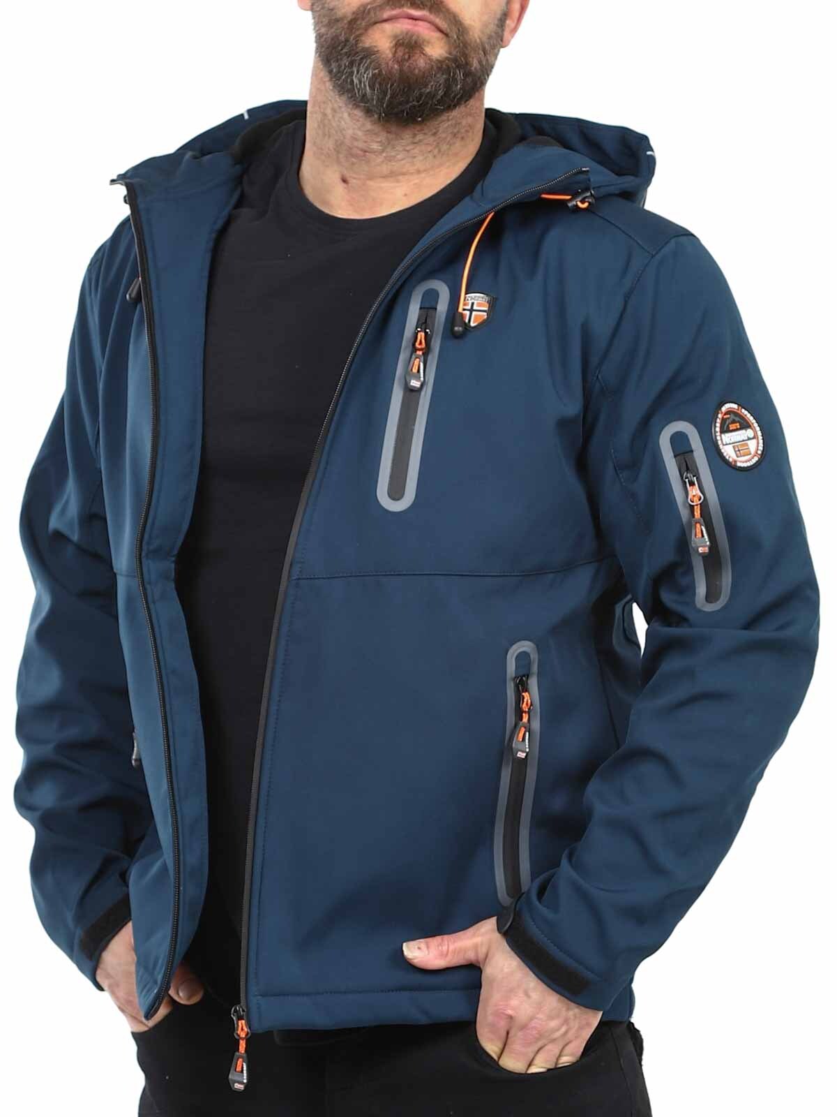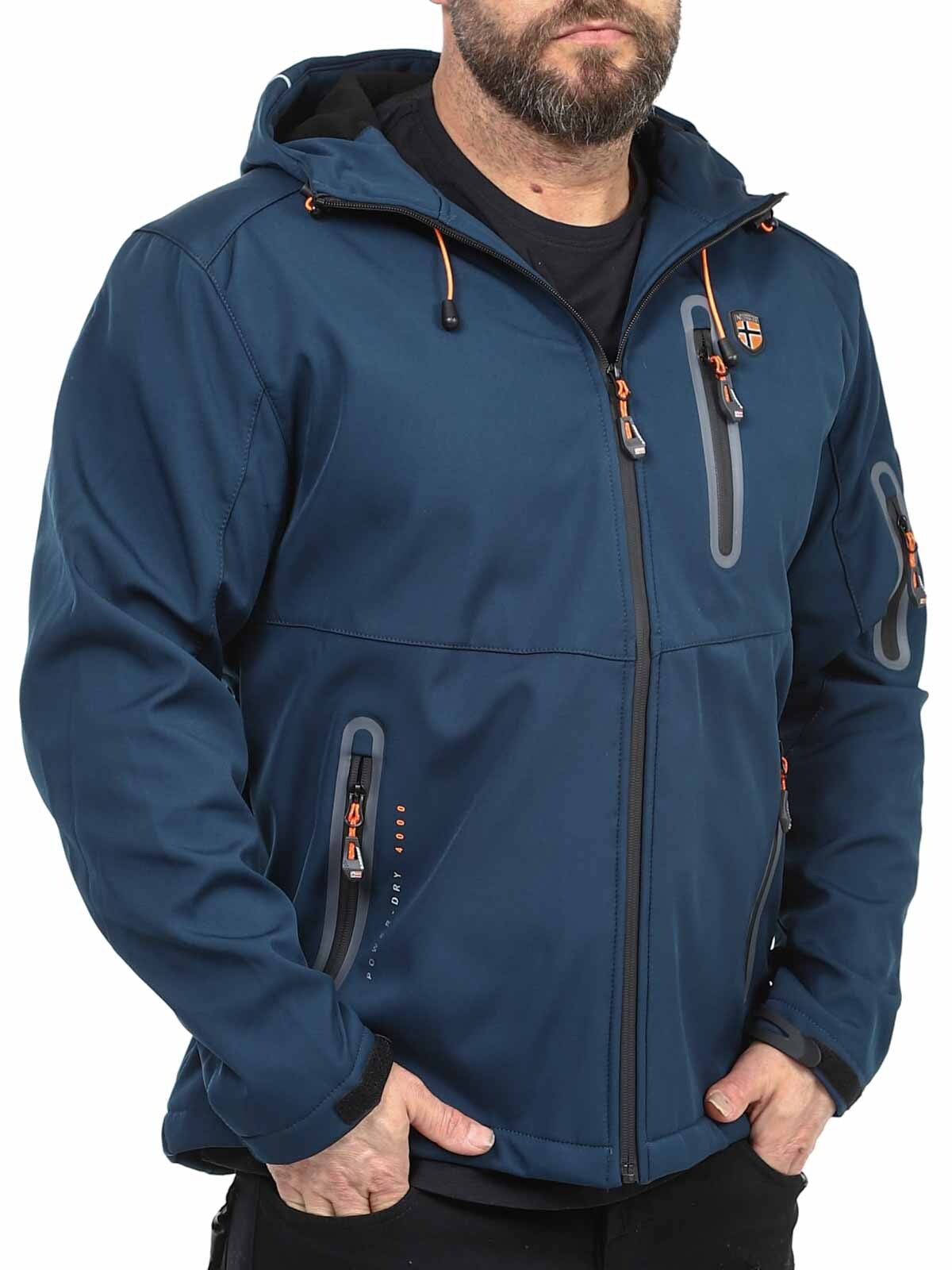 Funksjonell jakke i softshell med teipede sømmer og egenskaper som motstår vær og vind. Justerbar hette og flere lommer som kan lukkes. Mansjettene og nederkant kan justeres og strammes til.