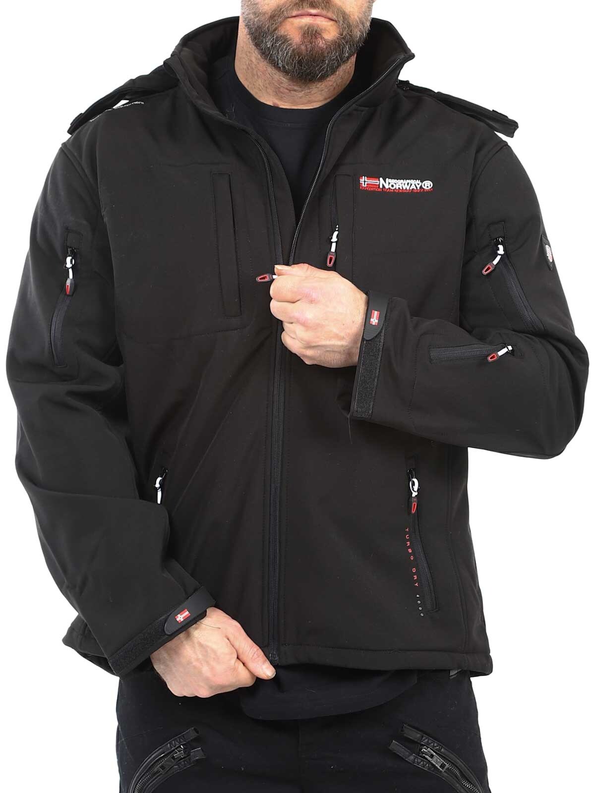 Fleecefôret jakke i softshell for hverdags- og friluftsliv. I tillegg til å være elastisk og slitesterkt, er softshell-stoffet også vannavvisende og svært vindavvisende. Hetten er fullt avtakbar, og lommene har glidelås.