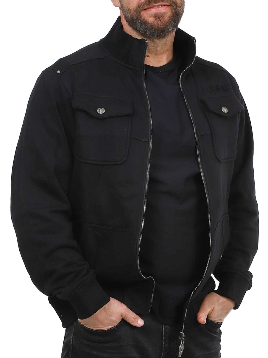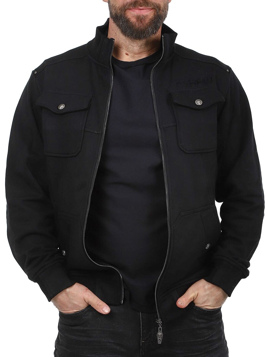 Jakke i en kombinasjon av streetwear og workwear med en rocka attitude. Laget av myk, men slitesterk bomull med ribbestrikkede mansjetter og nederkant for en behagelig og fleksibel passform. Den har en kraftig glidelås foran, fire praktiske lommer med klaffer og en høy krage for ekstra beskyttelse.