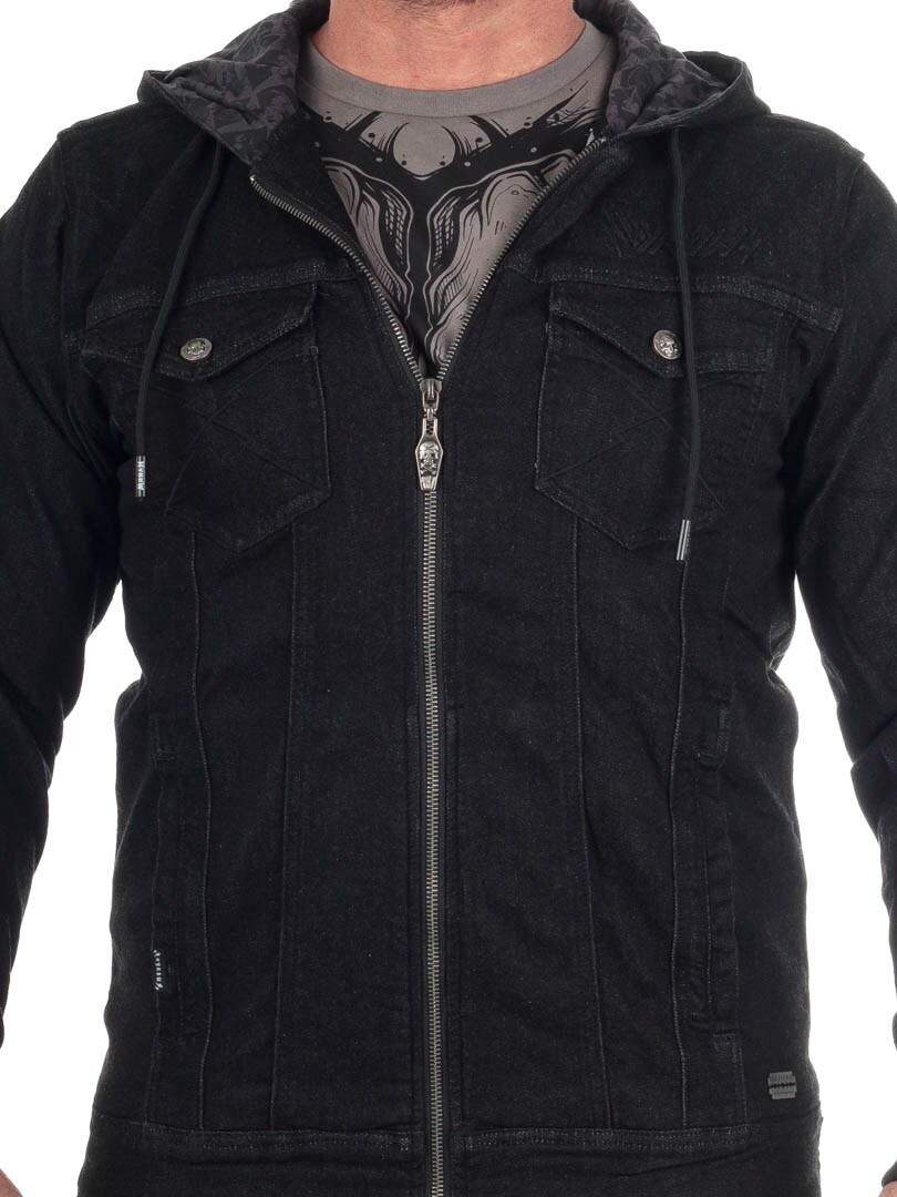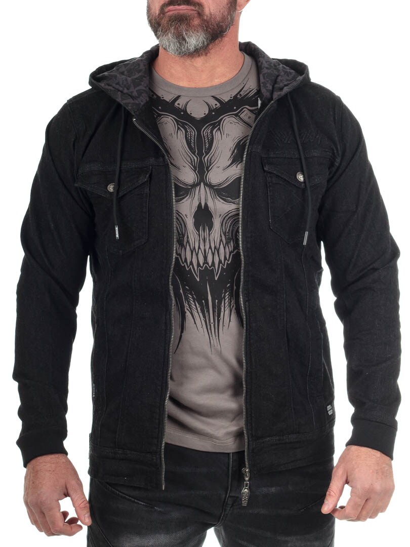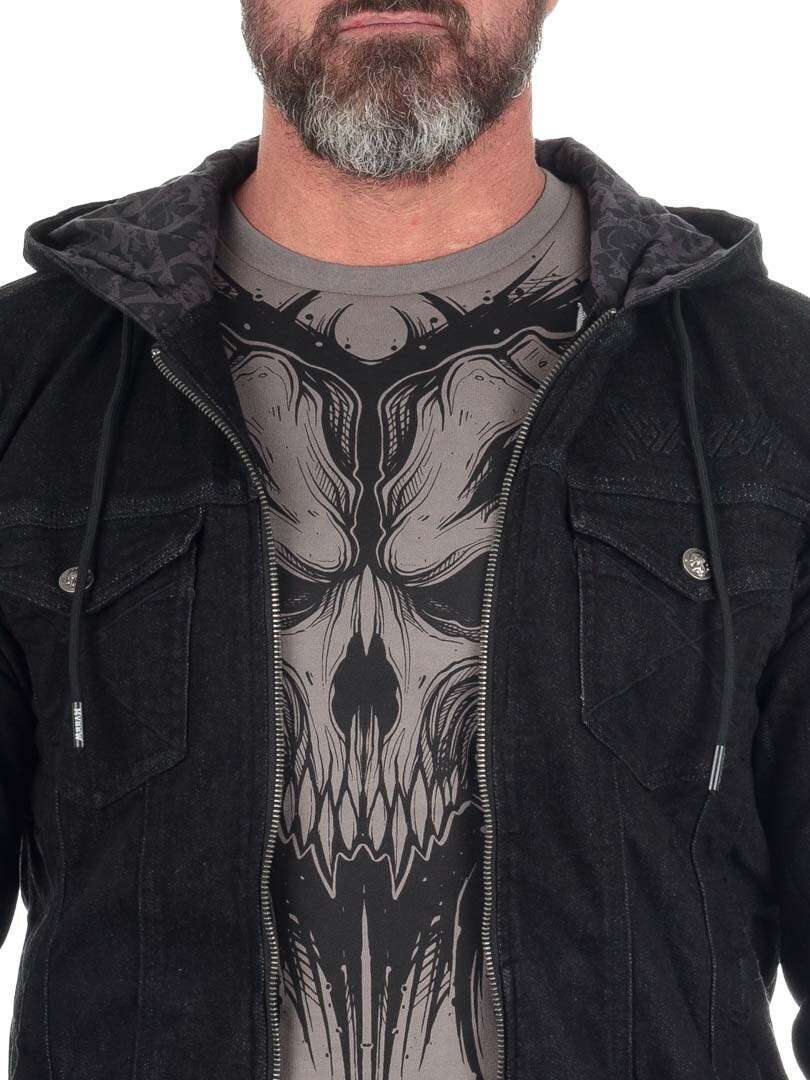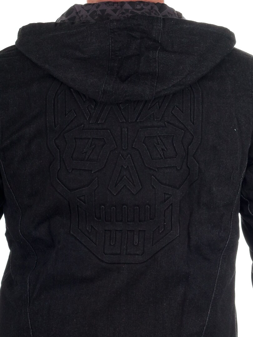 Stilig og stretchy jakke designet med et stort hodeskallemotiv på ryggen og Hyraw-logoen over brystlommen foran. Denne jakken er et klassisk, men samtidig moderne plagg, med sitt superkomfortable materiale og stiliserte pregete detaljer. Perfekt for en avslappet rock-/metal-inspirert look!