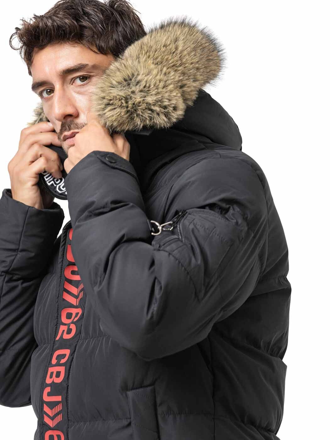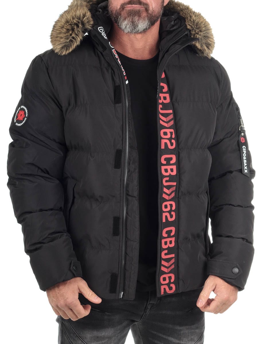 Cipo & Baxx Aylmer er en svart dunjakke for herre som kombinerer varm funksjonalitet med en distinkt urban stil.