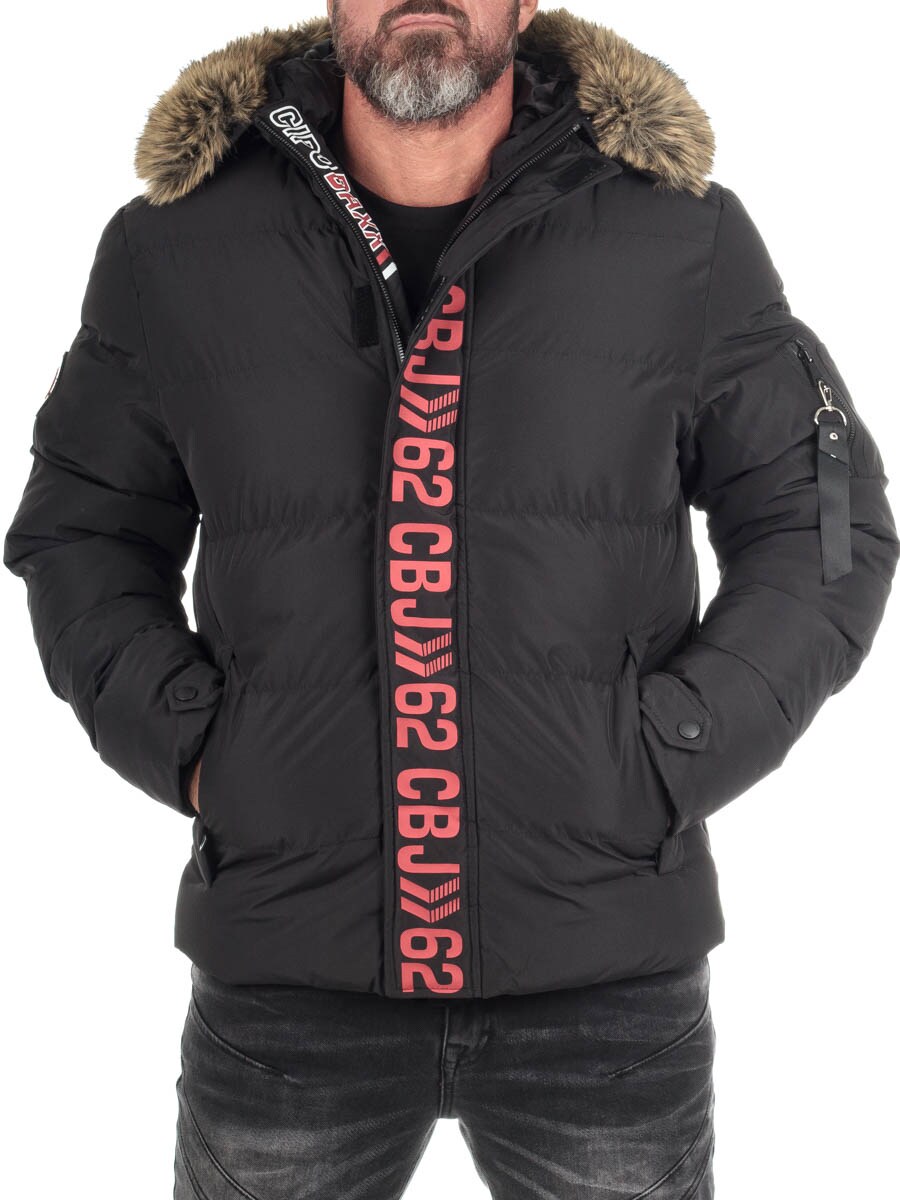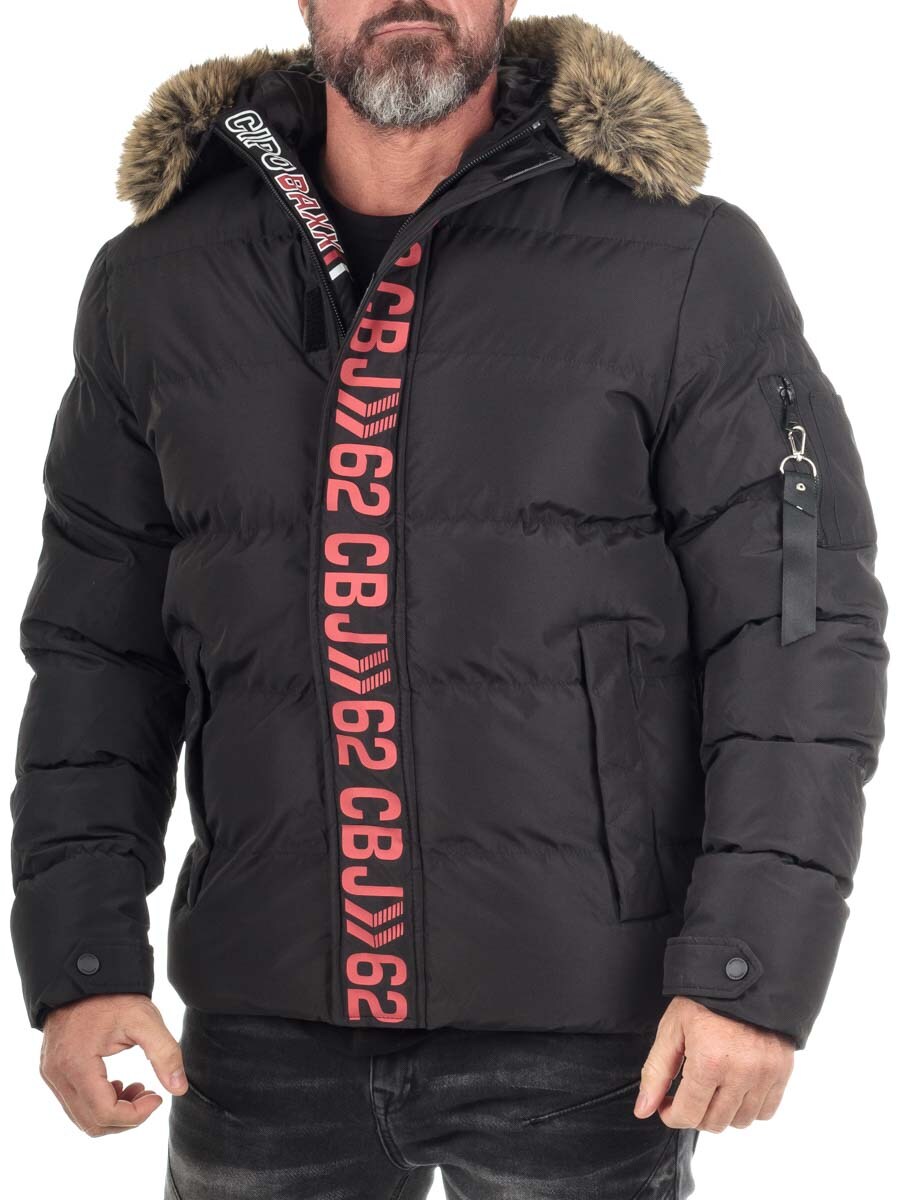 Denne varme herrejakken fra Cipo & Baxx er det perfekte valget for kalde dager og sterke fremtoninger takket være dens isolerende fôr og den iøynefallende CIPO & BAXX-teksten langs glidelåsen foran. Jakken har en praktisk hette med fuskepels som gir ekstra beskyttelse mot vind og kulde, og det sporty designet i klassisk svart med en slående rød logo foran gir en moderne, uttrykksfull look. Med sin holdbare, værbestandige yttermateriale, sidelommer og ribbestrikkede mansjetter, er dette et plagg som kombinerer både komfort og den nyeste streetwear-trenden. Den unike vertikale merkingen gjør at denne pufferjakken umiddelbart skiller seg ut i mengden.