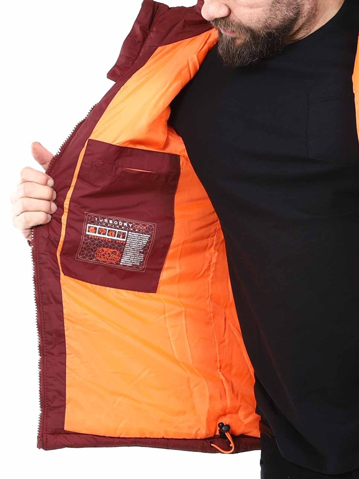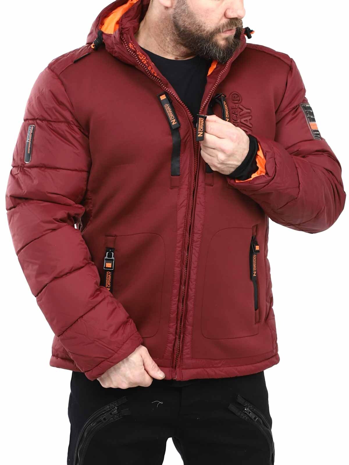 Fôret jakke som er vind- og vannavstøtende. Den har fire frontlommer med glidelås, samt to åpne innerlommer. Snøring i hetten og linningen nederst.