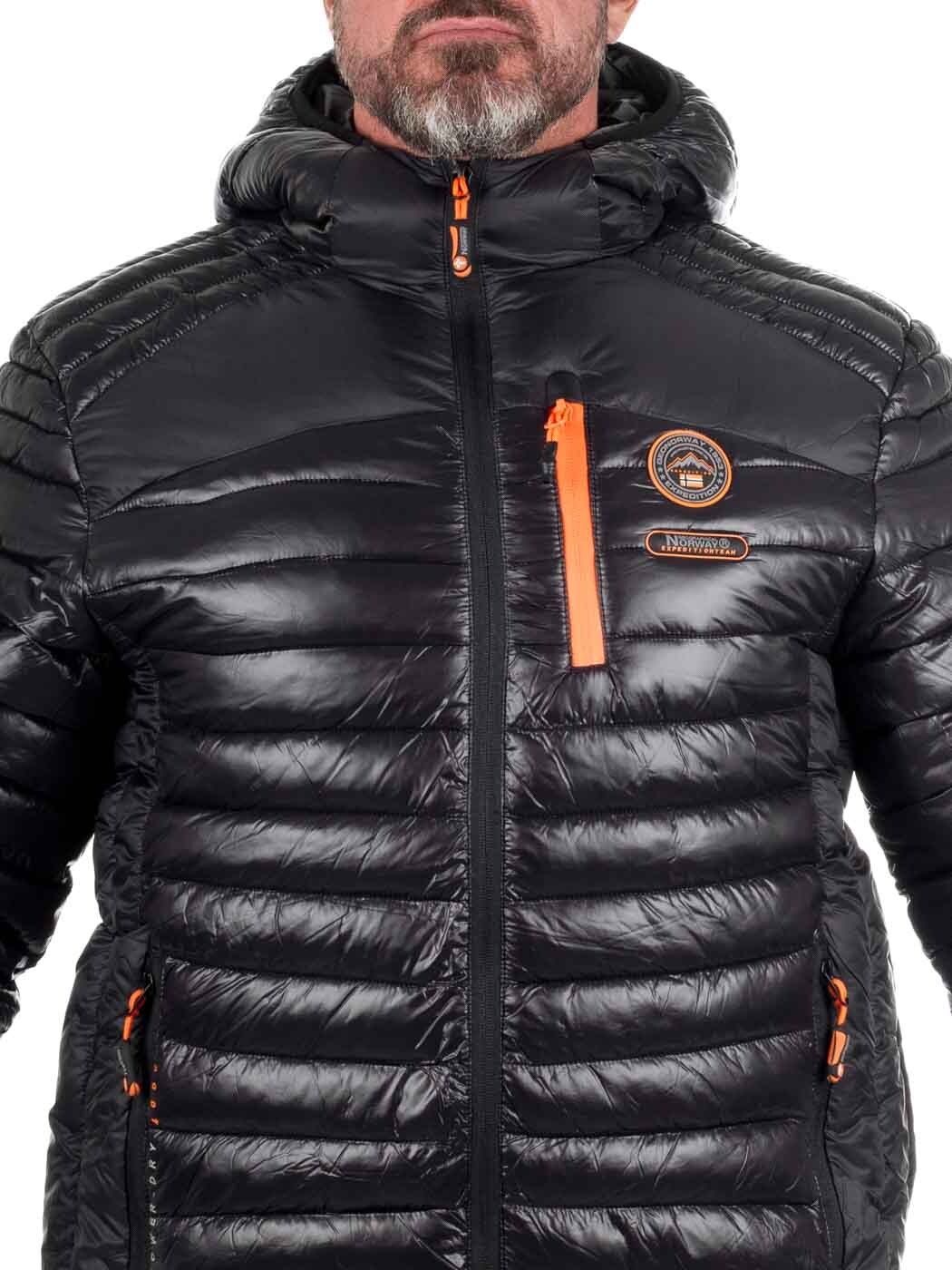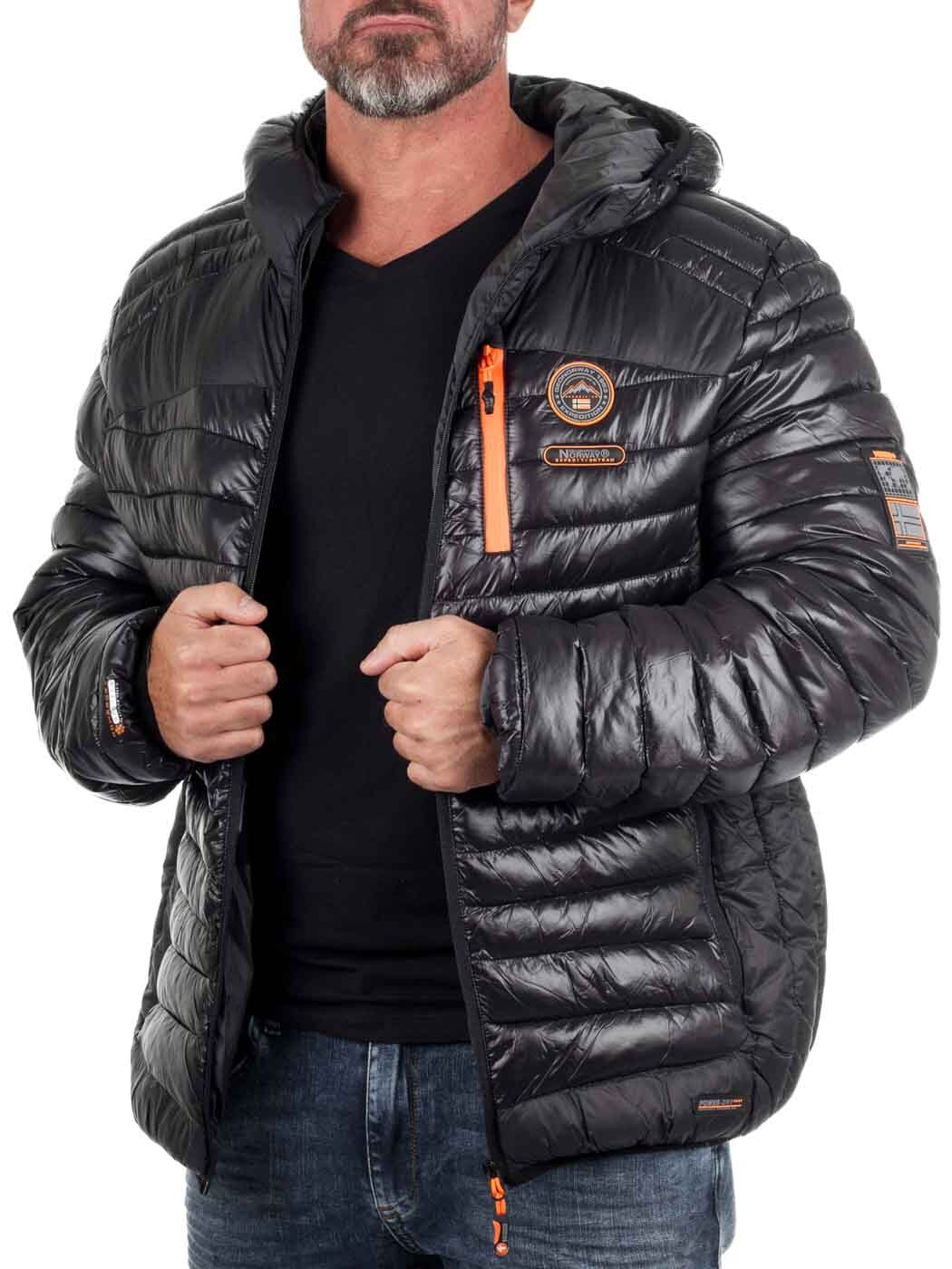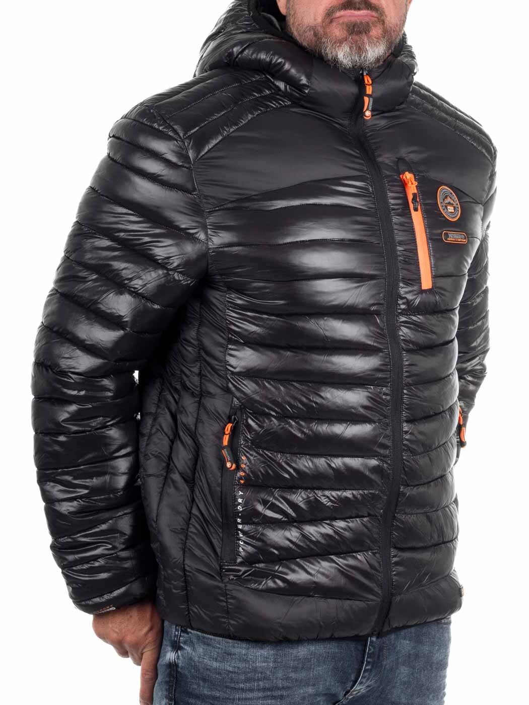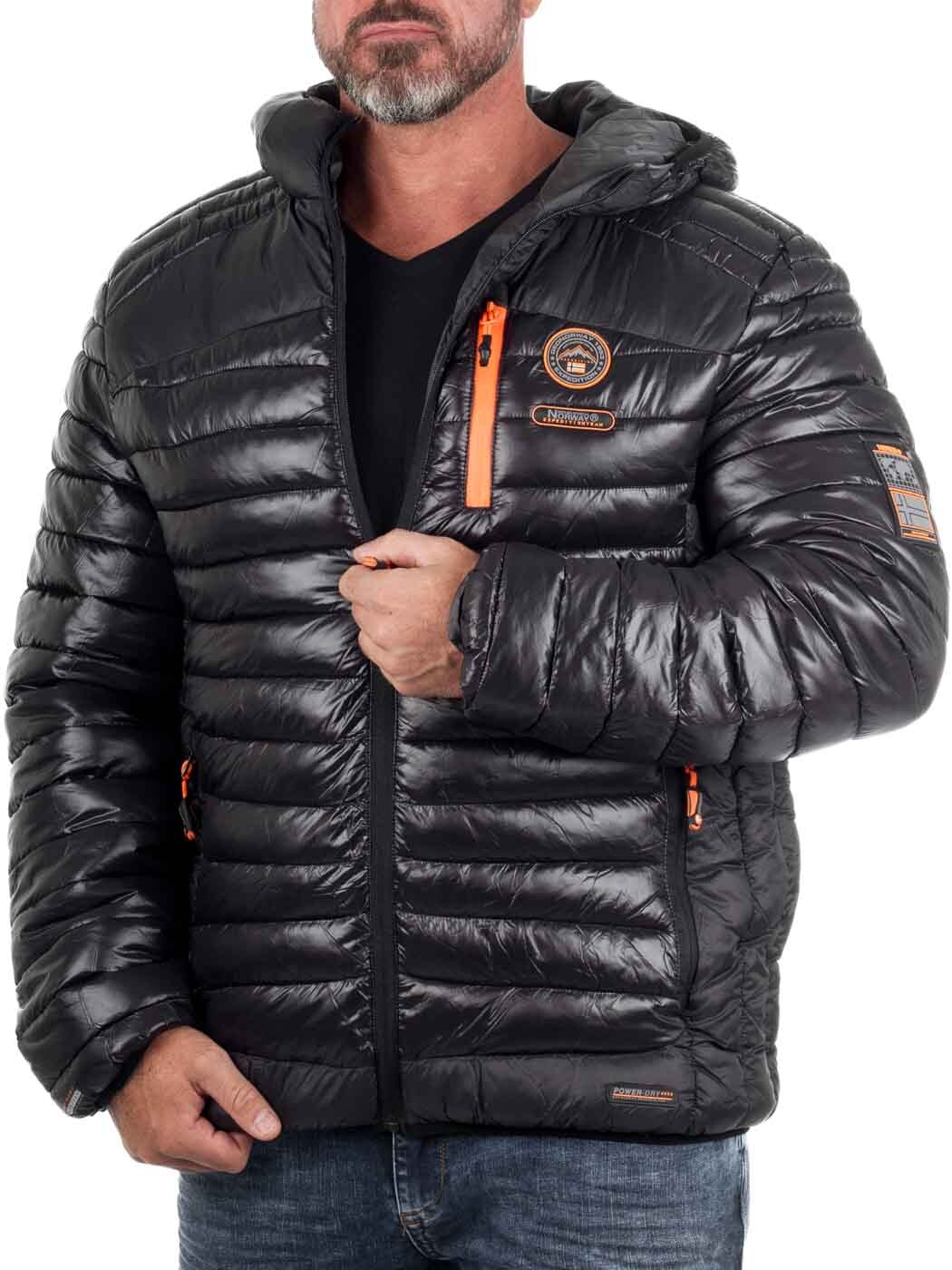 Stilig lettvektsjakke med glansfull finish og kontrasterende oransje detaljer. Jakken er lett vattert og gir god varme uten å føles tung. Designet med flere praktiske lommer, hette og diskrete logopatcher for et moderne uttrykk. Perfekt for overgangssesonger eller som et ekstra lag på kalde dager.