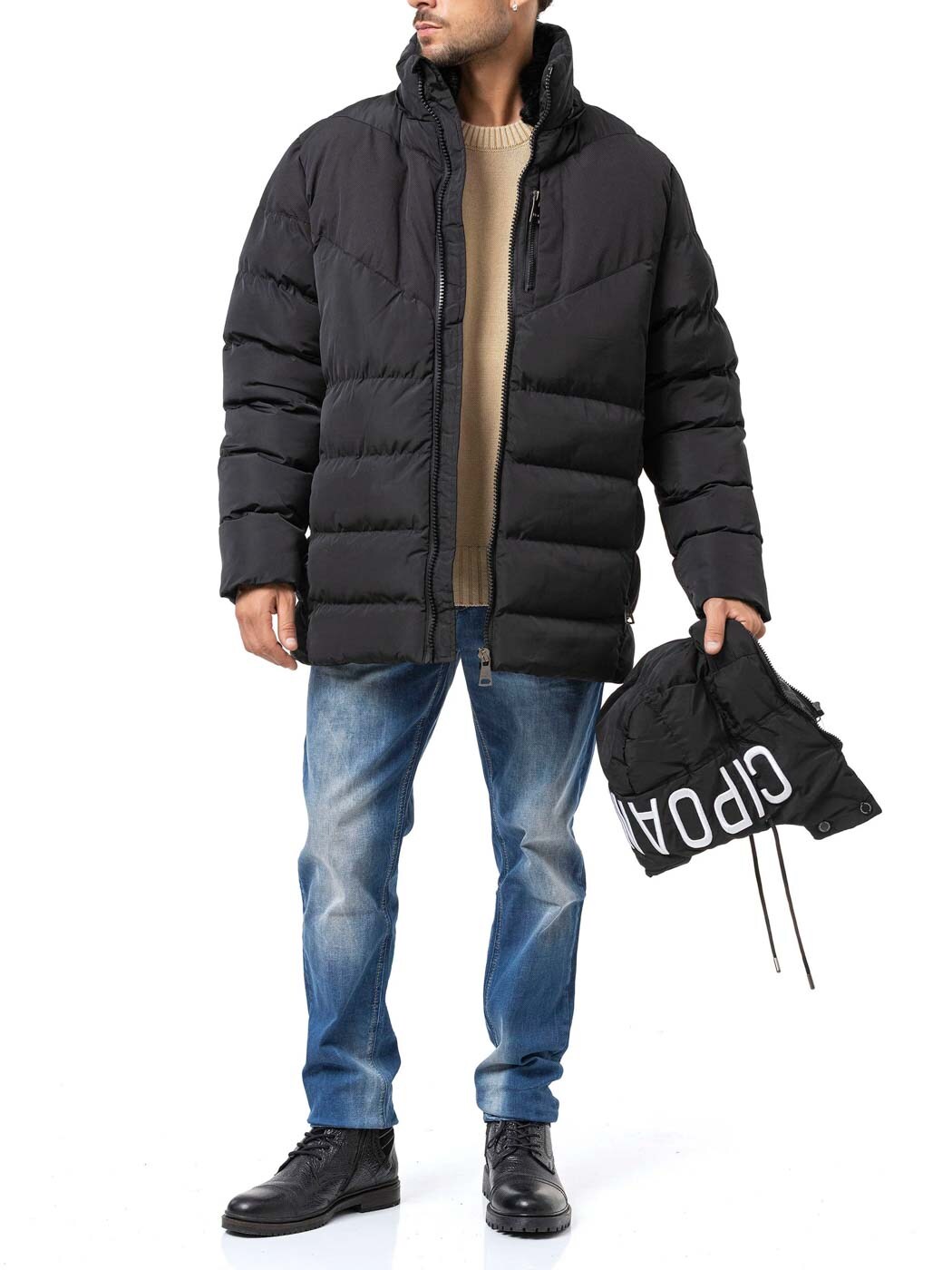 Cipo & Baxx Kenai Pufferjacka i Svart er det ultimate valget for en stilbevisst mann som søker optimal varme og en moderne, urban look.