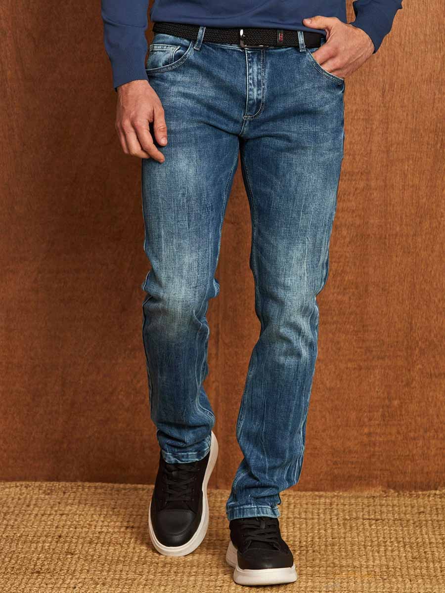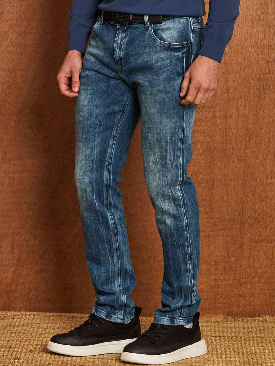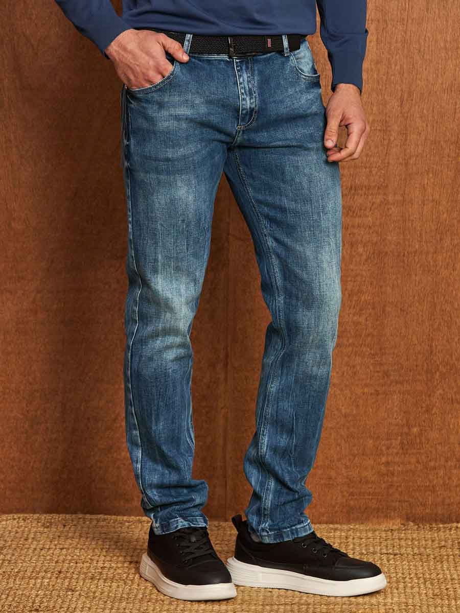 Steinvaskede jeans med straight fit som gir en naturlig silhuett, lett å bruke både til fritid og mer pyntede anledninger. Klassisk 5-lommers modell med stretch for en fleksibel og behagelig følelse. En pålitelig favoritt i garderoben – uansett hvordan du velger å style dem!