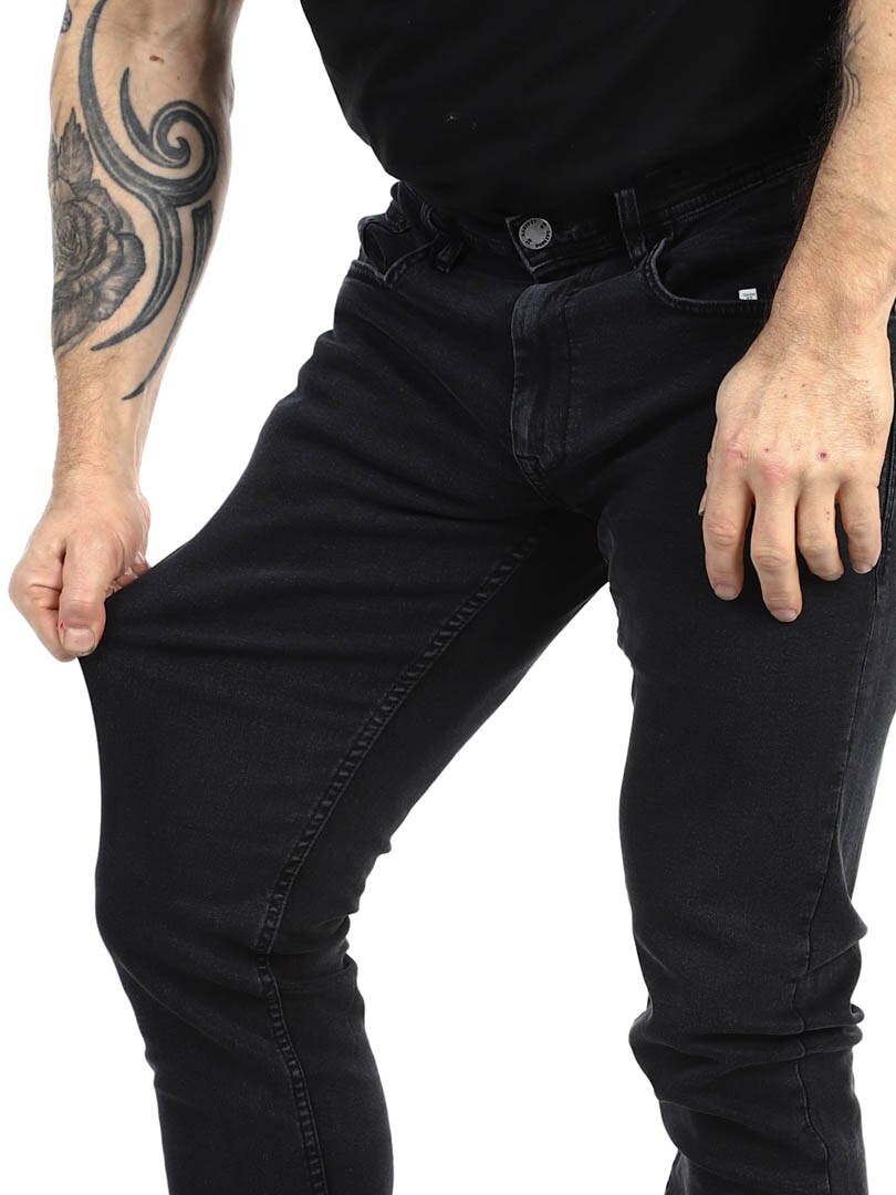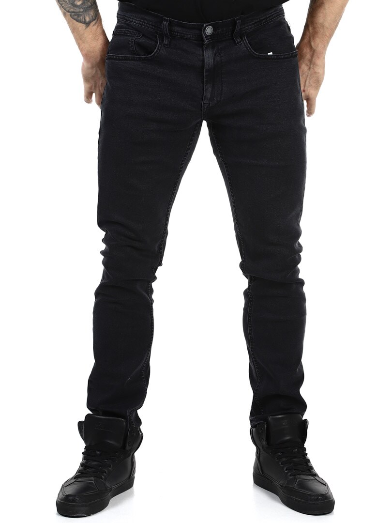 Bukser i stretchdenim med enkel design. 5-lommemodell med normal midje og avsmalnende ben. En basic jeans du kan matche med det meste!