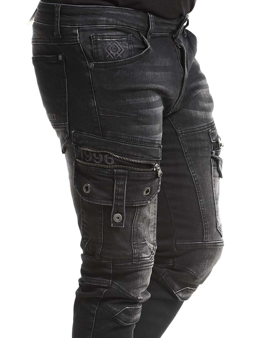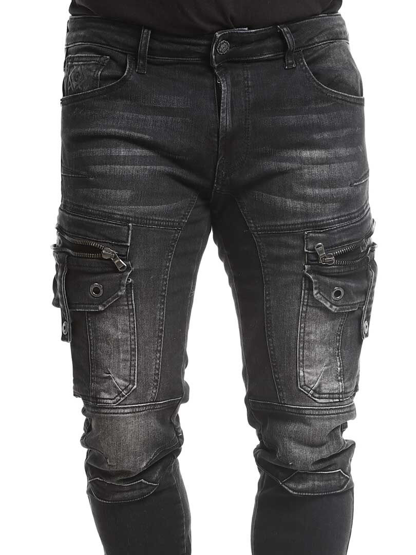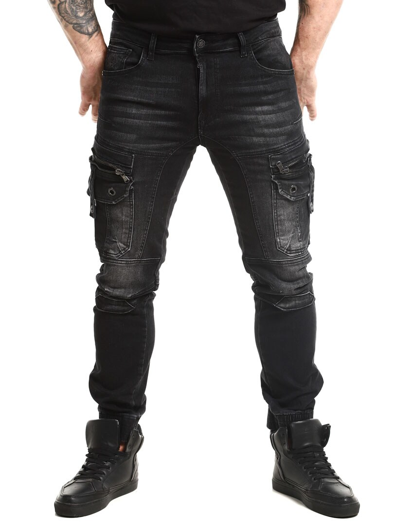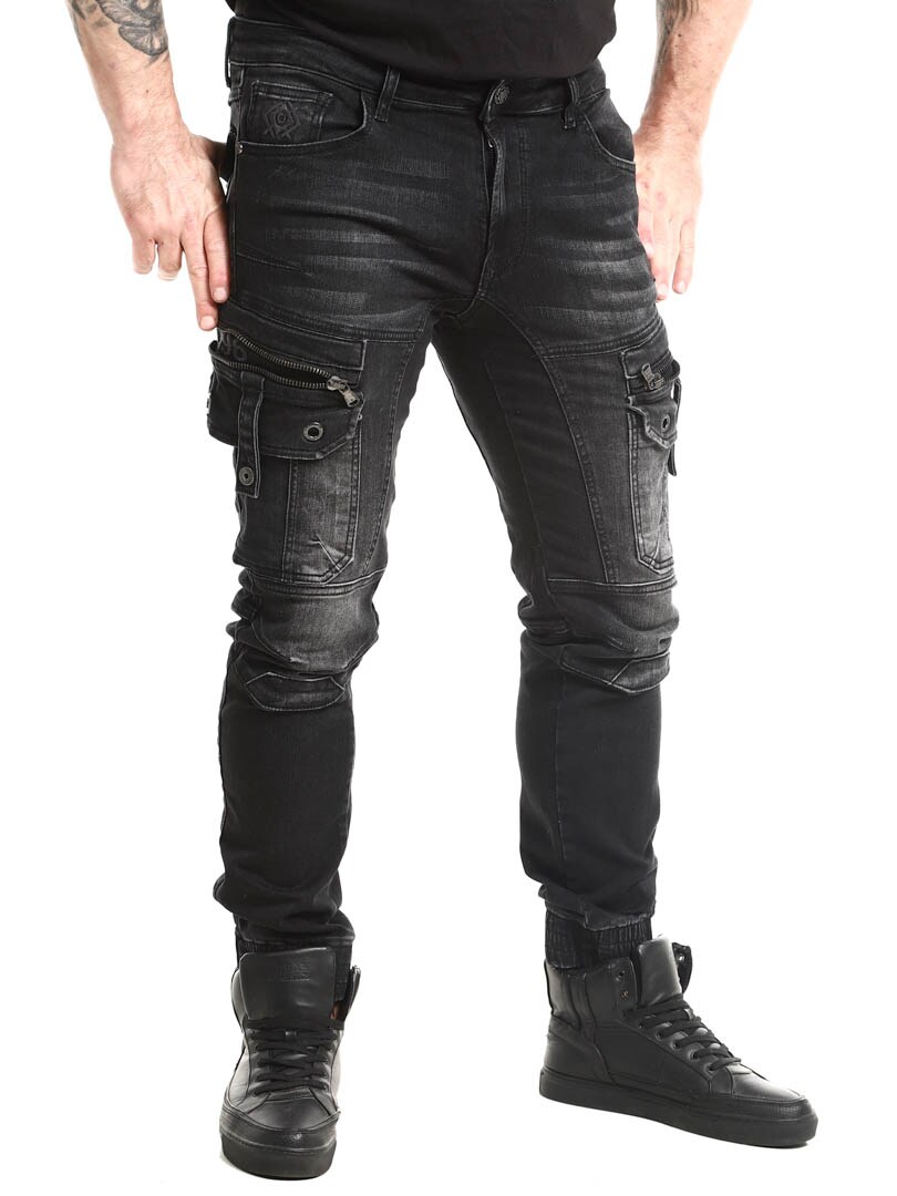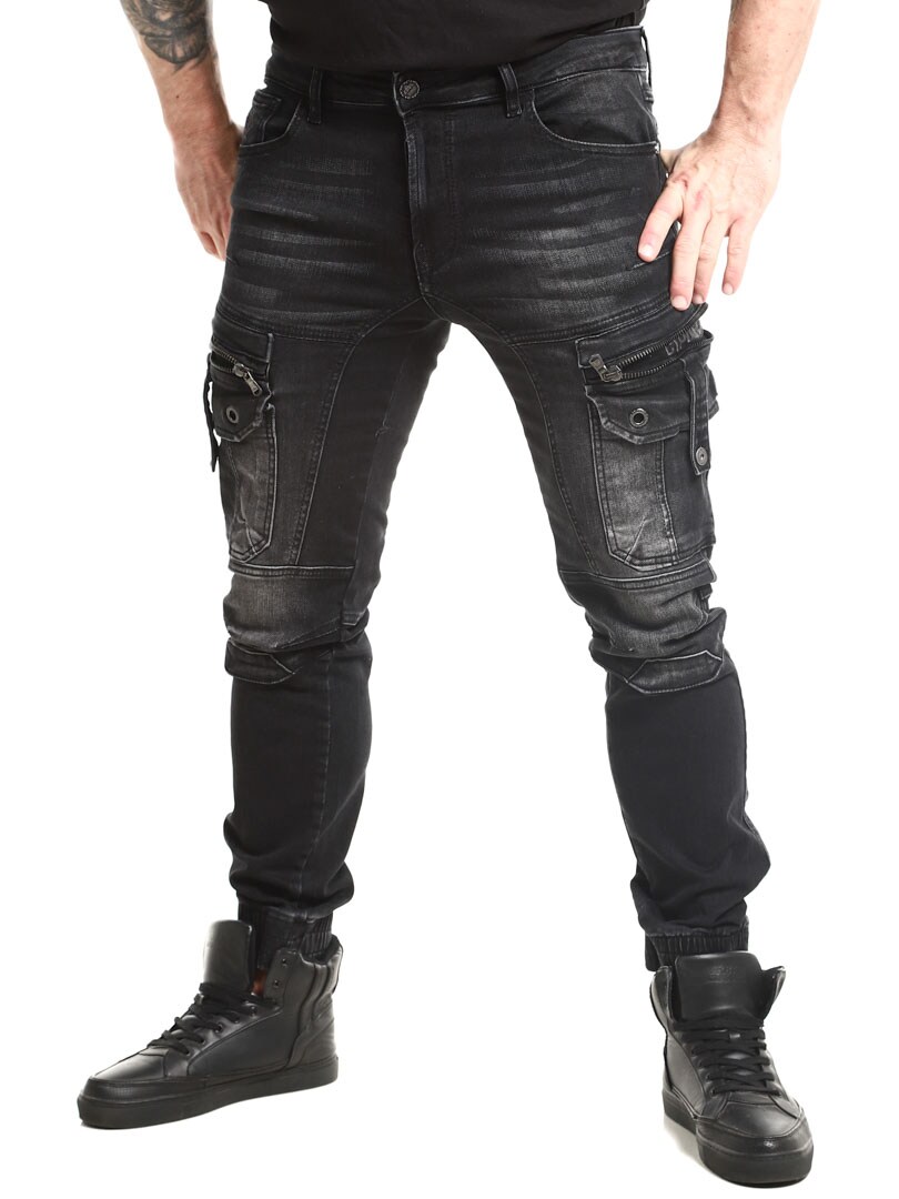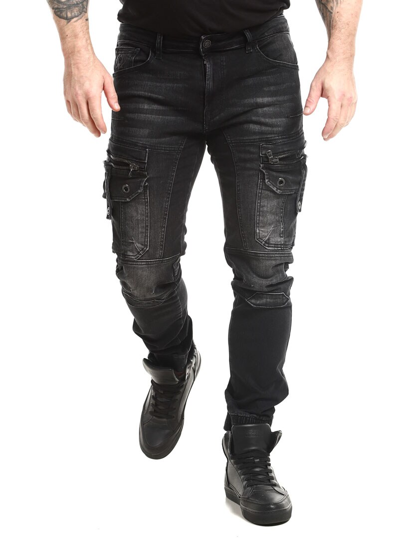 Steinvasket denimbukse. Designet med komforten til joggebukser, samtidig som den har det tøffe utseendet til jeans. De har flere lommer og elastiske mansjetter i benendene.