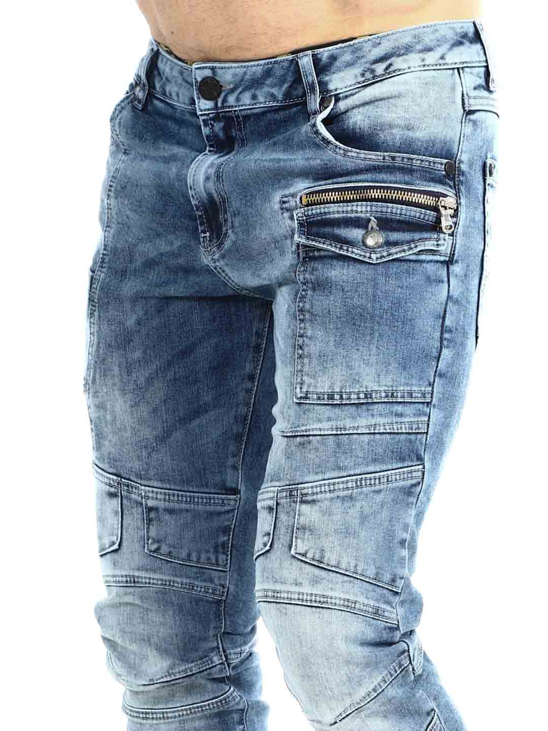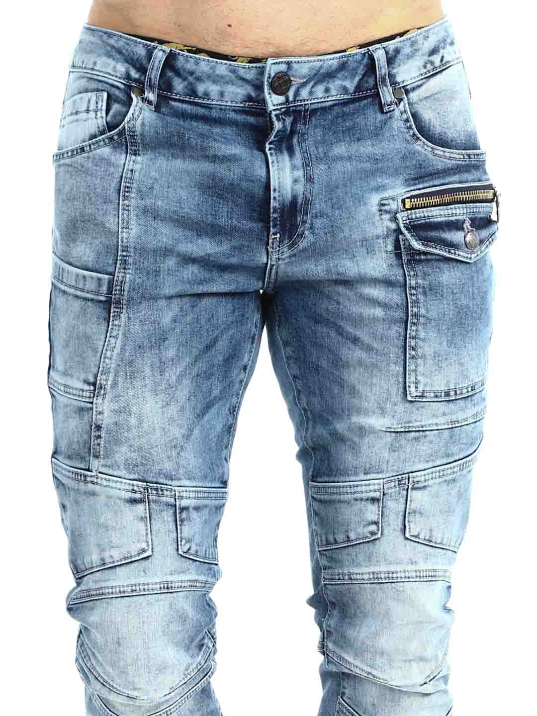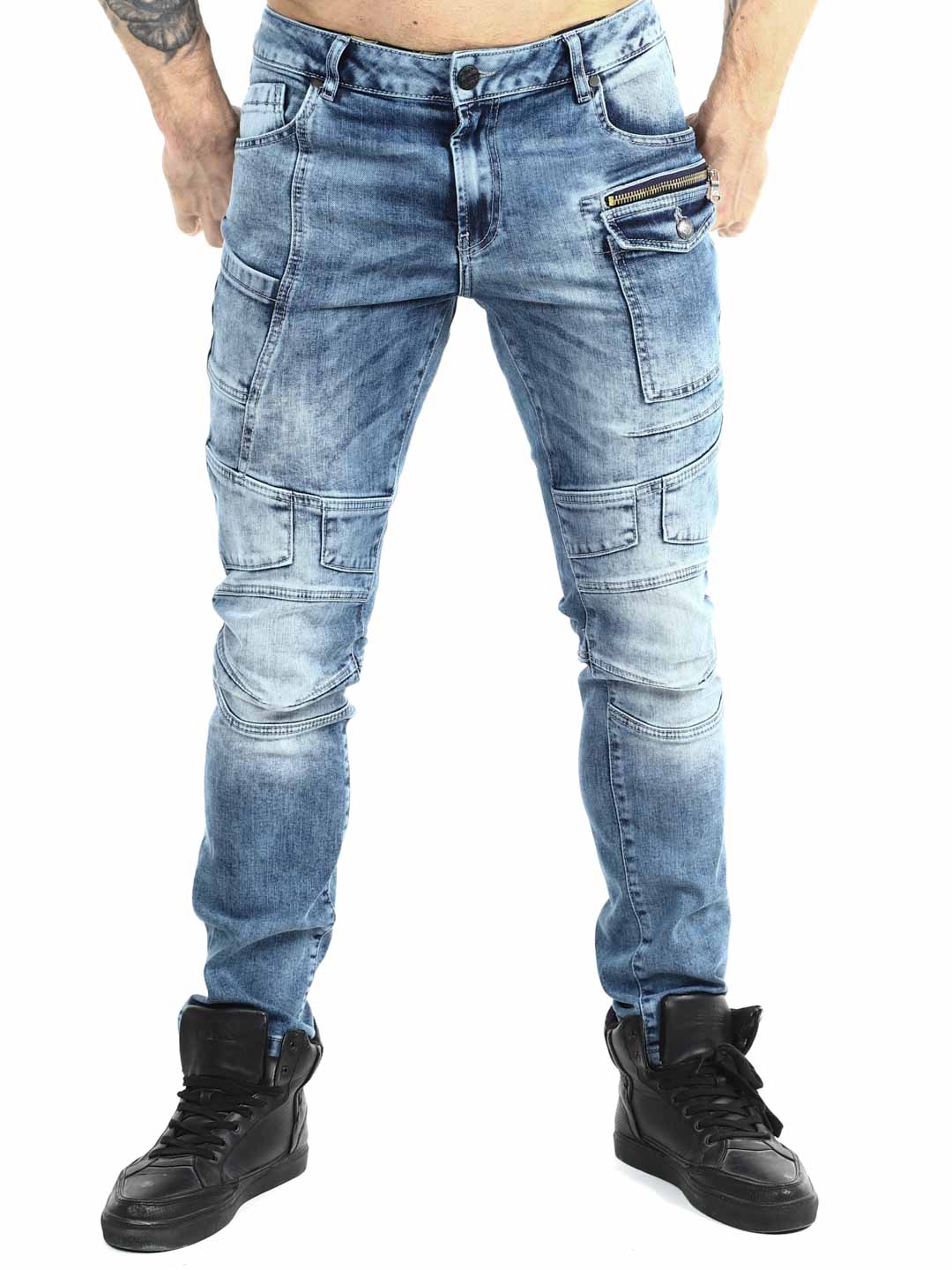 Disse jeansene kombinerer moderne streetstil med et sporty og funksjonelt design. Den vaskede blå denimfargen gir et levende og autentisk uttrykk, mens markerte sømmer og paneldetaljer langs bena skaper et dynamisk og trendy utseende. Den dekorative glidelåsen ved lommen forsterker den urbane følelsen og gir jeansene en ekstra stilfull detalj. Perfekt for deg som vil ha et par jeans som fungerer både til hverdags og til en mer oppkledd street-outfit.