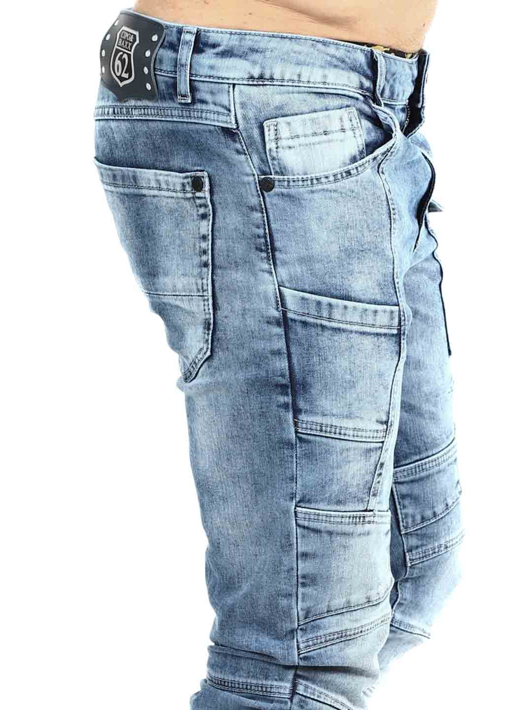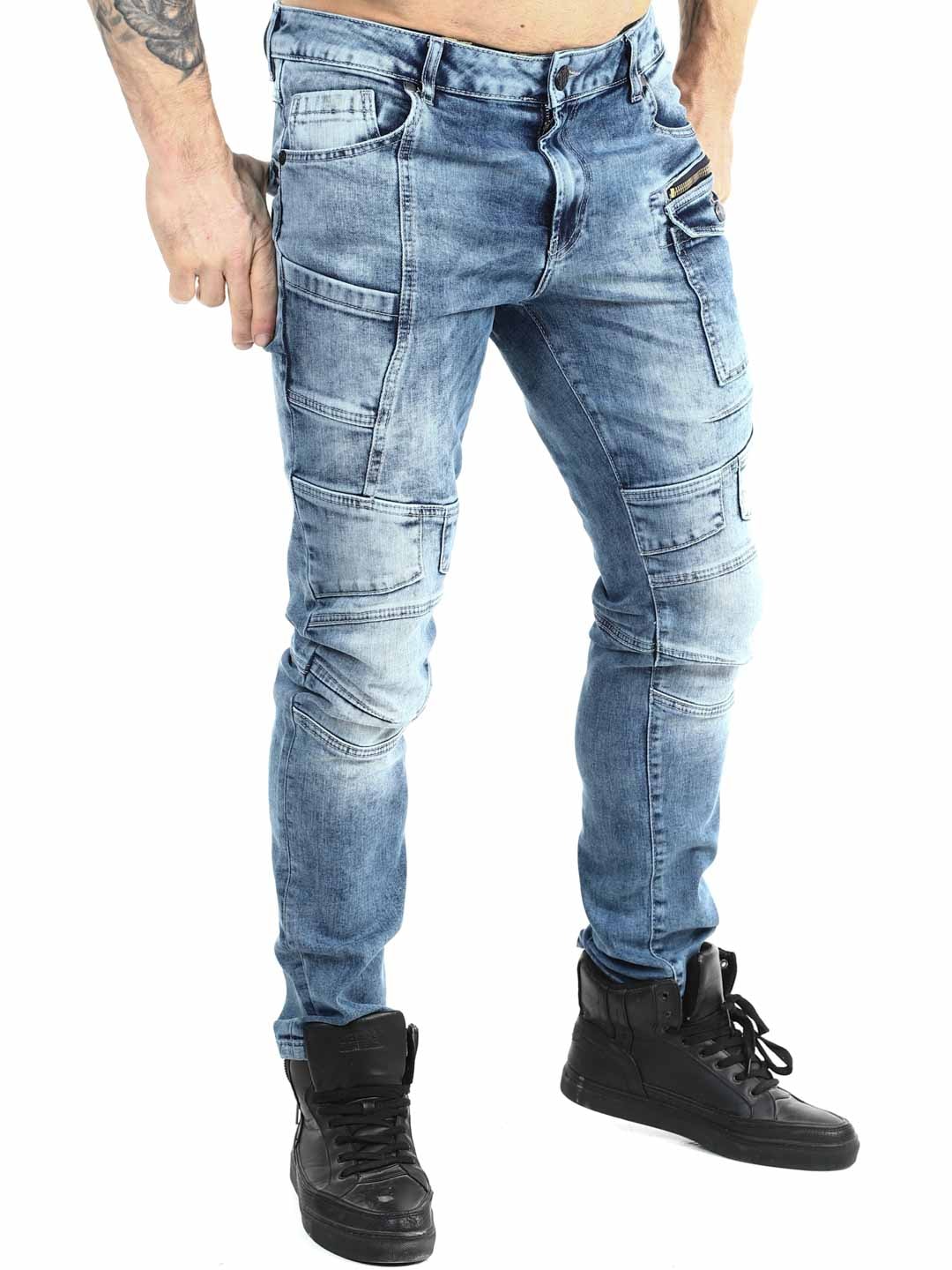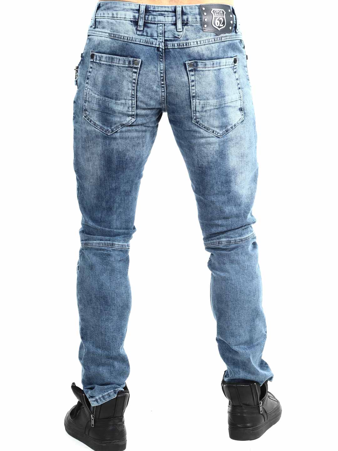 Disse jeansene kombinerer moderne streetstil med et sporty og funksjonelt design. Den vaskede blå denimfargen gir et levende og autentisk uttrykk, mens markerte sømmer og paneldetaljer langs bena skaper et dynamisk og trendy utseende. Den dekorative glidelåsen ved lommen forsterker den urbane følelsen og gir jeansene en ekstra stilfull detalj. Perfekt for deg som vil ha et par jeans som fungerer både til hverdags og til en mer oppkledd street-outfit.