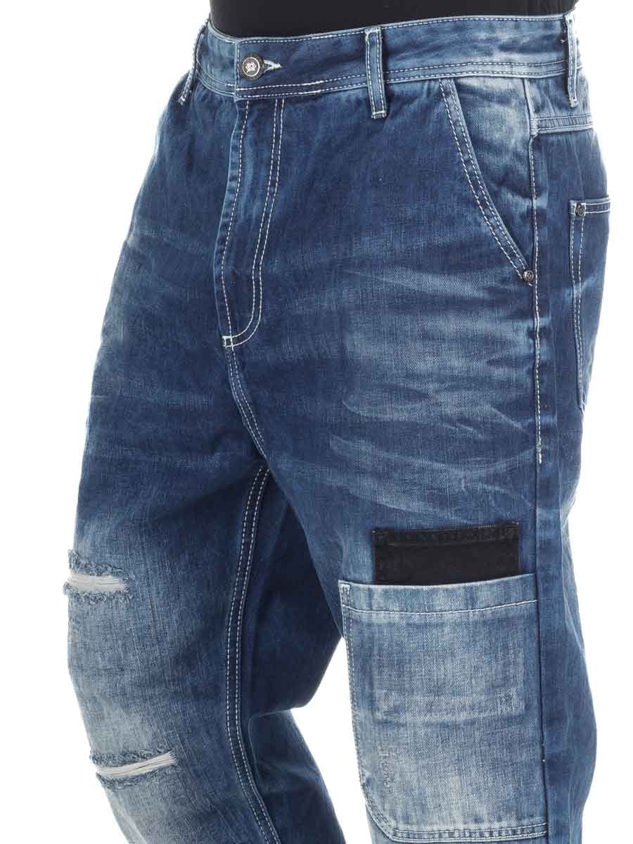 Oppgrader hverdagsstilen din med denne moderne, avslappede jeansen med streetwear-attitude. Den har fem klassiske lommer og to ekstra foran som gir et stilig uttrykk. Steinvaskede jeans med slitte detaljer – perfekt for deg som vil ha et par statement-bukser som både skiller seg ut og er enkle å bruke i hverdagen.