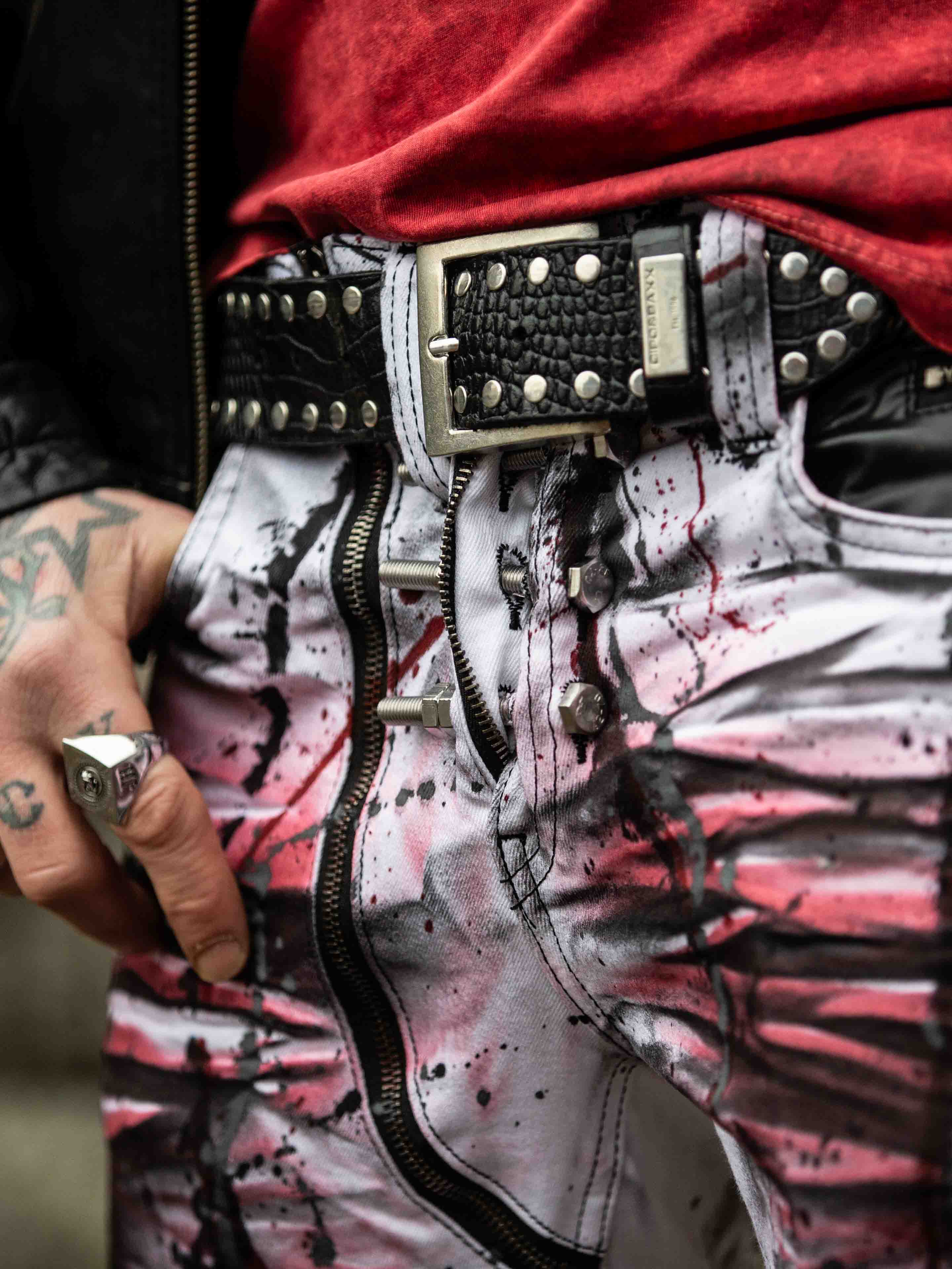 Bolted Kingz Jeans - Hvit/Rød