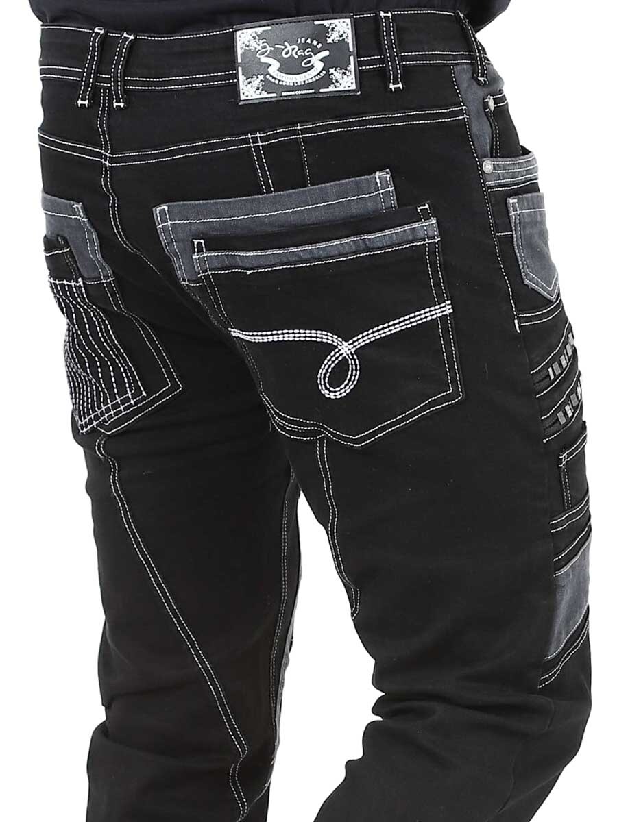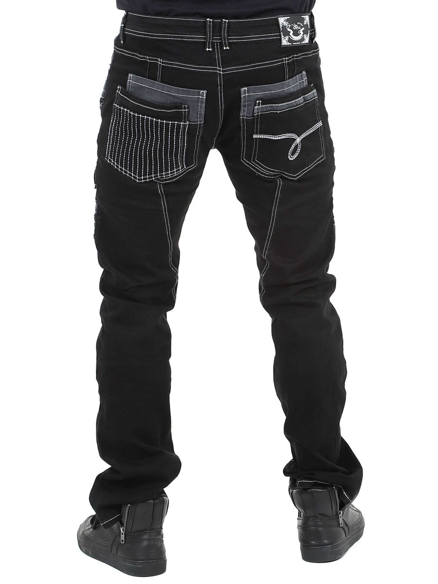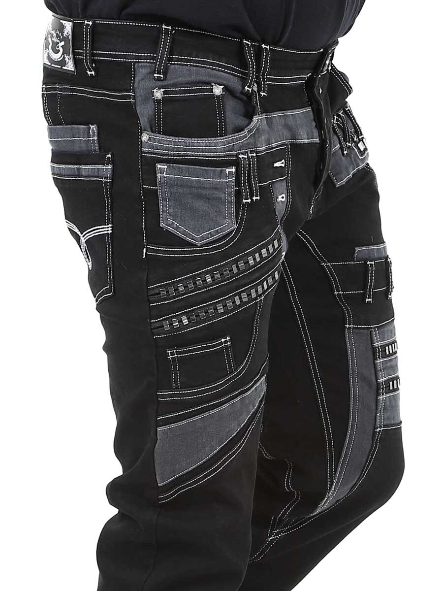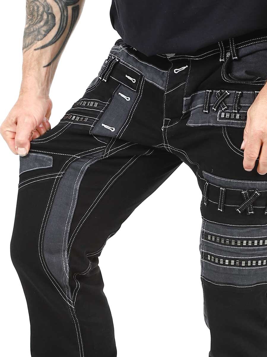 Gi antrekket ditt en mørkere kant med disse unike, svarte stretchjeansene. Designet med glidelåser, sømmer og paneler for en dristig look. Perfekt for deg som vil ha noe utenom det vanlige.