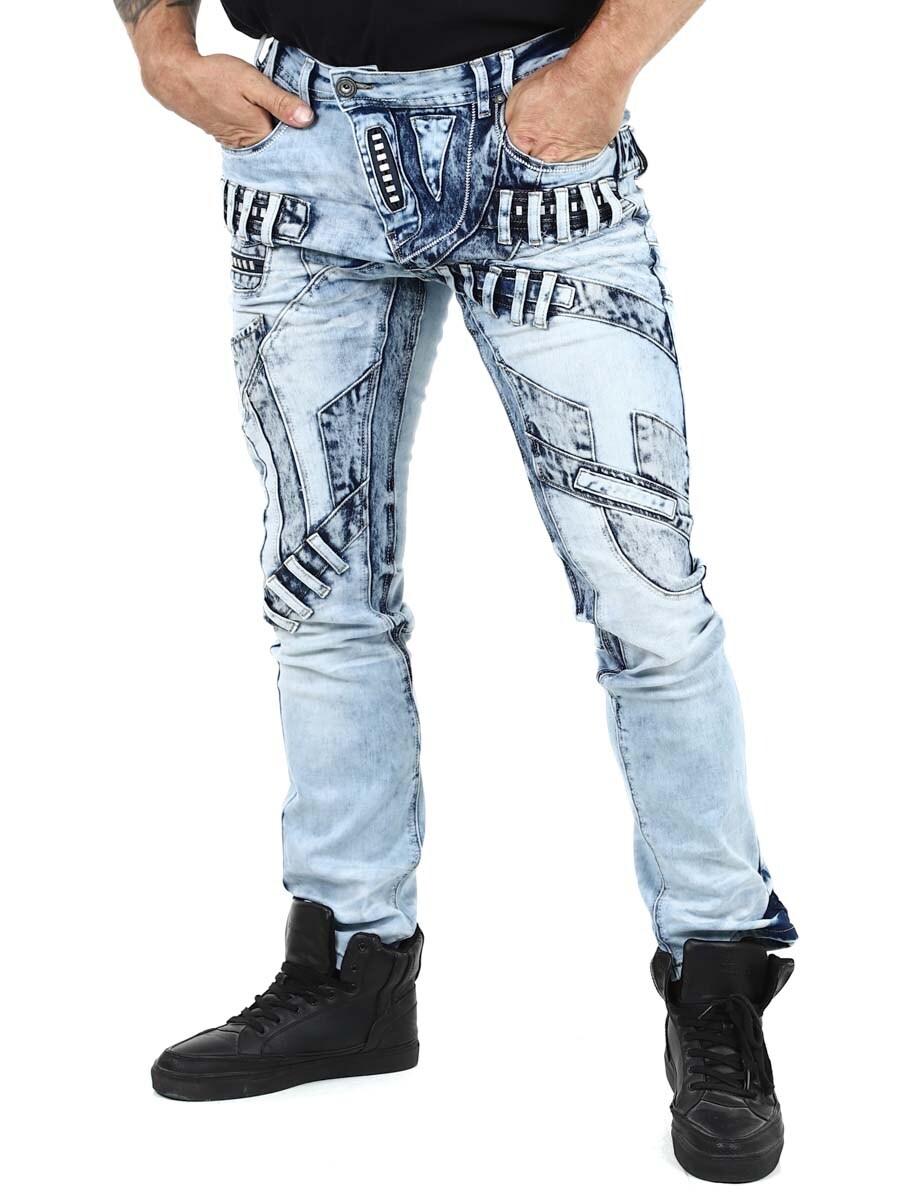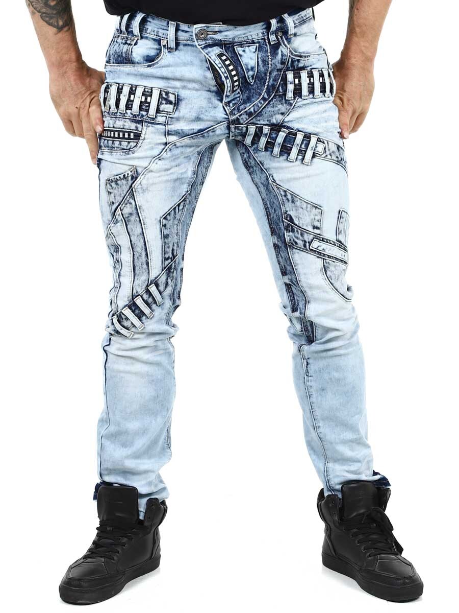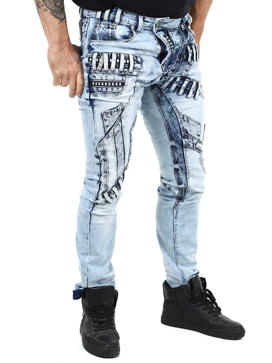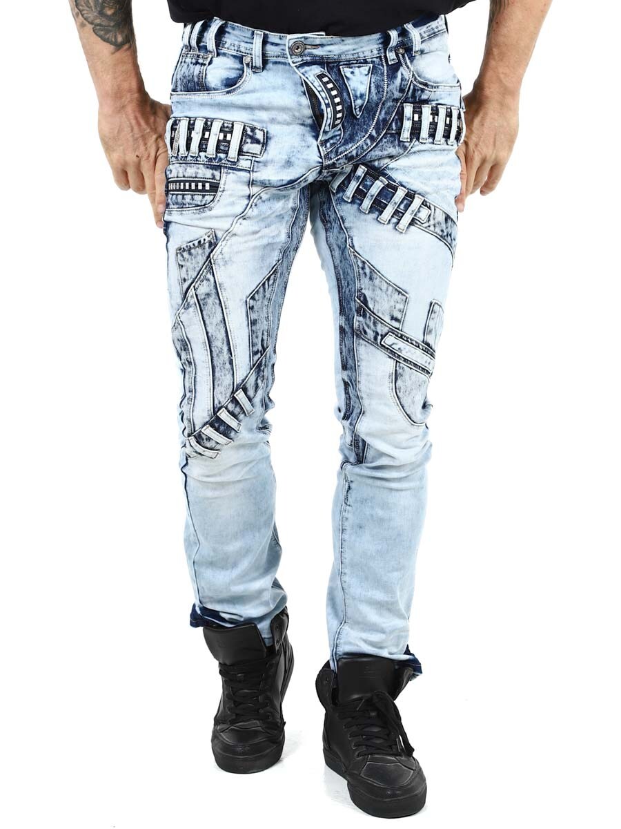Unike jeans laget av vasket lys denim med rifter, glidelåser og paneler som skaper et uttrykksfullt, men stilig utseende. Perfekt for deg som vil skille deg ut fra mengden!