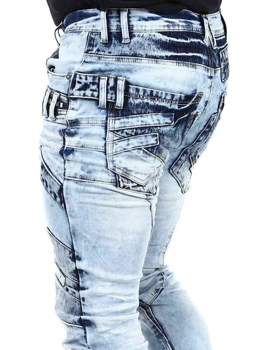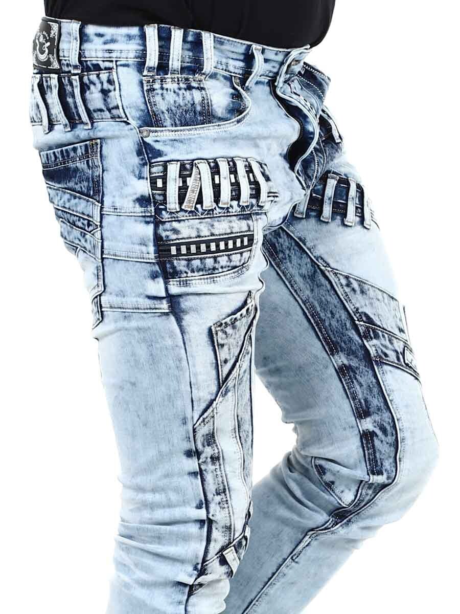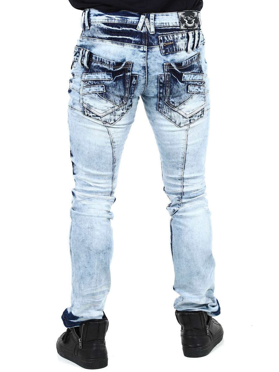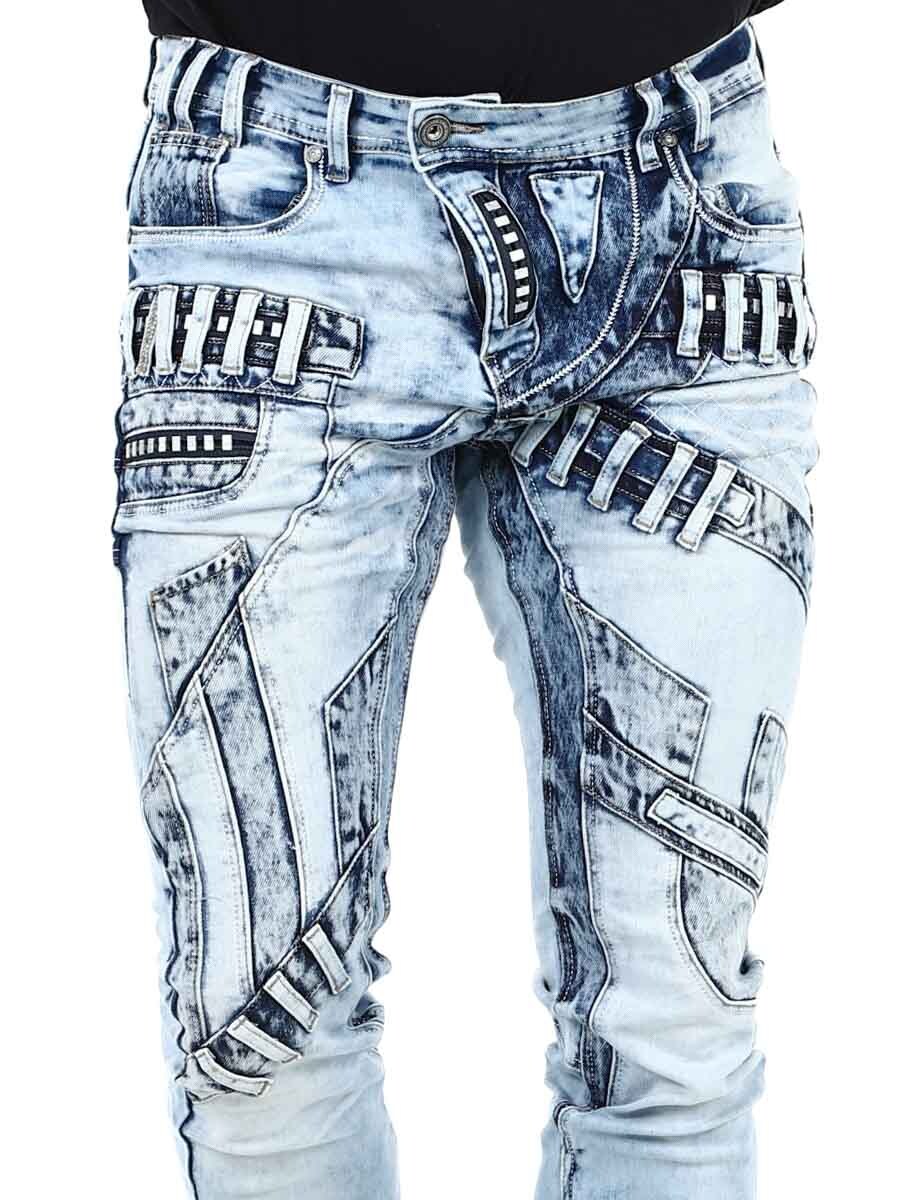 Unike jeans laget av vasket lys denim med rifter, glidelåser og paneler som skaper et uttrykksfullt, men stilig utseende. Perfekt for deg som vil skille deg ut fra mengden!
