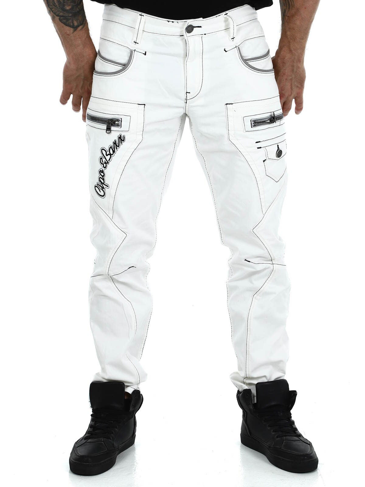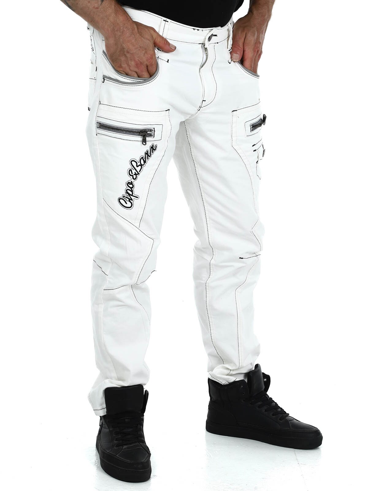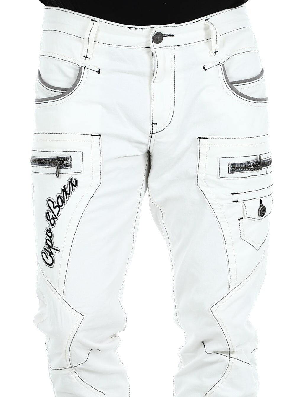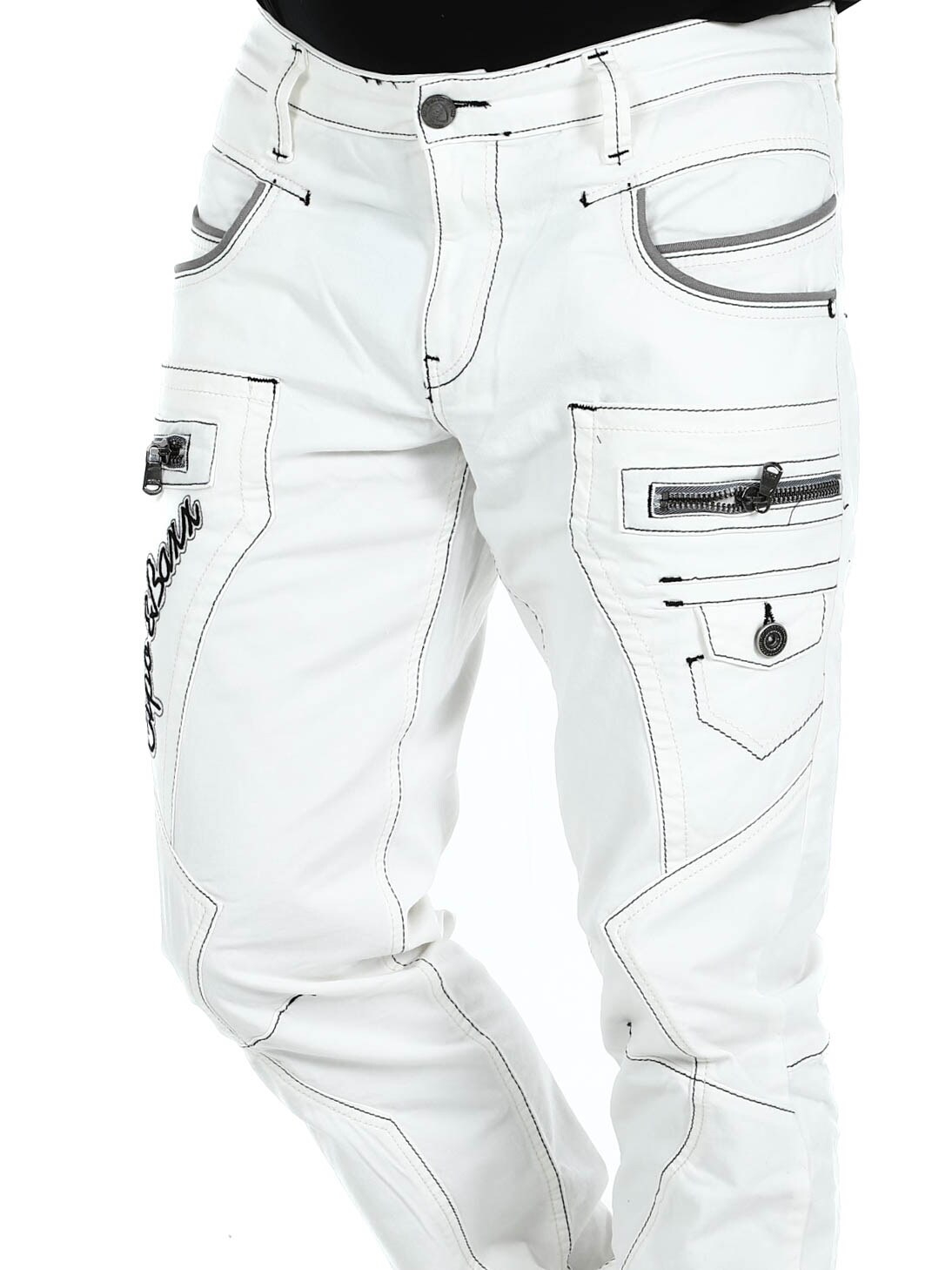 Hvite jeans med grå sømmer fra Cipo&Baxx