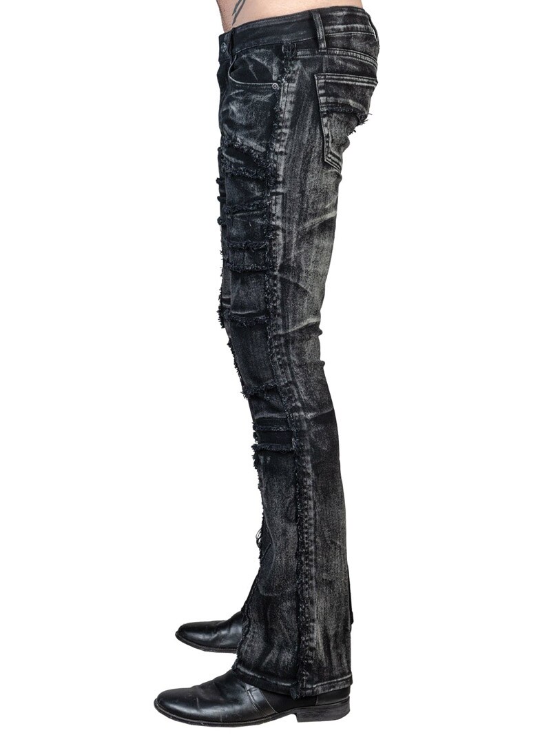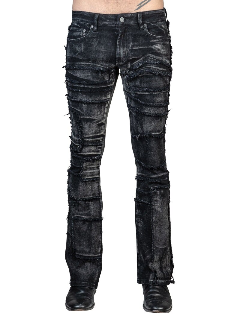 Wornstar Remnant jeans i slitt svart finish er en rocka bootcut-modell med unike håndlagde detaljer.