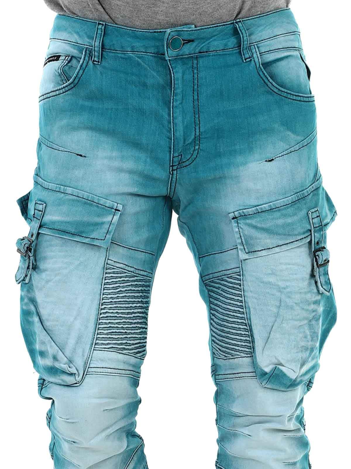 Produsert i myk og elastisk bomull med normal passform og lett avsmalnende ben. Rifter i skyggen, sorte sømmer og glidelåser er detaljer som skiller seg ut.
