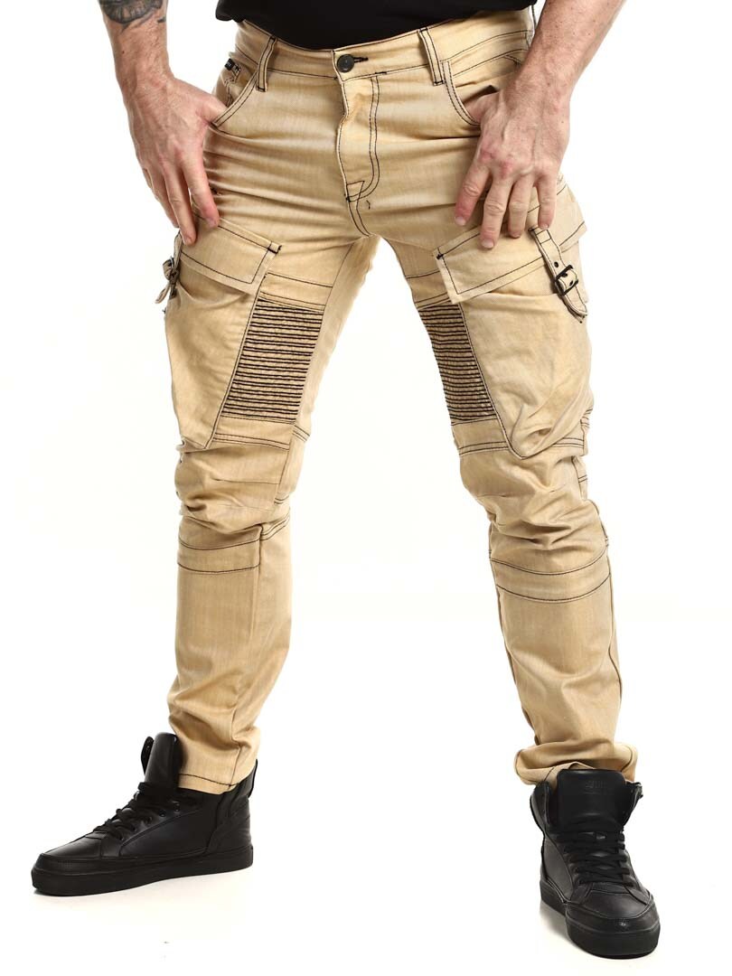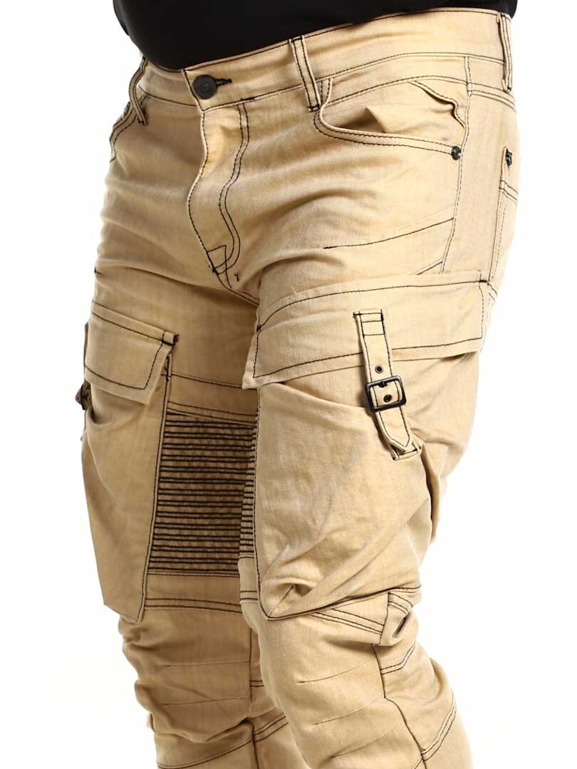 Produsert i fin bomull med normal passform og lett avsmalnende ben. Sorte sømmer og cargolommer er detaljer som skiller seg ut.