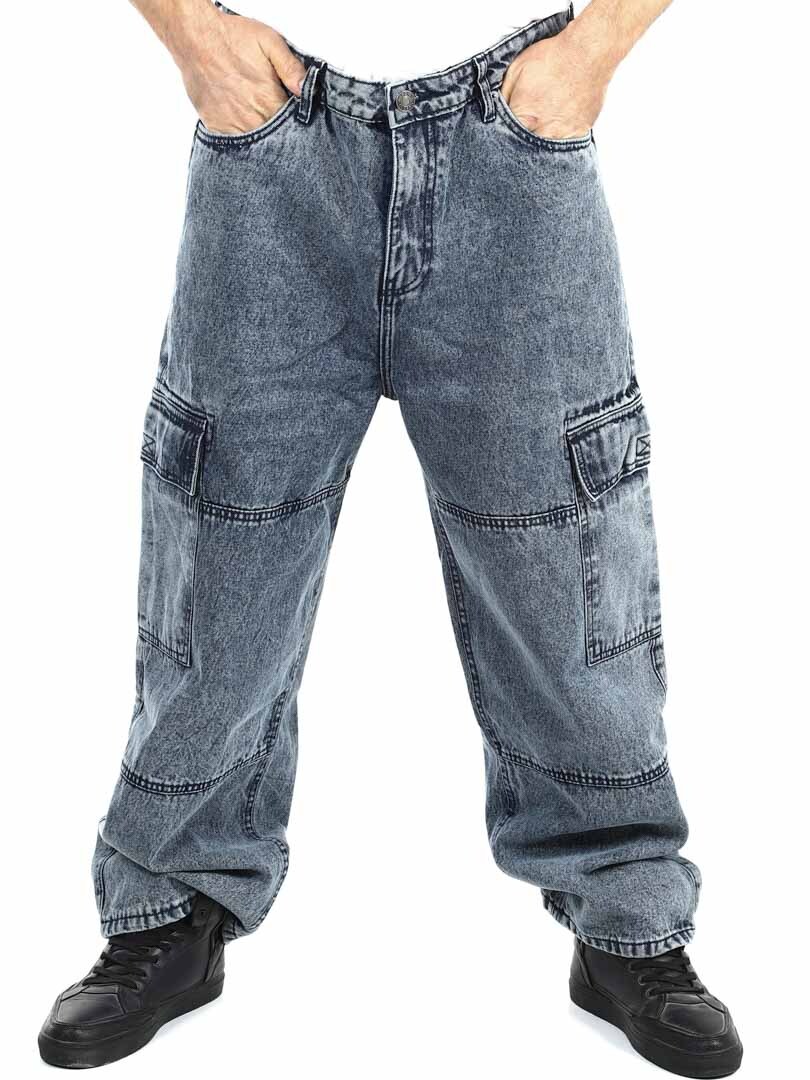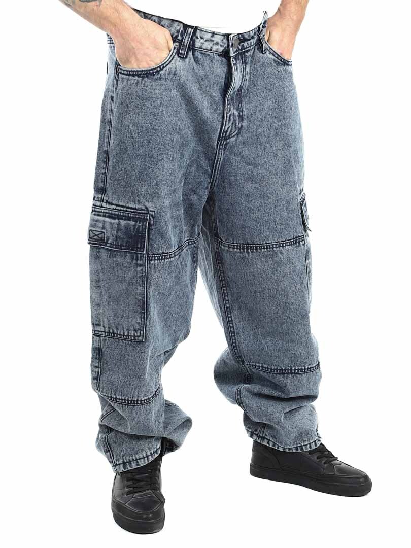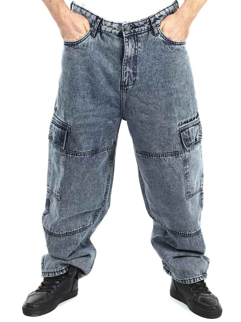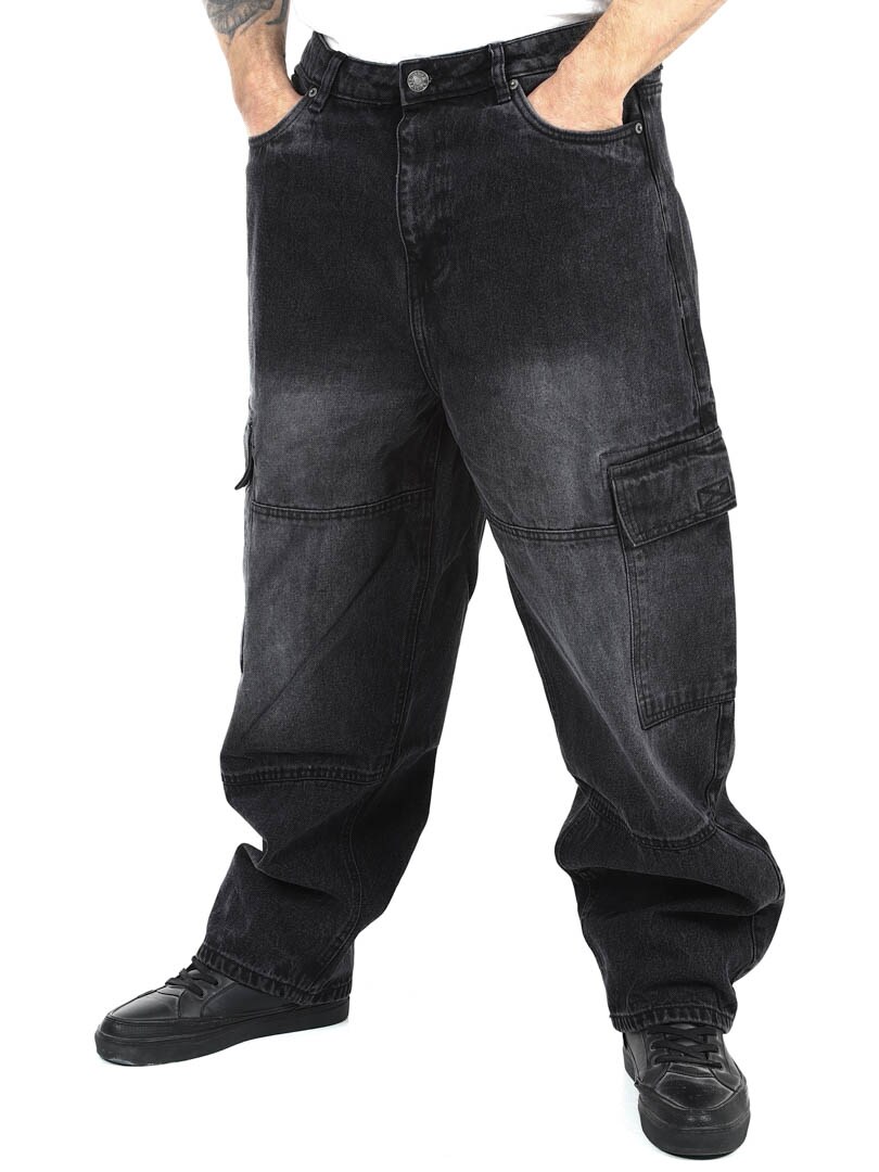 Cargobukse i kraftig denim med en stilig vask. De har fem klassiske lommer og to romslige lommer med borrelås på bena. Med sin løse passform kombinerer disse jeansene stil og komfort for en trendy look!